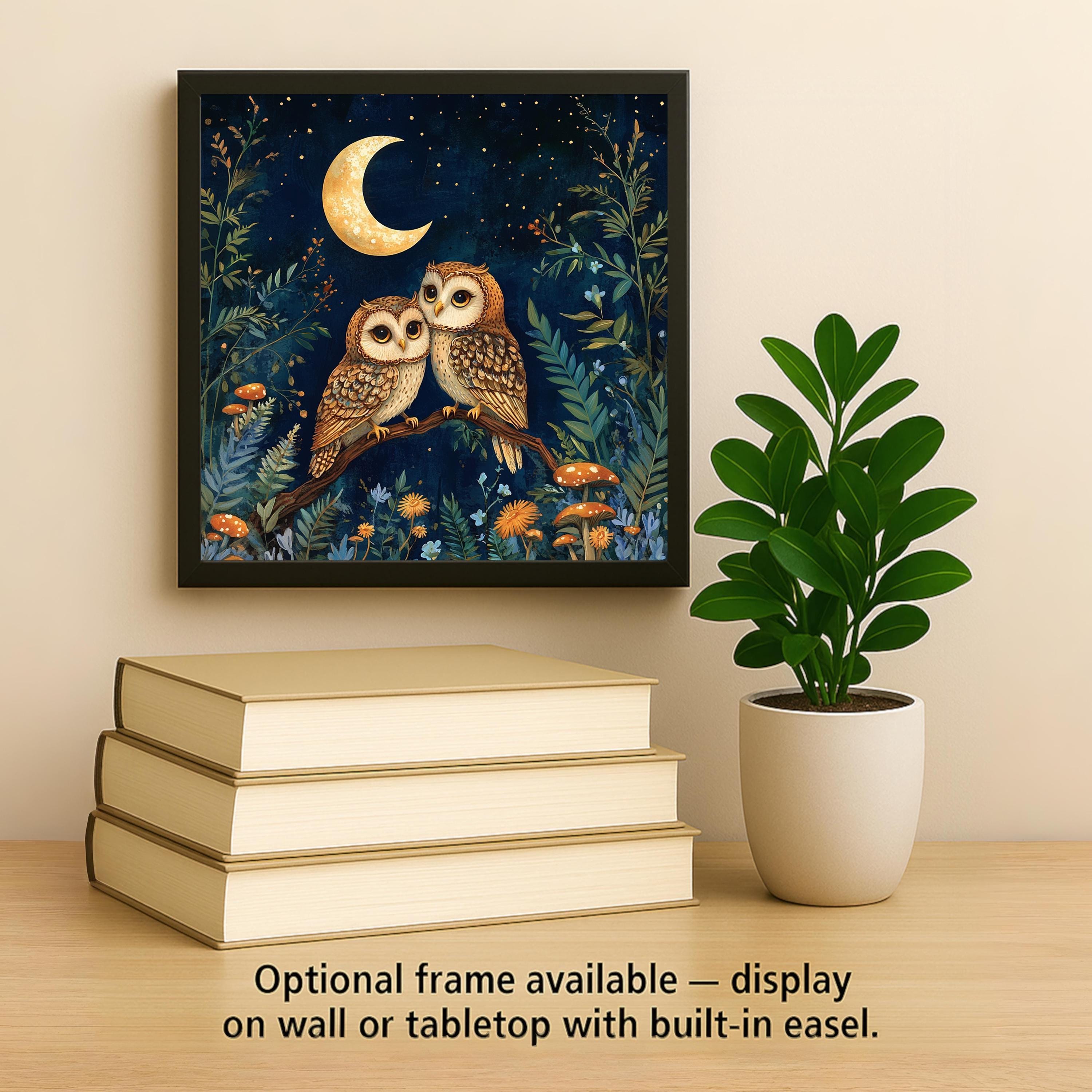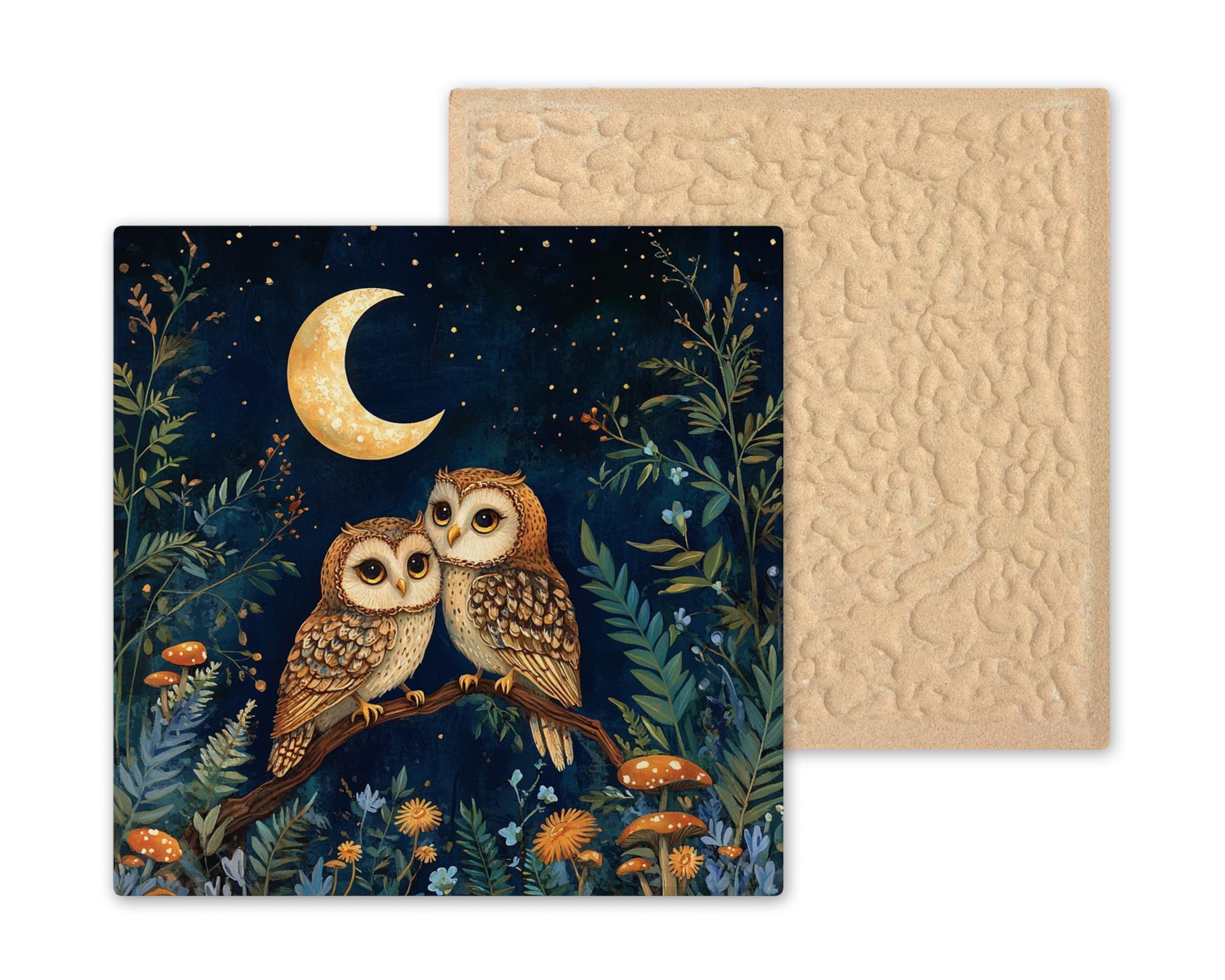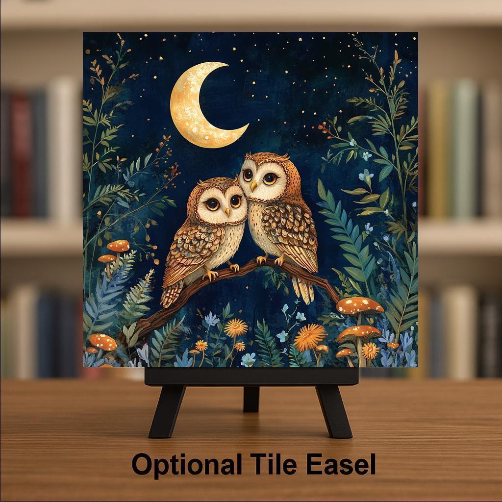 Whether you're celebrating a love of owls, looking for the perfect woodland wedding gift, or curating a nature-themed room, this tile offers a heartfelt and cozy addition. It's also ideal for fall decorating, nursery art, or year-round inspiration for those who love the forest at night.