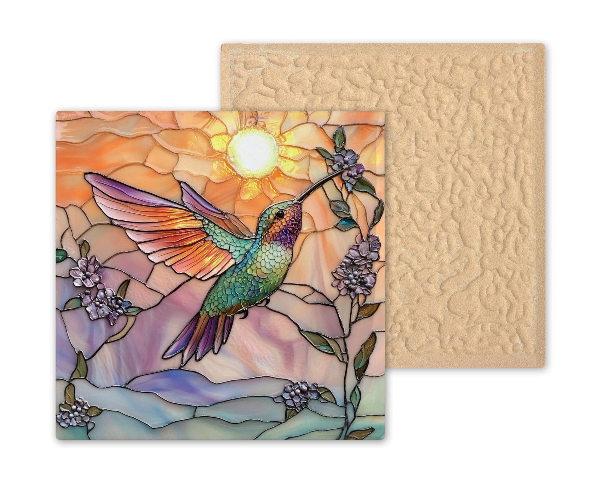 Each ceramic tile is printed in rich, long-lasting color with detailed stained-glass texture that mimics the look of classic mosaic glasswork. Whether you're shopping for a thoughtful gift or enhancing your own home with meaningful art, this hummingbird tile will be cherished.