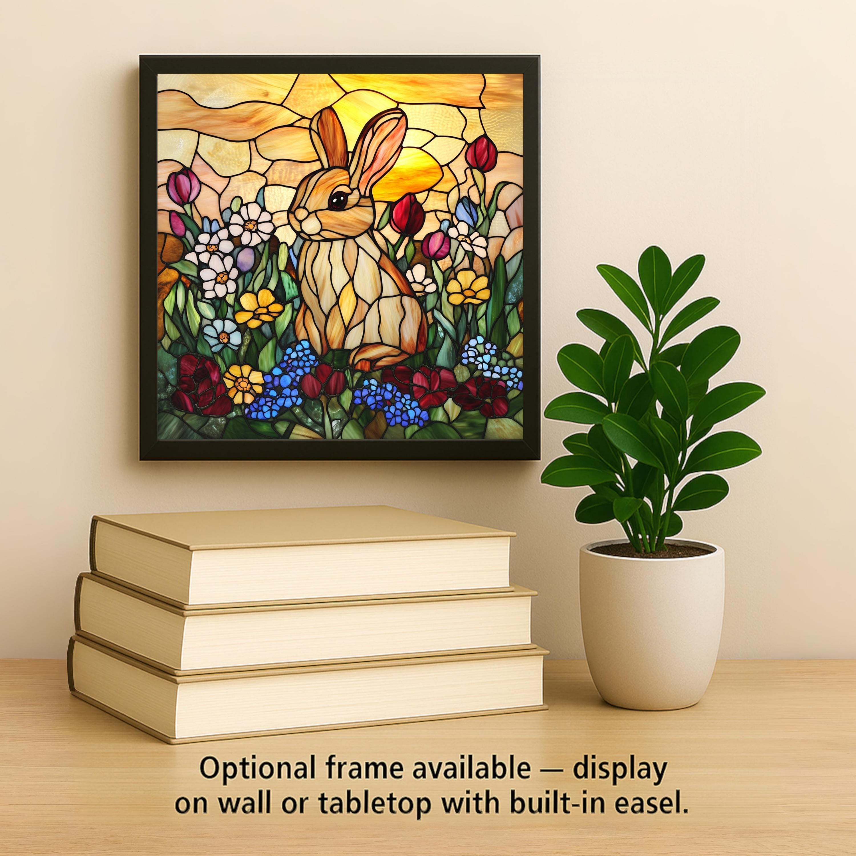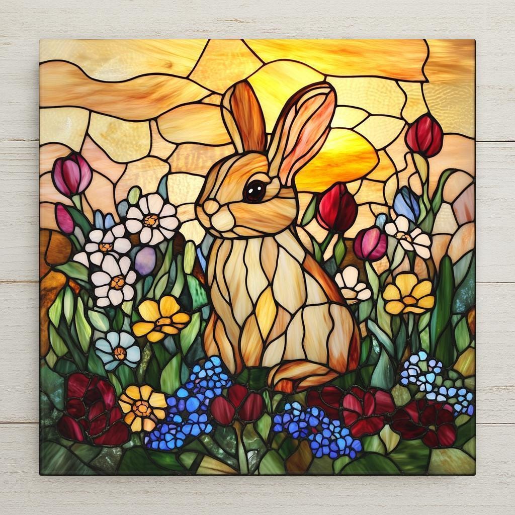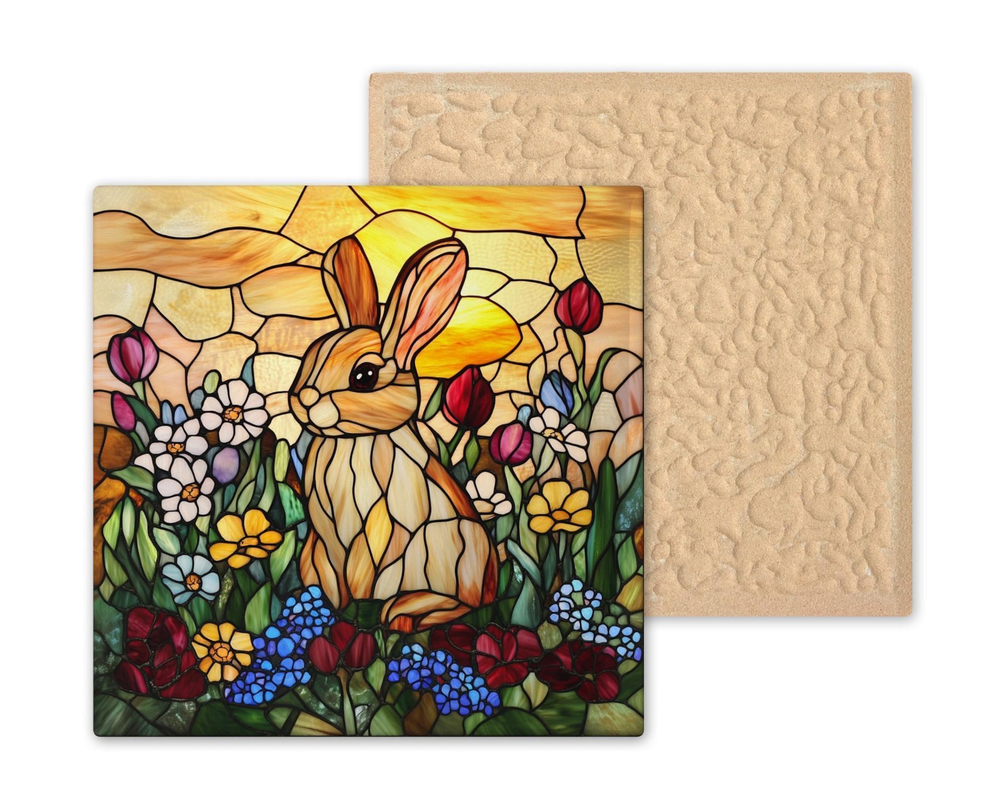 This tile works beautifully as a seasonal decoration or a year-round nature accent. The soft curves of the stained glass pattern offer a vintage, handmade feel, while the bunny’s sweet expression adds playful charm. Use it in your kitchen, sunroom, nursery, or garden-themed nook for an uplifting and colorful focal point.