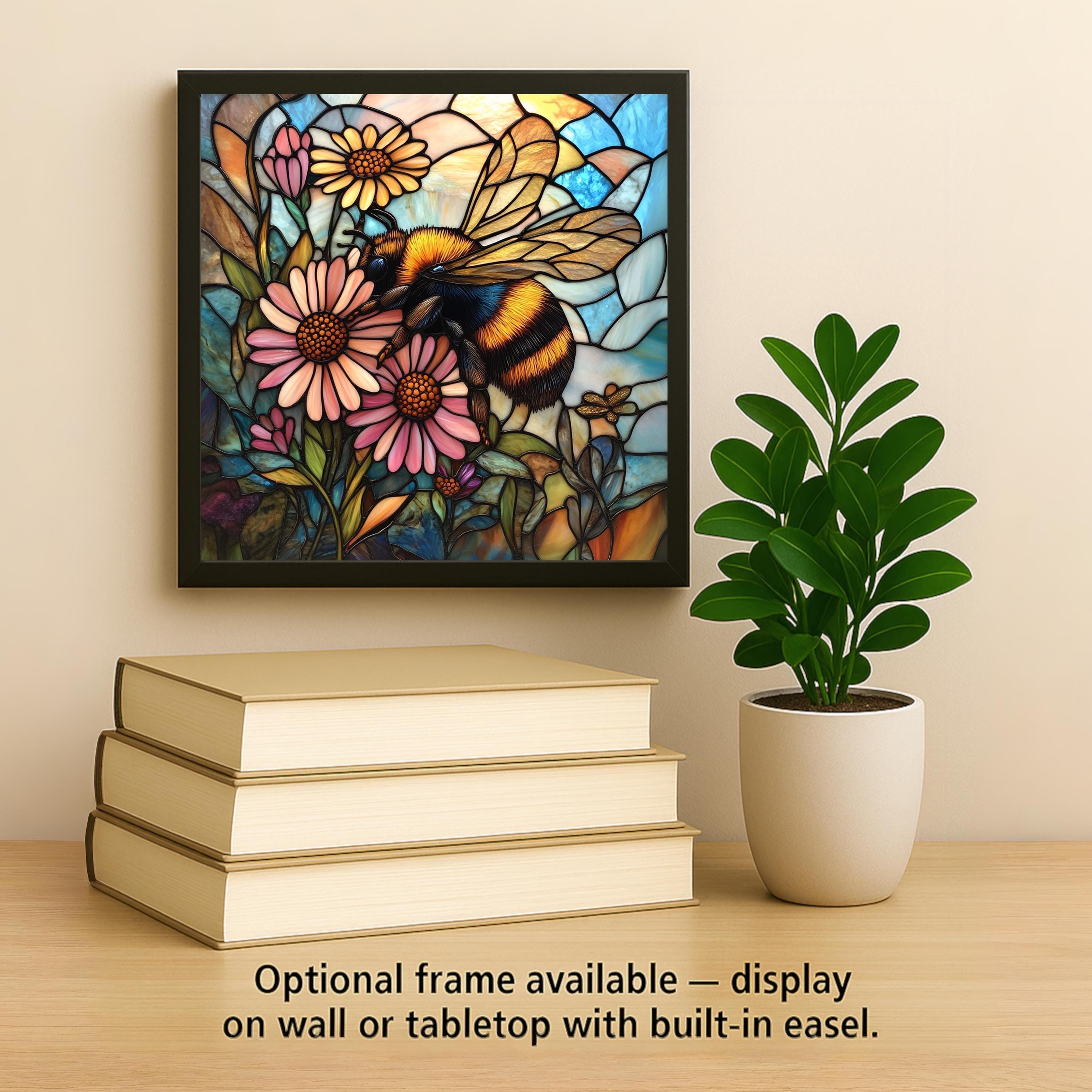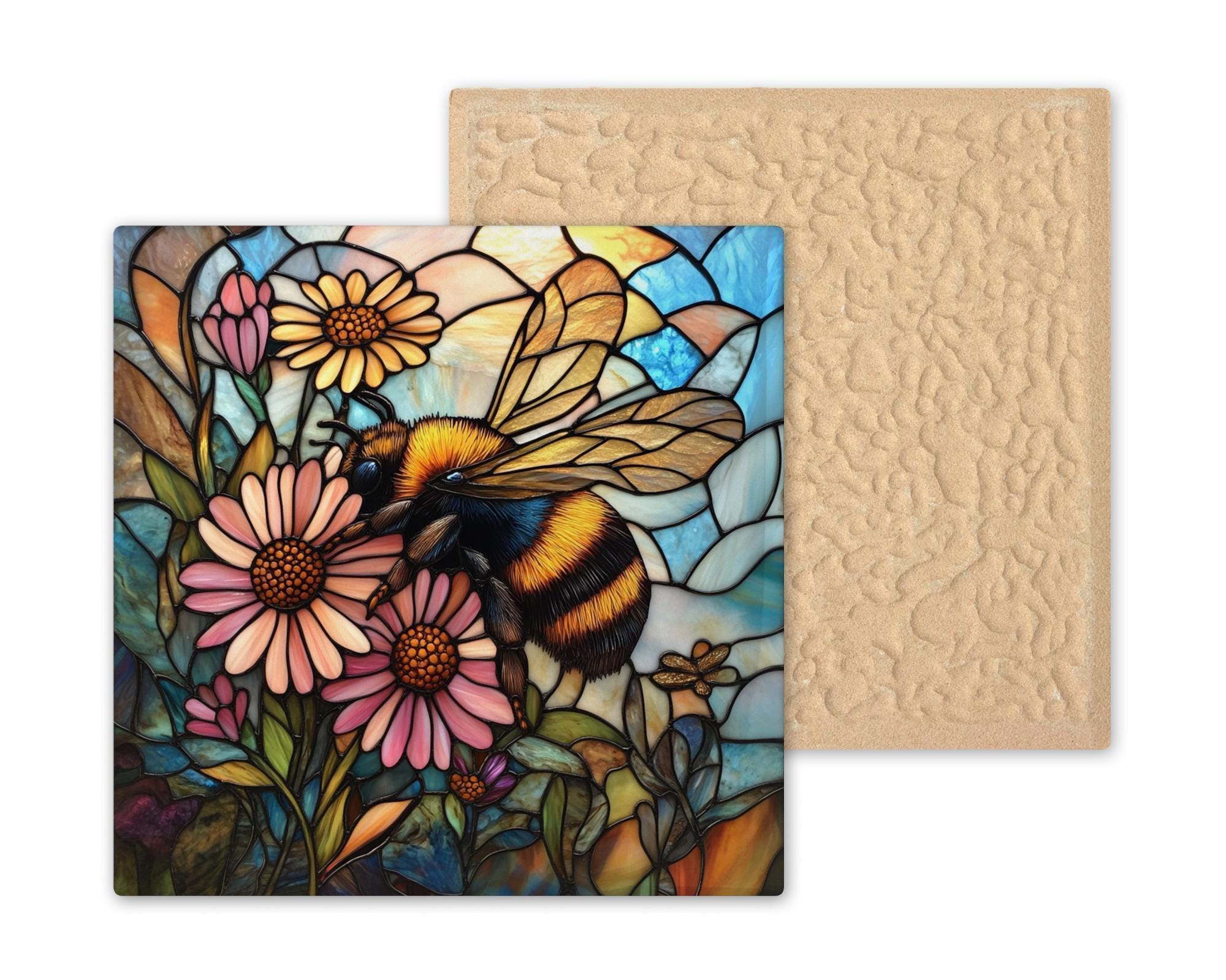 Brighten your home with the joy of the garden and the magic of bees through this handcrafted bumblebee ceramic tile. Designed with a stained glass effect, this charming tile showcases a detailed bumblebee nestled among blossoms and leaves. It’s full of bold color and natural whimsy—perfect for nature lovers, garden enthusiasts, or anyone who finds beauty in the smallest creatures.