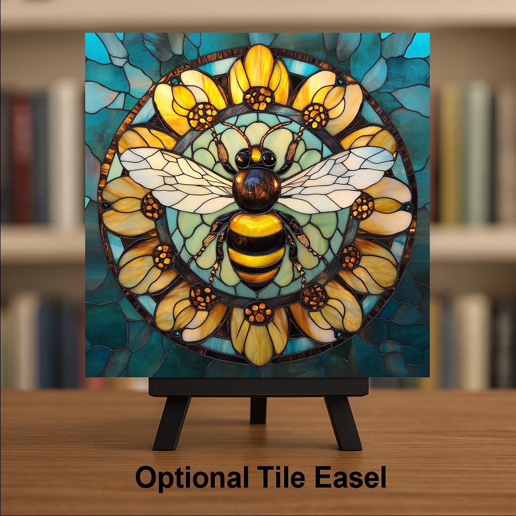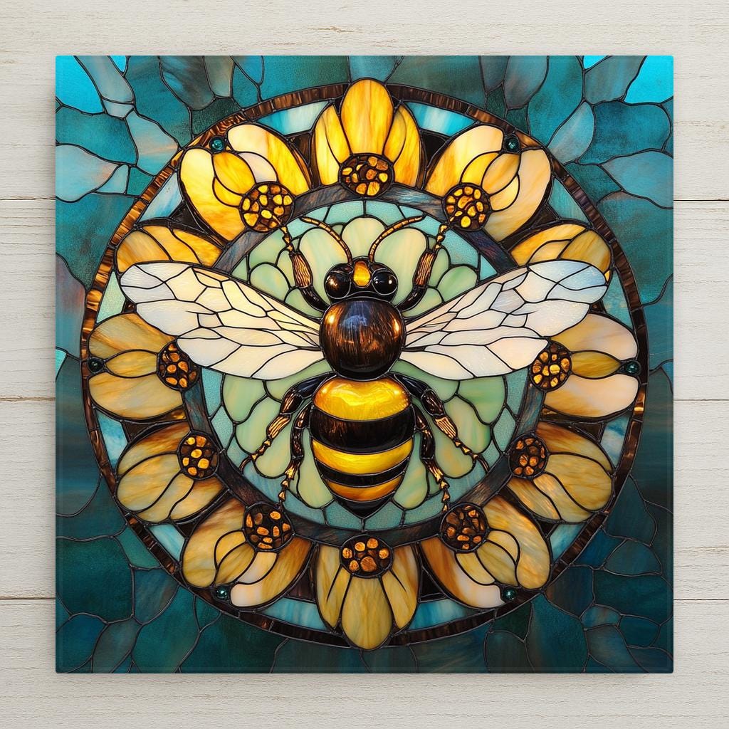 This stained glass bee mandala ceramic tile is a striking combination of spiritual elegance and garden-inspired whimsy. A radiant honeybee rests at the heart of a sunflower mandala, evoking sacred geometry with every symmetrical petal. Inspired by stained glass window art, this tile offers a blend of color, nature, and symbolism perfect for cottagecore and boho décor styles.