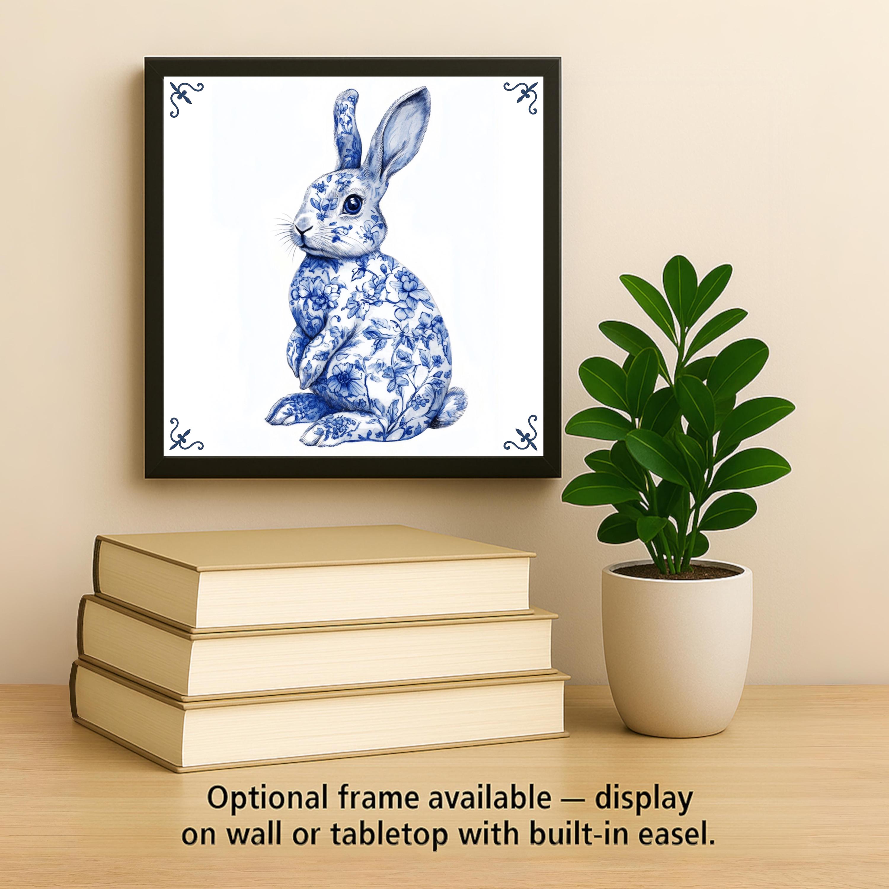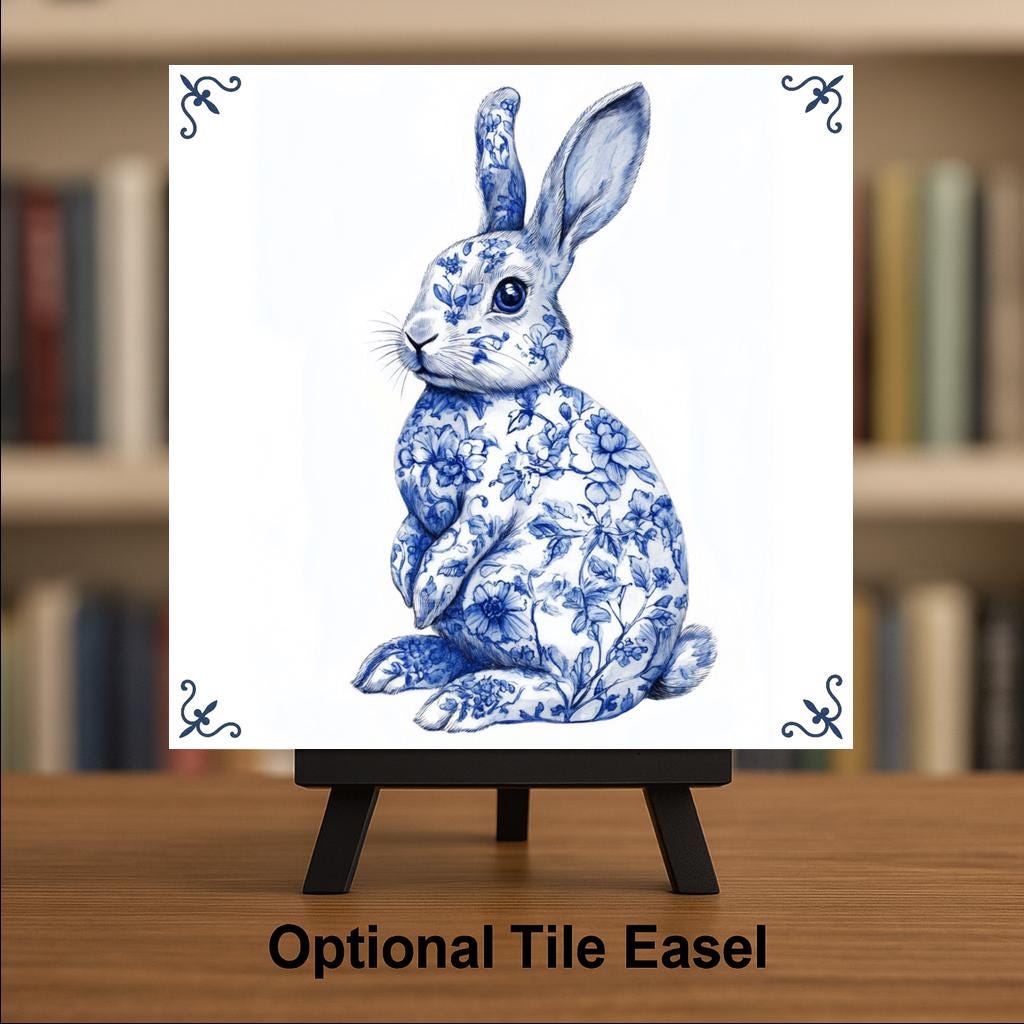 Celebrate the magic of spring with this Whimsical Blue Delft Tile Art featuring a graceful floral bunny. Designed in the timeless cobalt hues of Dutch Delft pottery, this unique ceramic piece captures the essence of Easter, new beginnings, and soft seasonal beauty. The bunny’s coat is illustrated with delicate blossoms and vines, giving the tile a nature-inspired elegance that fits perfectly in any home.