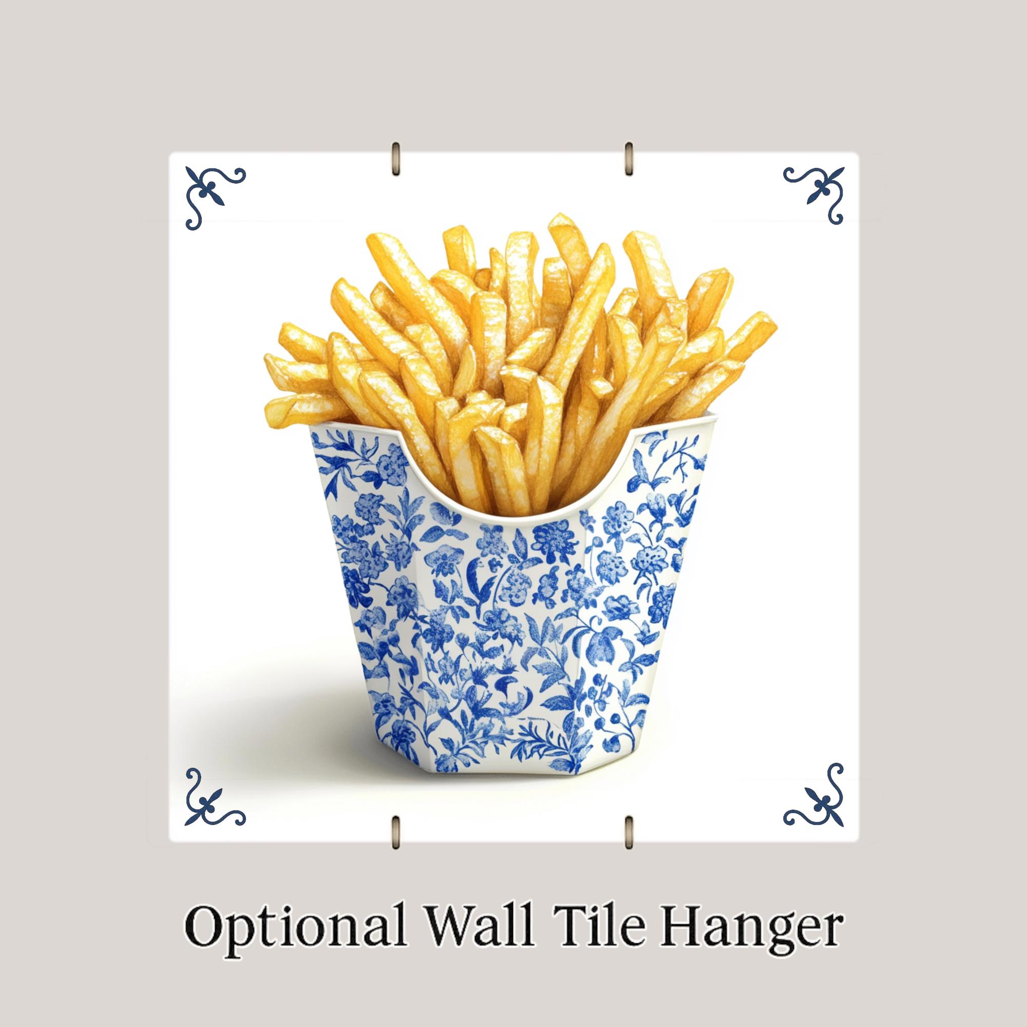 Ideal for the kitchen, dining area, food truck, or restaurant wall, this tile adds personality and charm to your space. It fits cottagecore, farmhouse, or eclectic interiors and is especially popular with food lovers, chefs, and collectors of funny or quirky art. Fries are universally loved—and now, beautifully elevated in Delftware fashion.