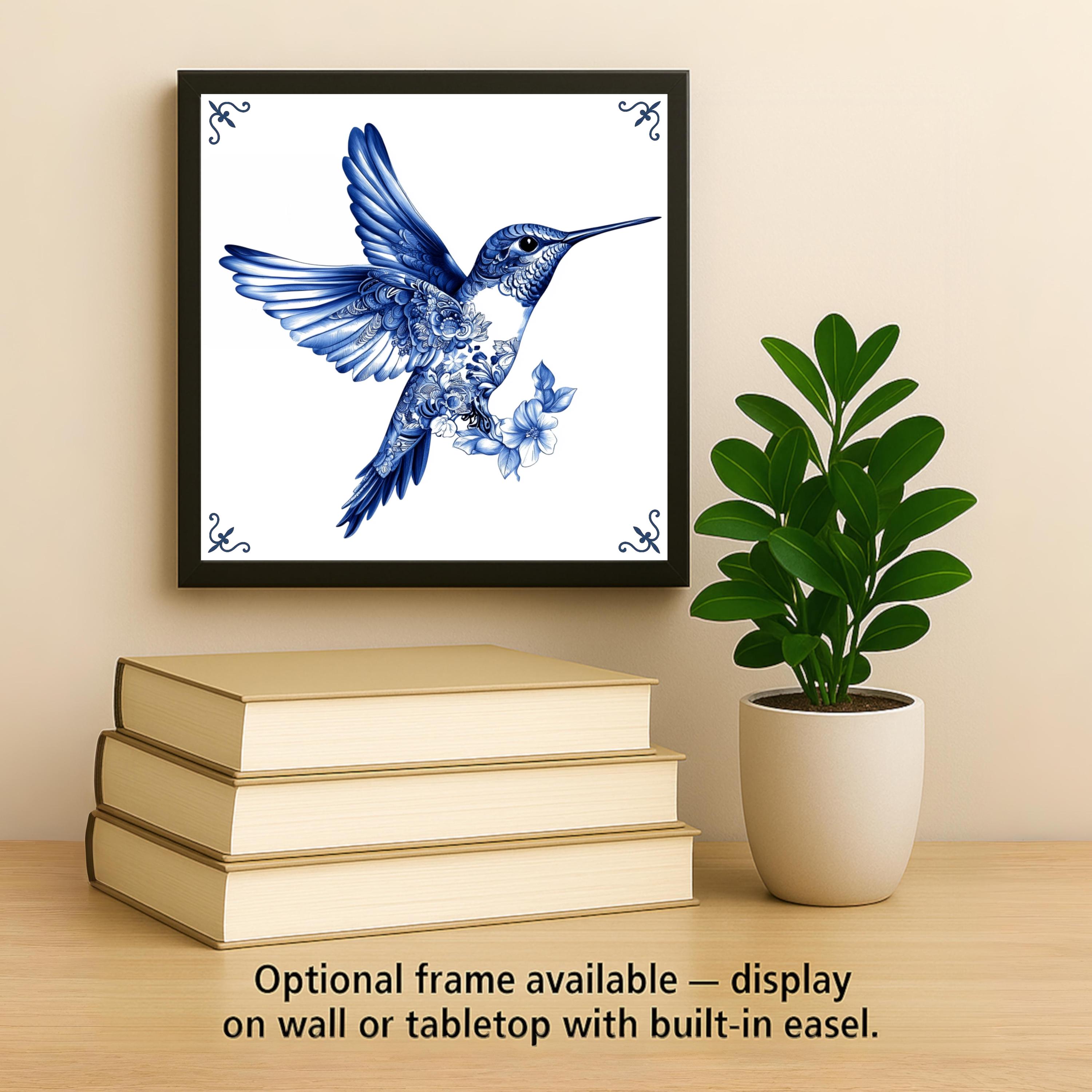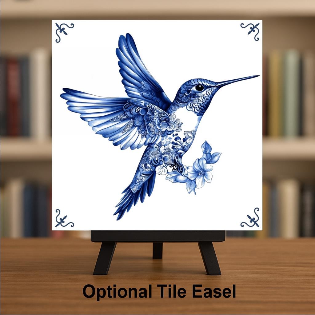 Let the uplifting energy of this Floral Hummingbird Delft Tile brighten your space. This unique piece features a hummingbird in mid-flight, its feathers transformed into ornate floral patterns inspired by traditional Dutch Delftware. A true celebration of nature, motion, and artistry, the tile adds a poetic touch to cottagecore, farmhouse, or eclectic home decor.