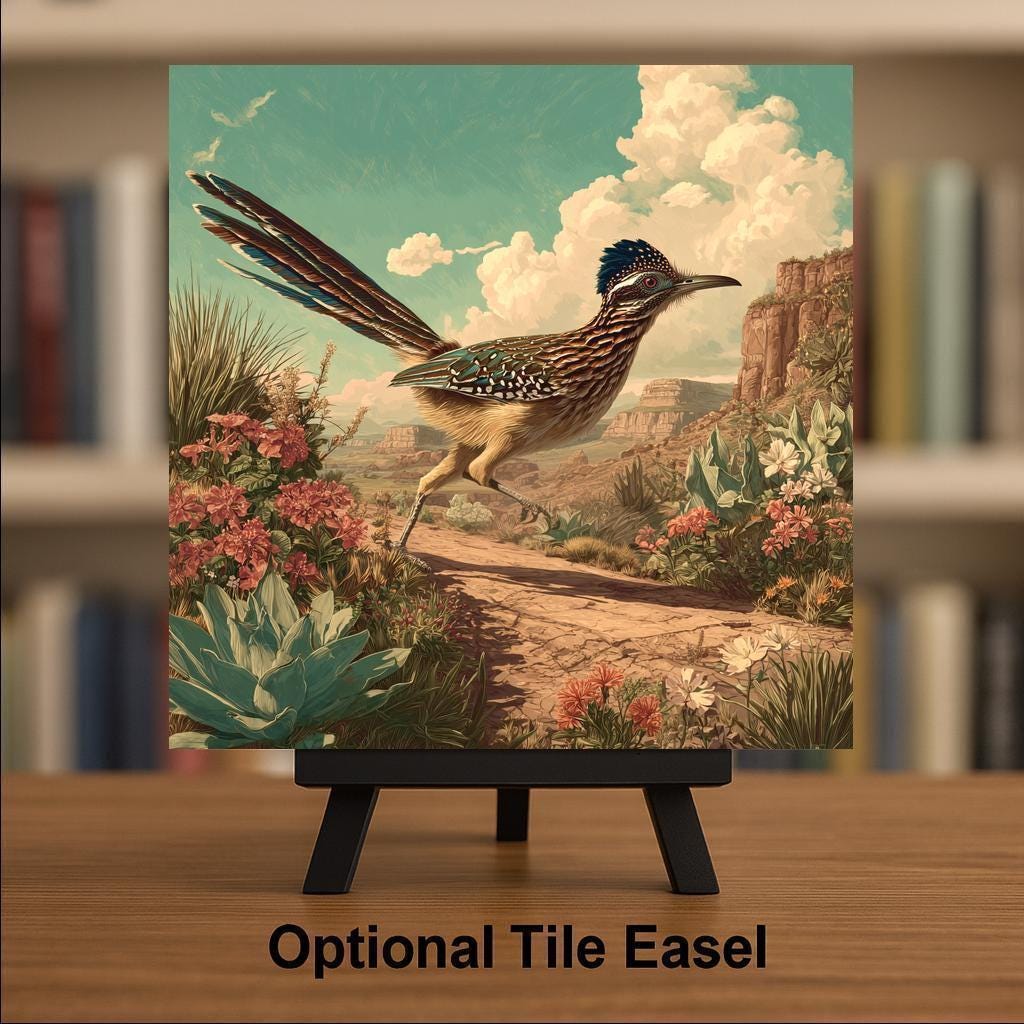 Perfect for bird lovers, Arizona natives, or fans of nature-inspired art, this piece fits beautifully into rustic, desert, or farmhouse interiors. Display it on your wall, shelf, or patio with the optional tile wall hanger, easel tile stand, or cork backing available at checkout.