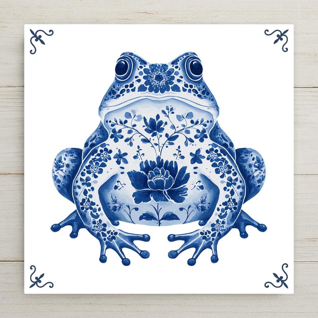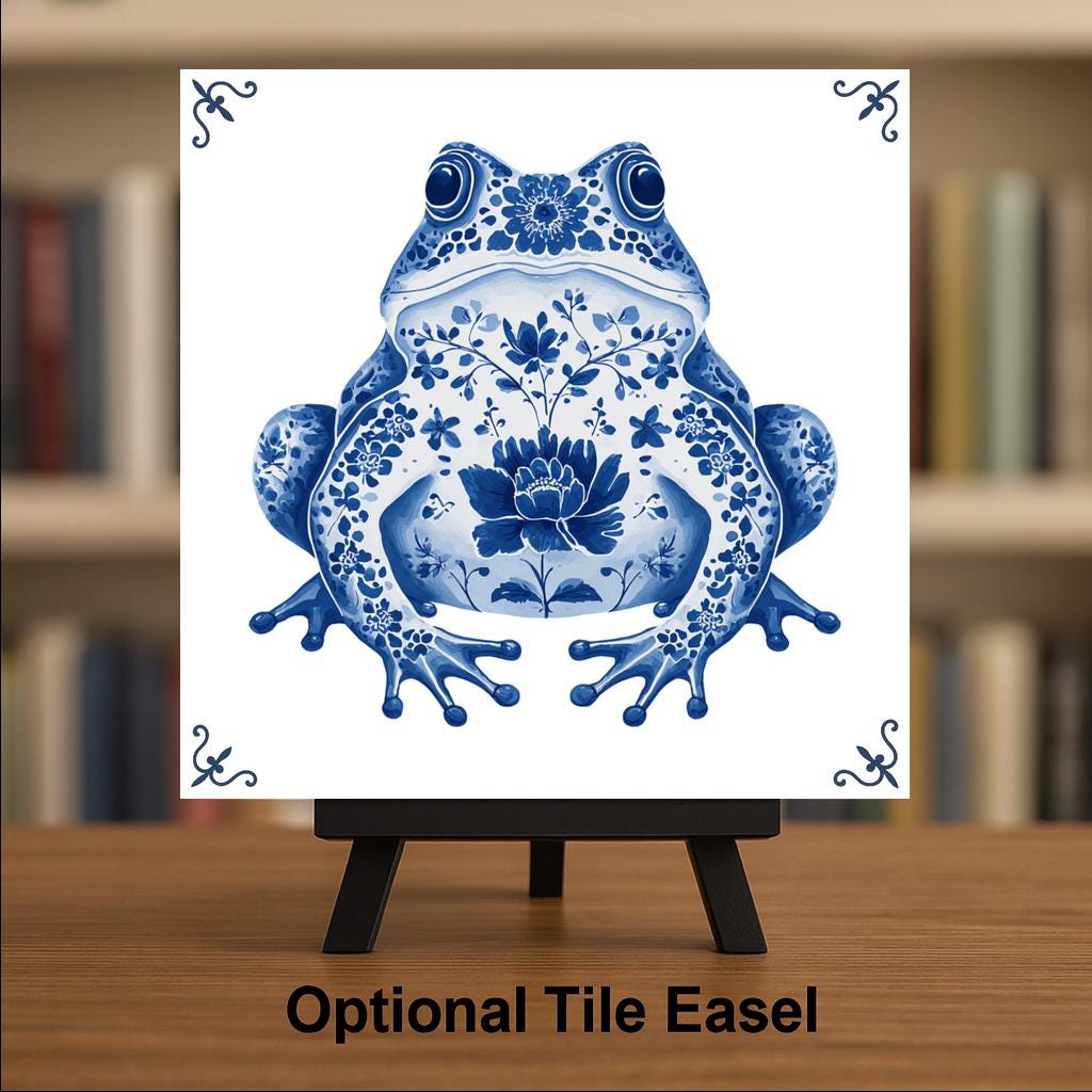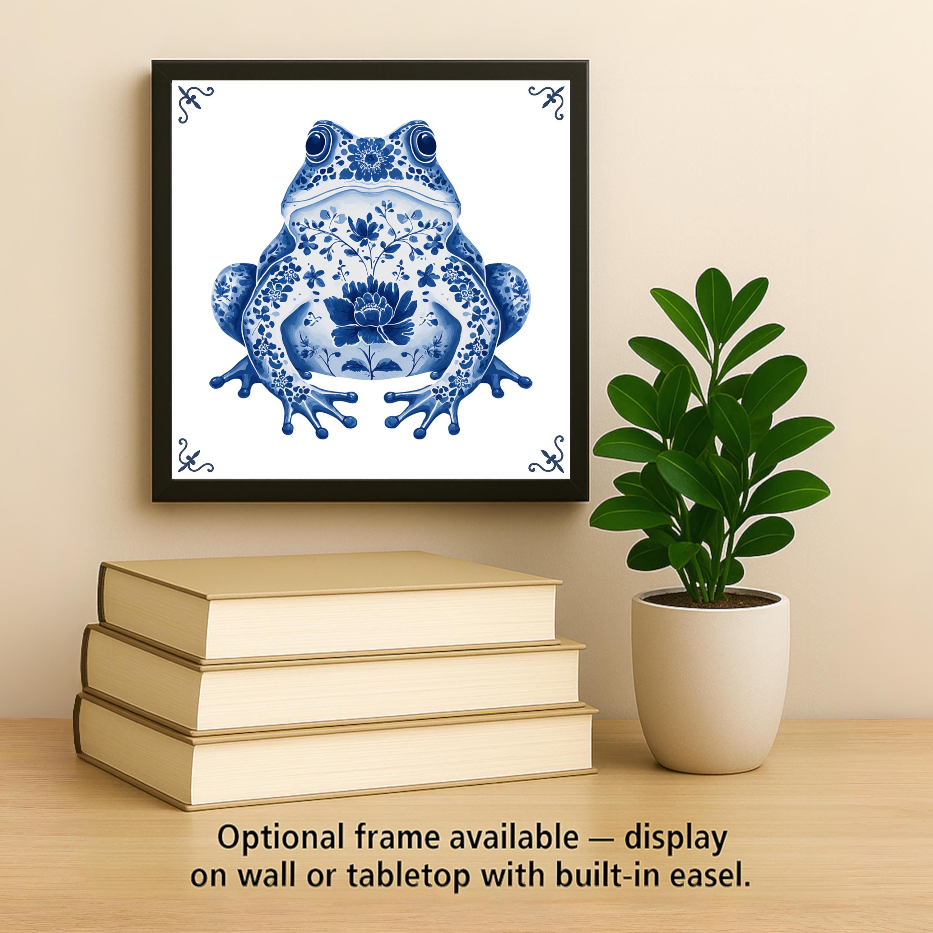 Great for frog collectors, blue-and-white decor fans, or those who love vintage-style wall art, this tile adds personality and cultural flair to any room. Display it in a kitchen, bathroom, sunroom, or as part of a larger Delft tile arrangement.