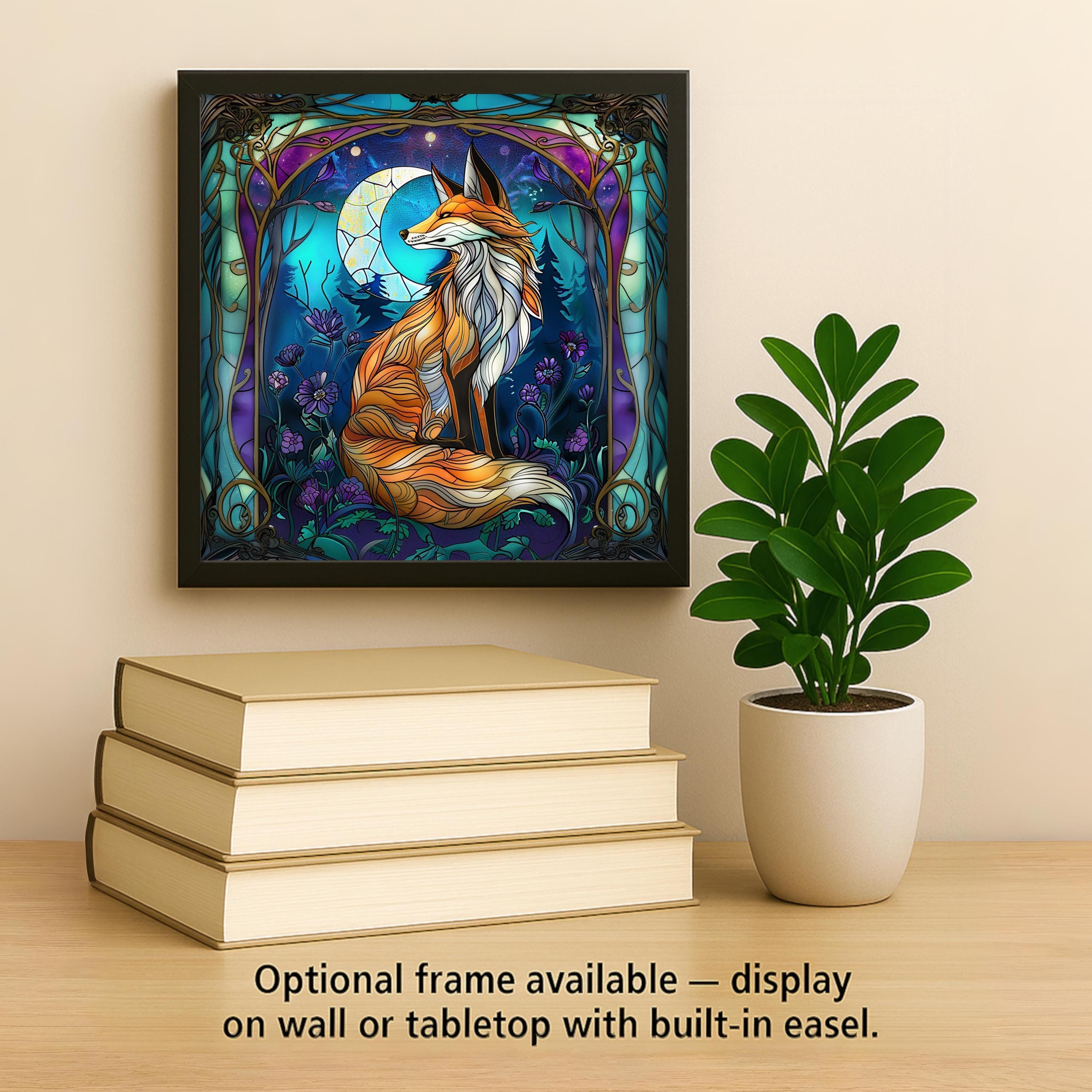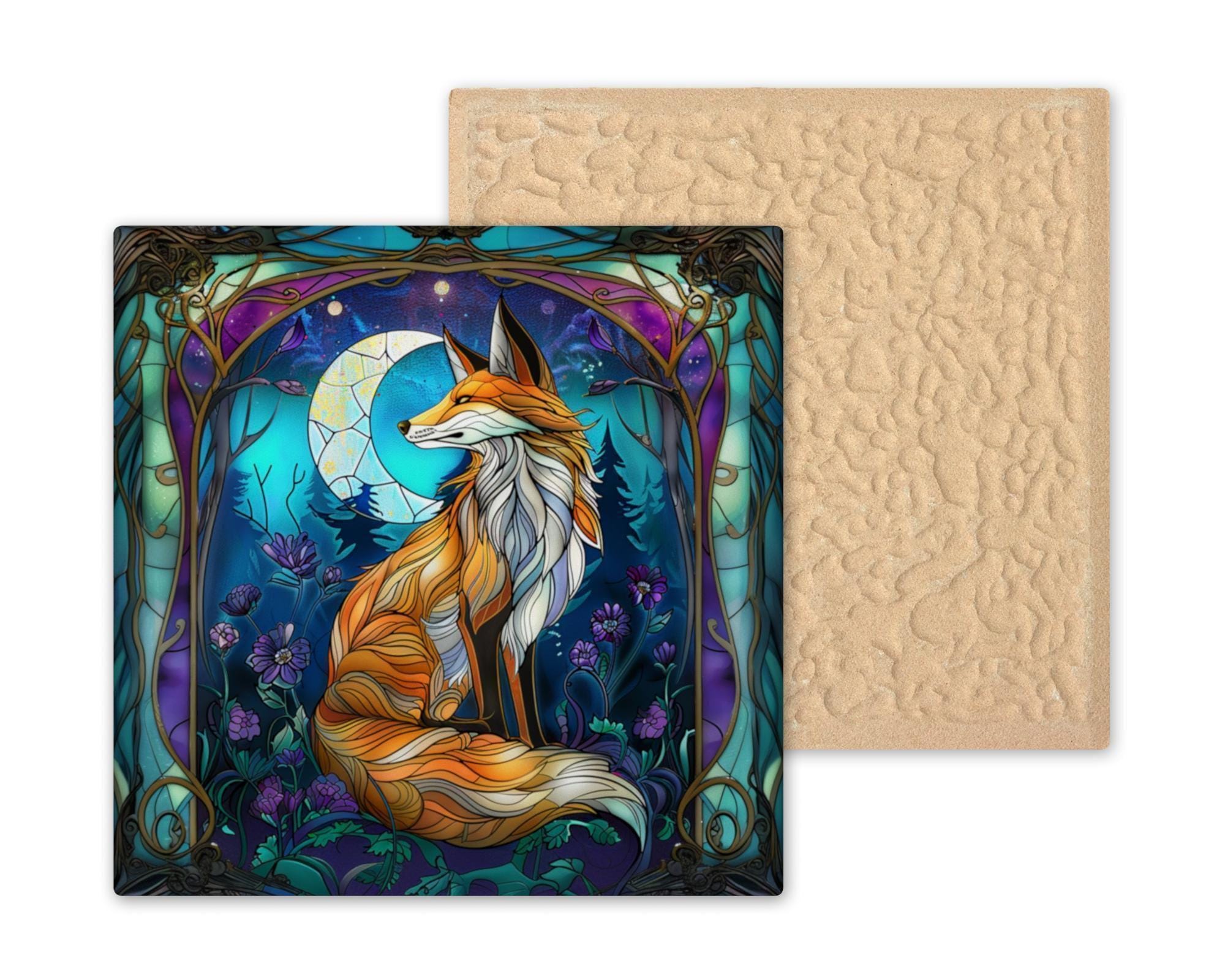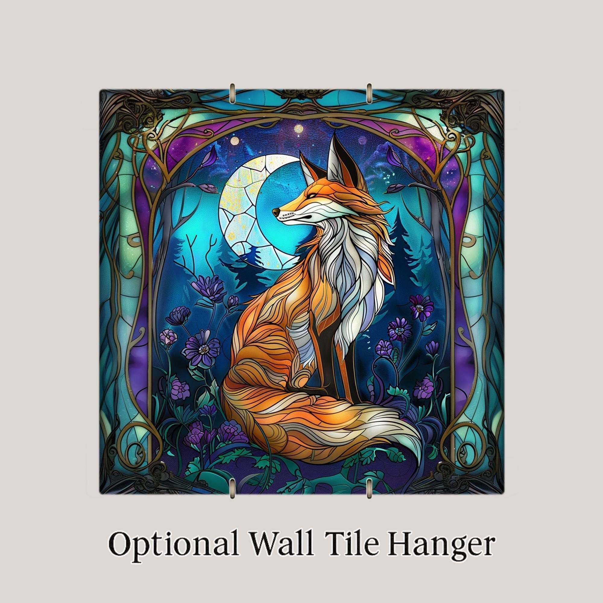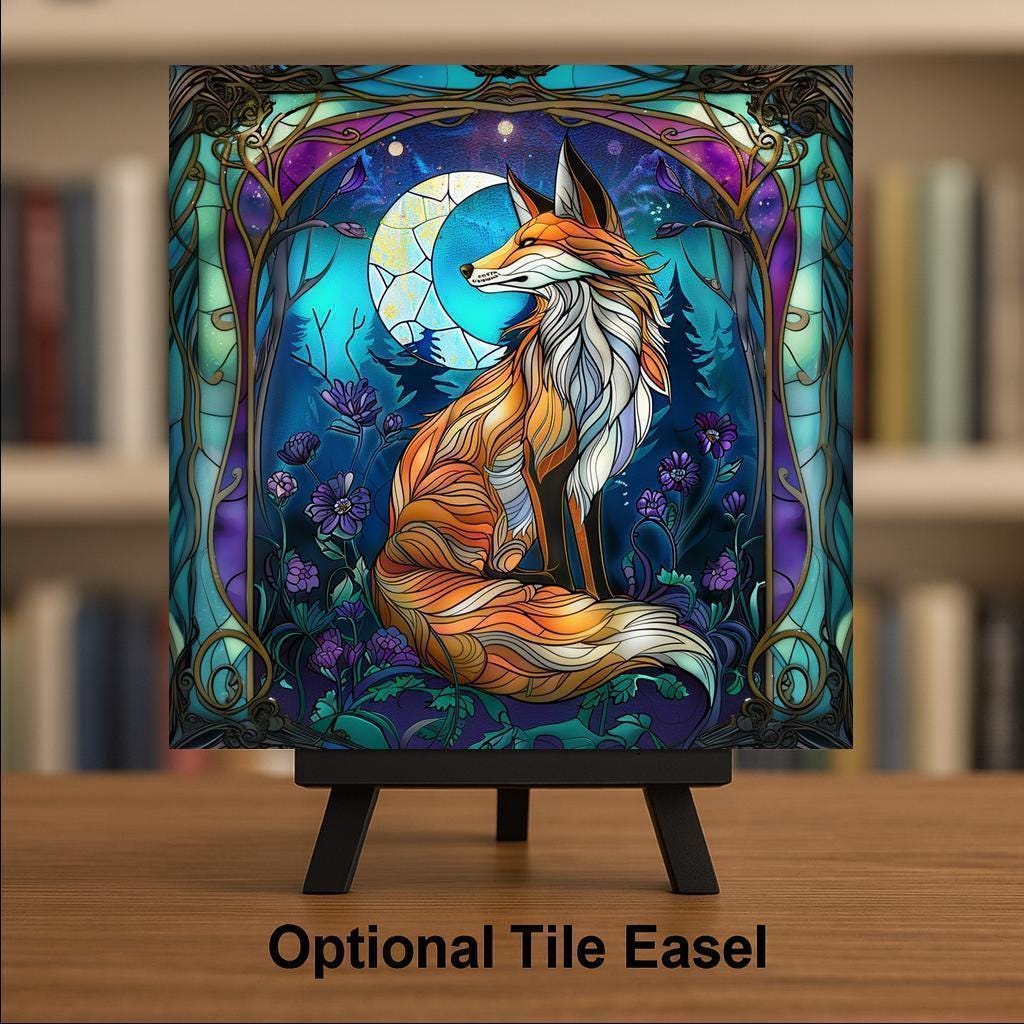 Celebrate the wonder of the forest with this captivating Art Nouveau fox tile. With its flowing stained glass-inspired design, this artwork features a mystical fox surrounded by moon phases, lush florals, and rich jewel tones. It’s more than wall art — it’s a story told through color and line. Ideal for nature lovers, spiritual art collectors, or anyone who appreciates fantasy-inspired home decor, this piece radiates warmth and magic. Each tile is crafted with care and designed to last as a striking accent for your living room, bedroom, or sacred space. Perfect as a gift for birthdays, housewarmings, or anyone needing a touch of forest magic. Optional tile wall hanger, easel tile stand, or cork backing available.