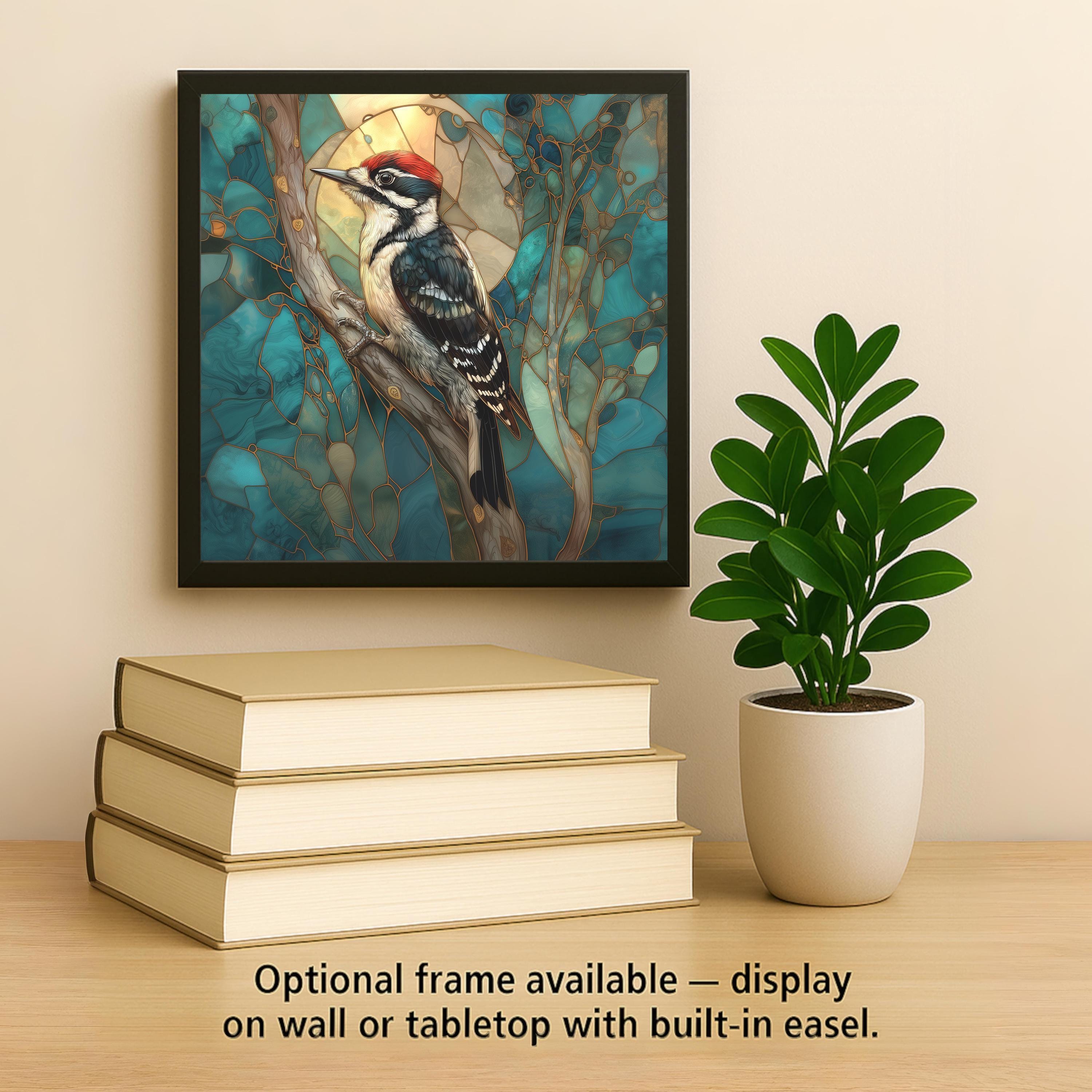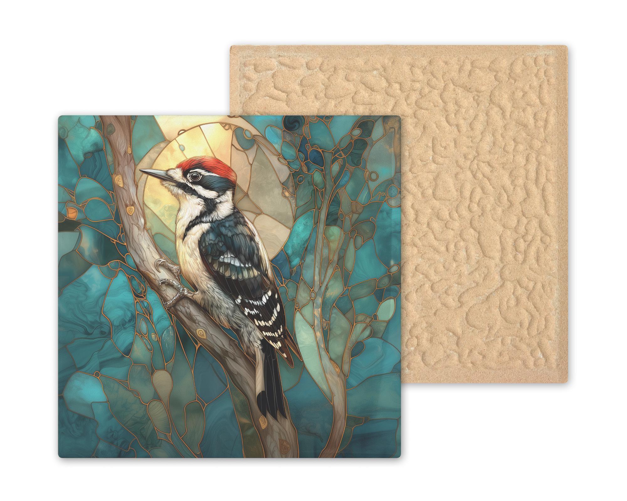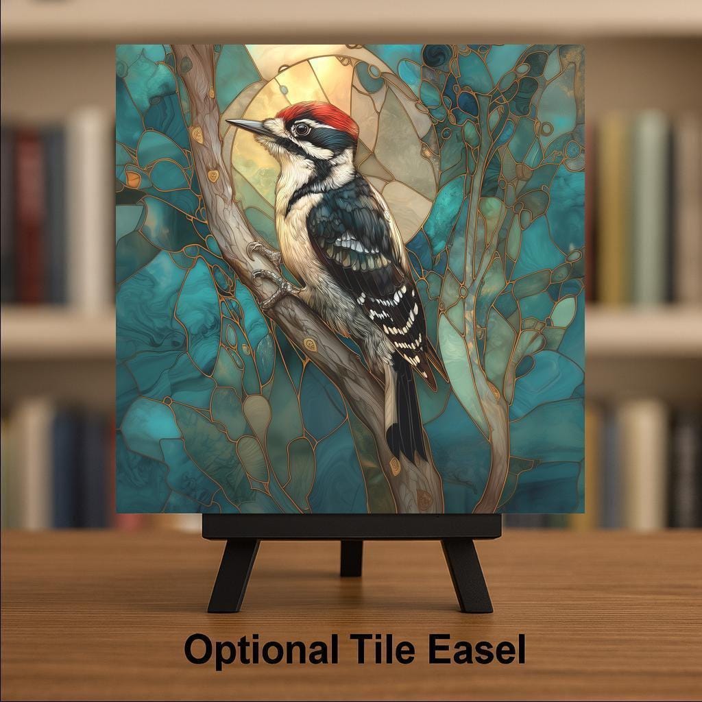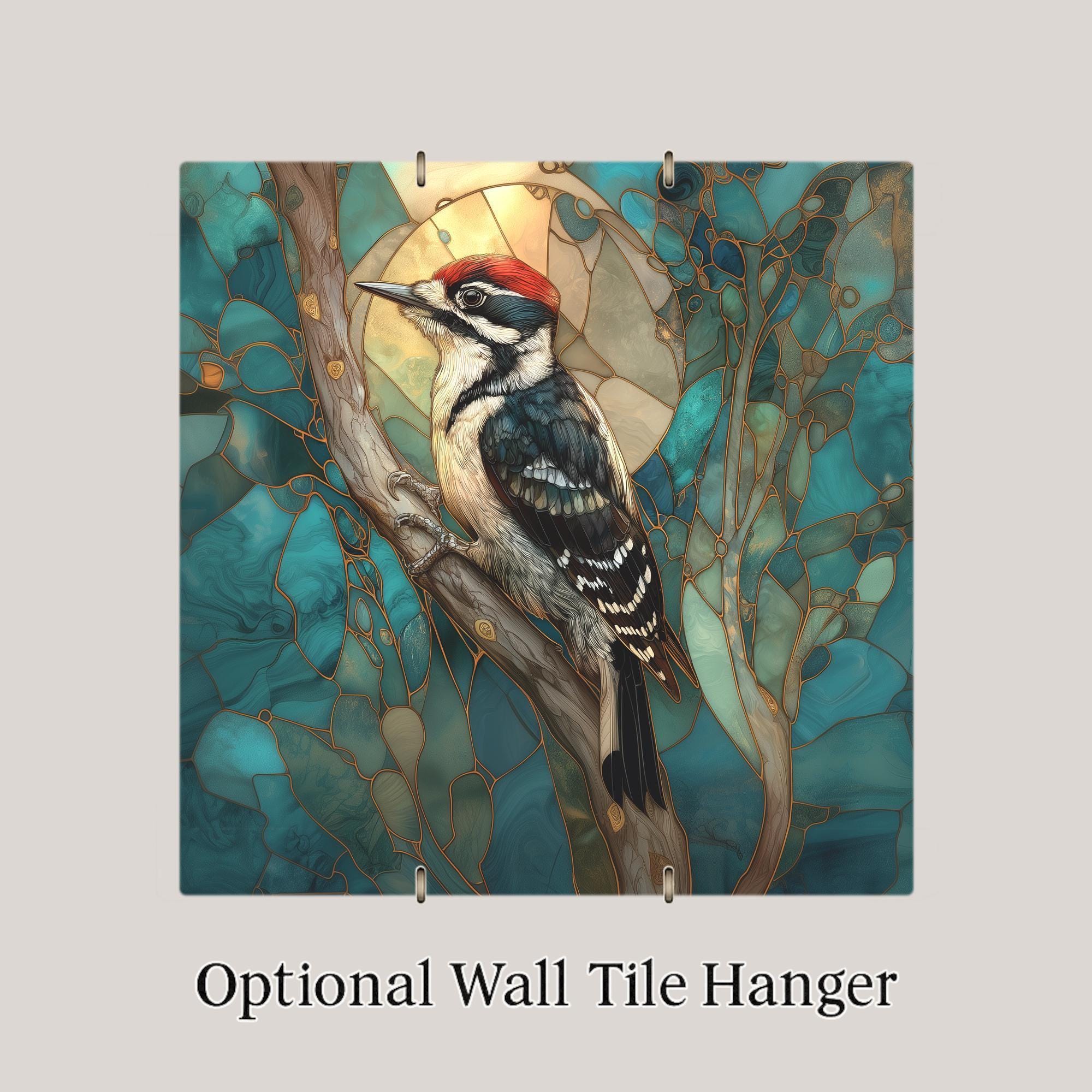 This Downy Woodpecker ceramic art tile seamlessly combines nature’s whimsy with stained glass-inspired elegance. Designed to evoke a feeling of calm wonder, every line and color detail captures the freedom and charm of the forest. From the vibrant red crest to the intricate feather patterns, this piece radiates warmth and invites closer admiration.