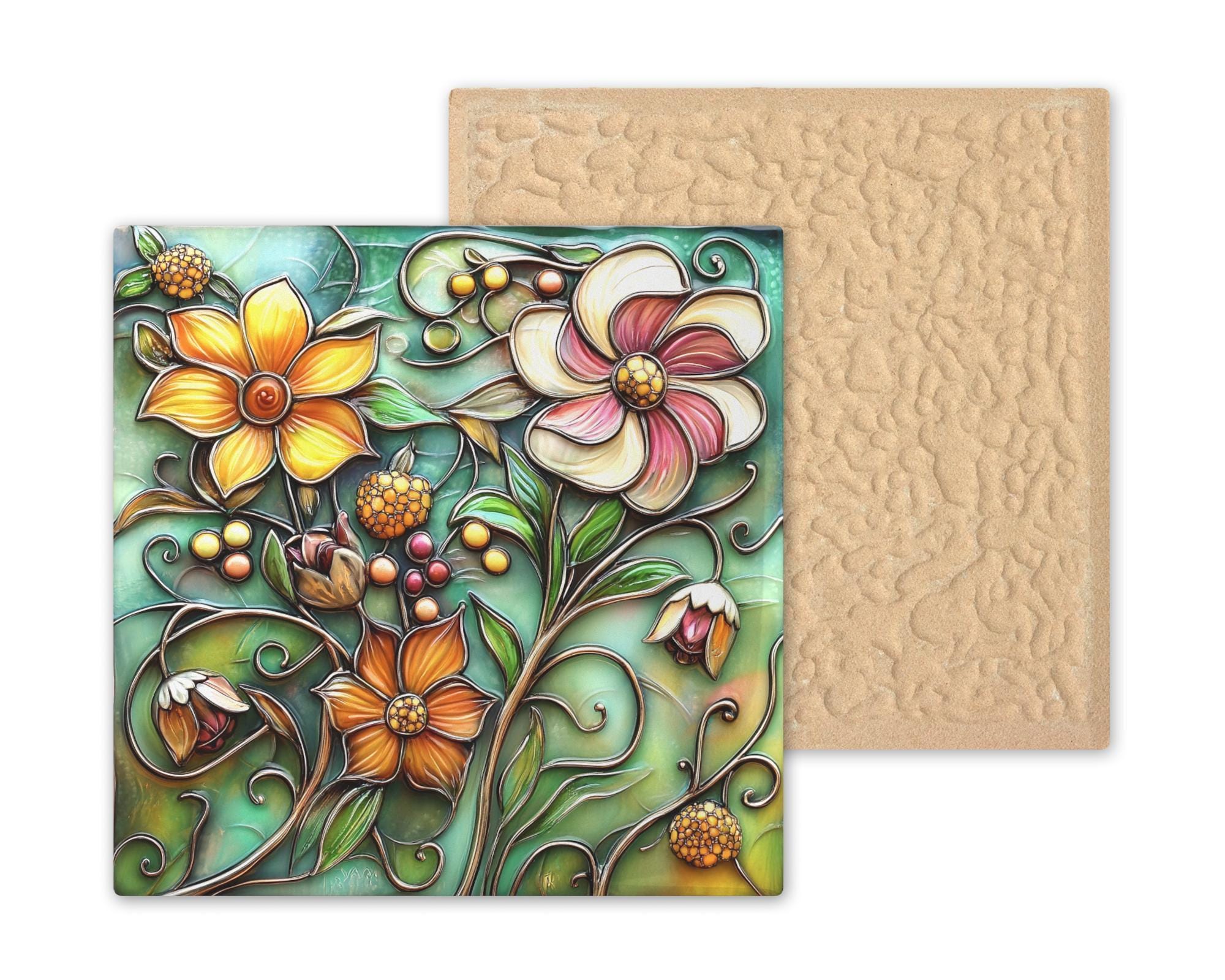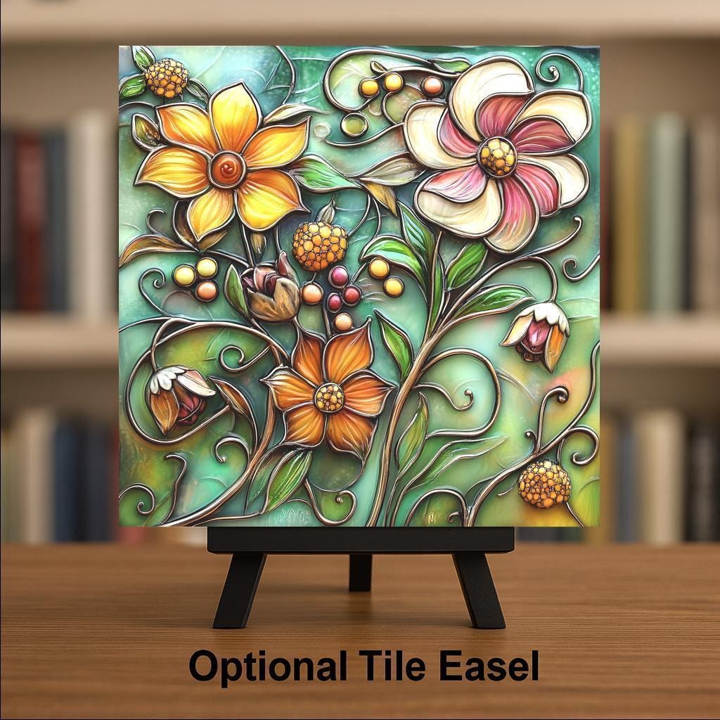 This summer garden floral ceramic tile was designed for the buyer who loves a garden but wants it inside year-round. The abundance of bloom — the way the flowers fill the entire tile with color and life — gives it a generosity that minimal botanical prints cannot match. This is a piece for someone who believes more is more when it comes to garden color.