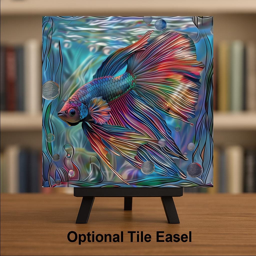 Perfect as a gift or part of a larger aquatic tile collection, it includes optional cork backing, wall hanger, or easel tile stand. Designed to look like stained glass, it's durable, fade-resistant, and beautifully crafted.