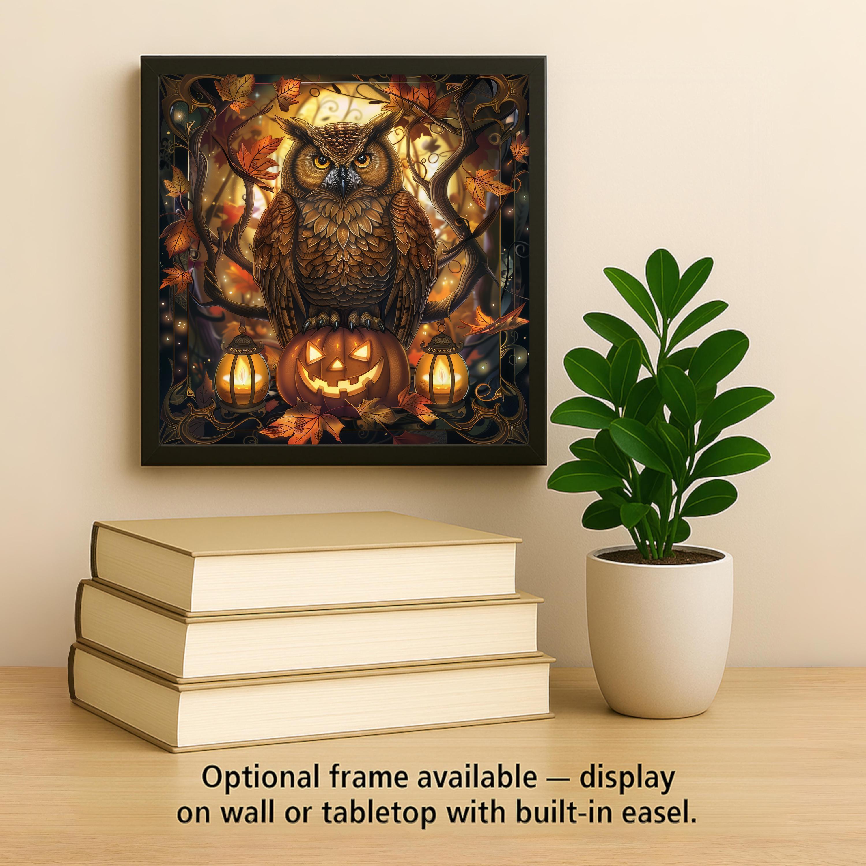 It makes a strong gift for owl lovers, Halloween enthusiasts, autumn home decorators, and anyone who takes seasonal decorating seriously enough to want art on their walls rather than just trinkets on their shelves.