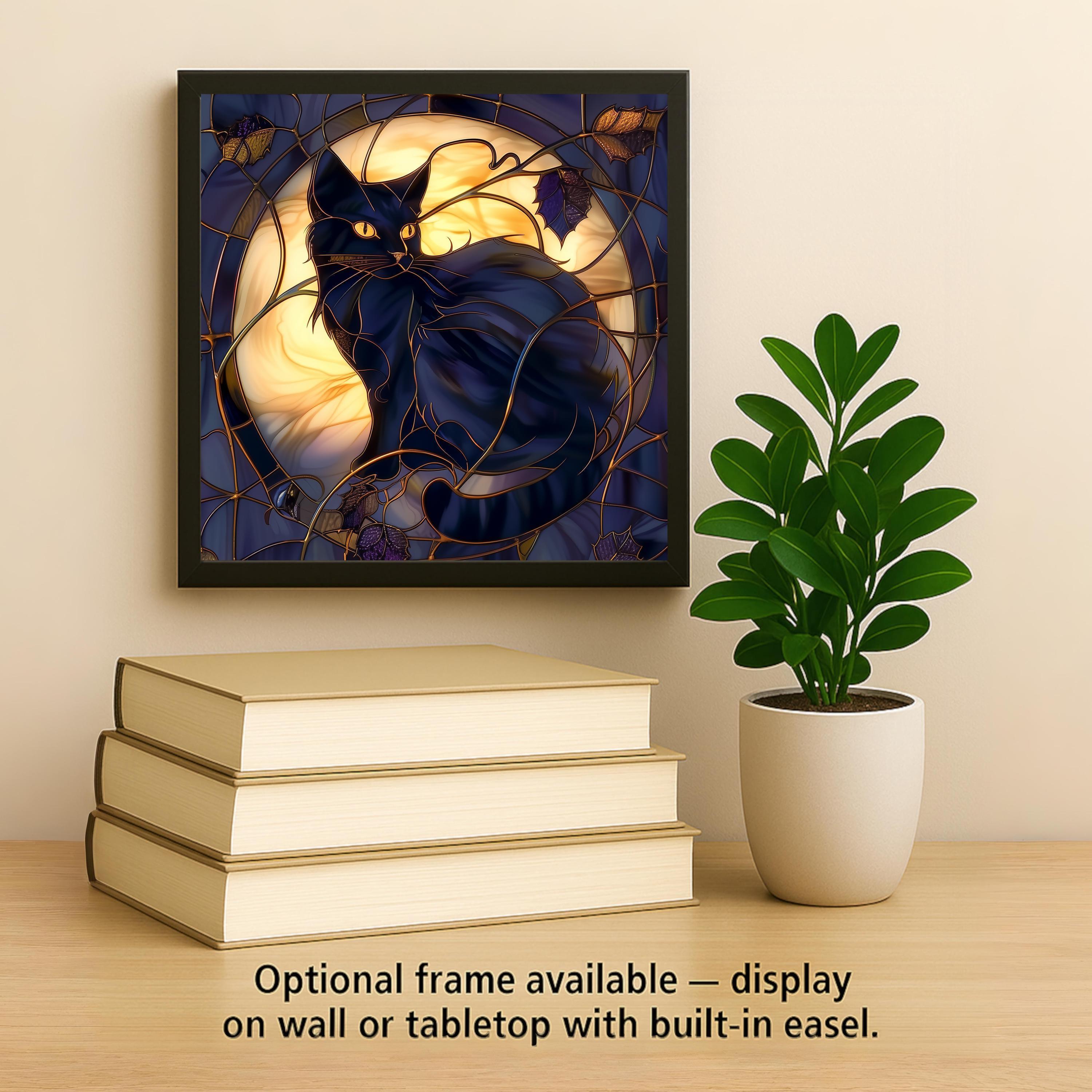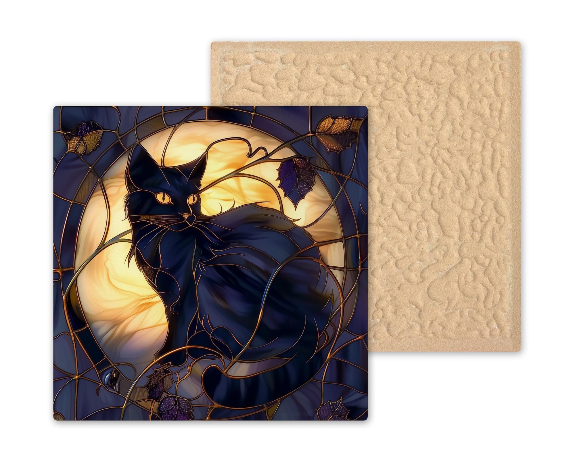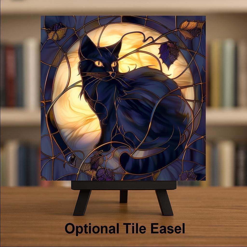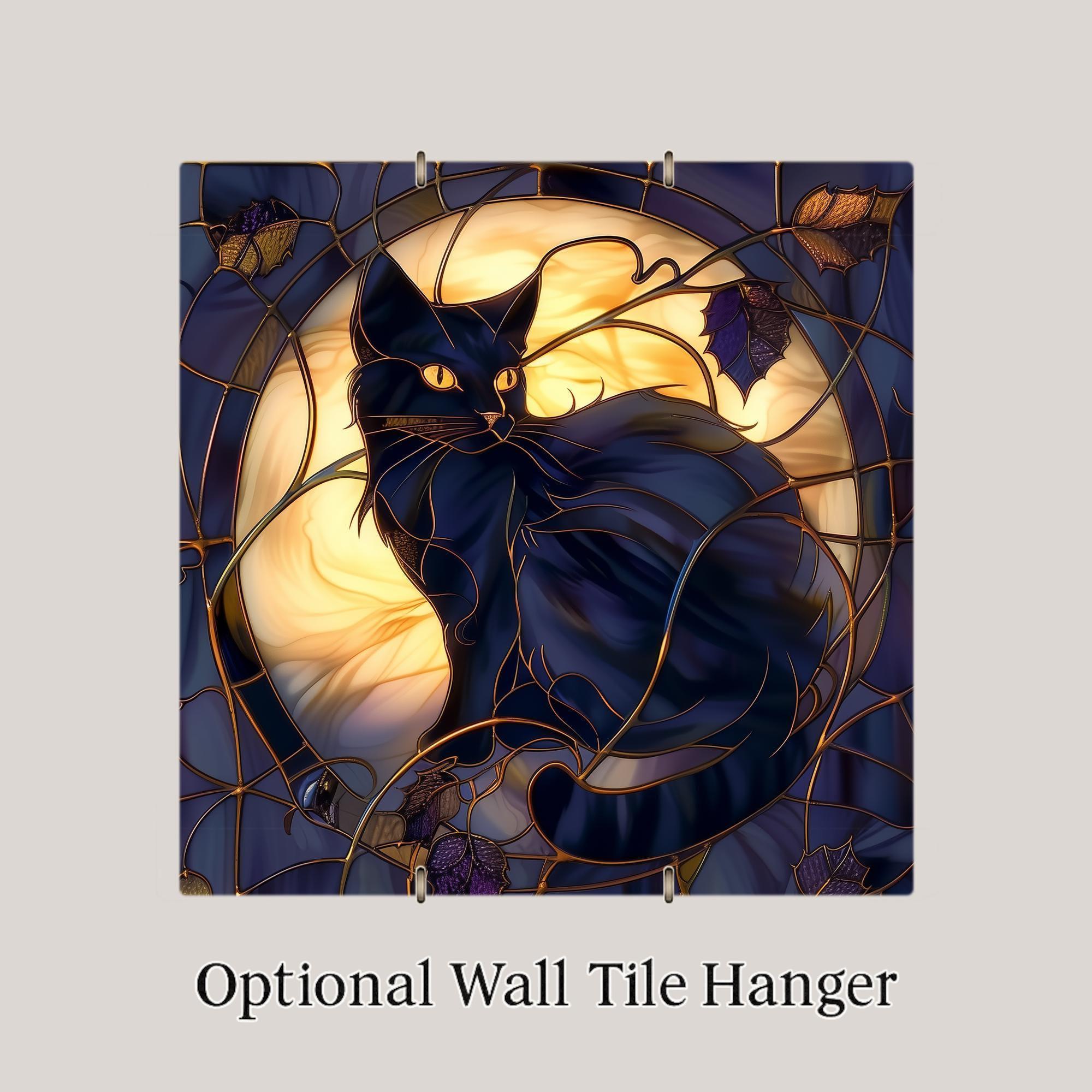 This tile suits gothic decor, witchcraft-inspired spaces, moon-themed rooms, cat-lover collections, and fantasy-style home decorating. It also makes a memorable gift for anyone who enjoys magical creatures, stained-glass art, or dramatic moonlit scenes. Its warm glow and rich colors make it a standout piece in cozy nooks, living rooms, entryways, or office spaces.