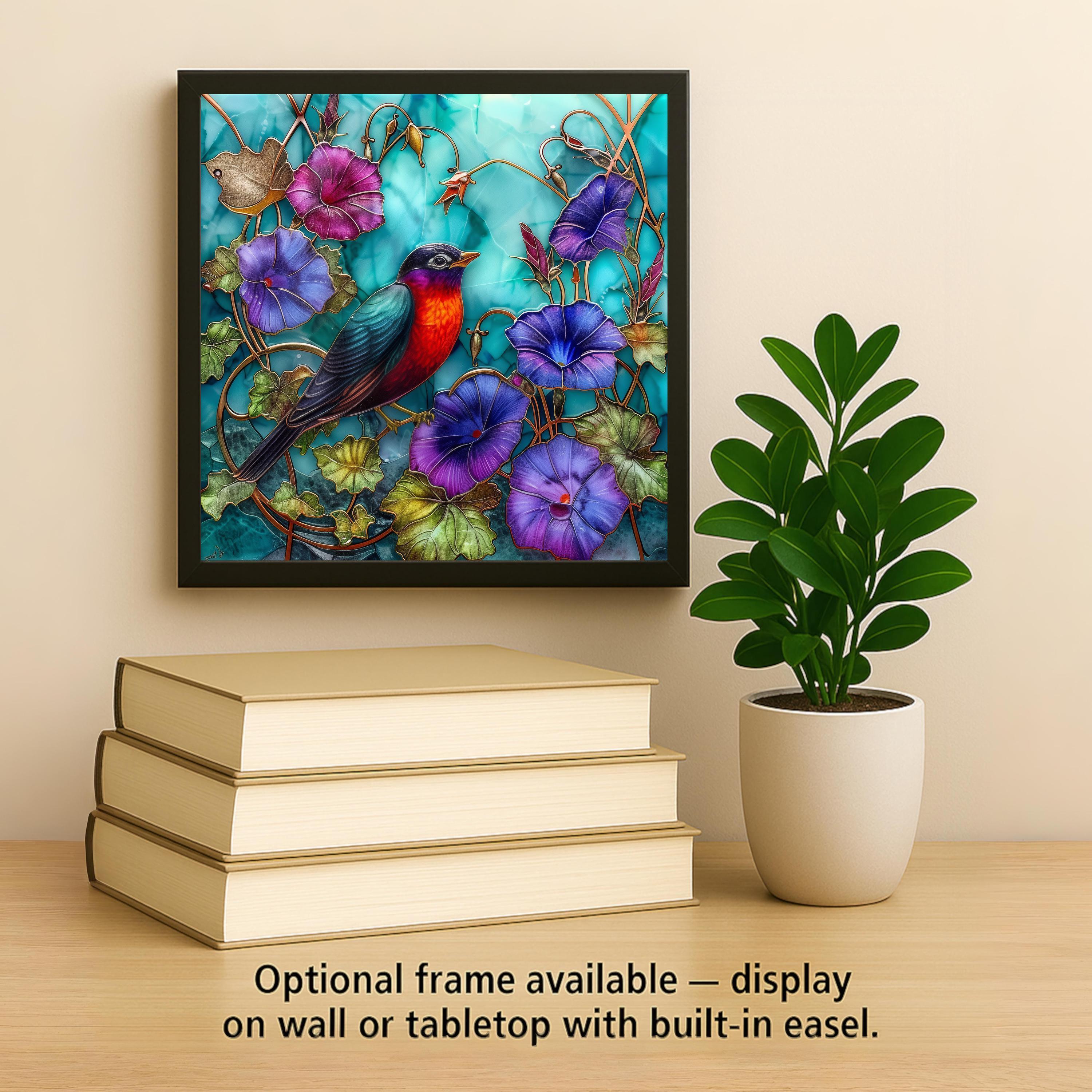 Though it appears like real stained glass, this is a high-quality ceramic tile with a permanent print—no glass, no mosaic, just long-lasting beauty. It’s an ideal decorative piece for your wall, shelf, or countertop and makes a perfect gift for bird enthusiasts or anyone who appreciates nature-themed art.