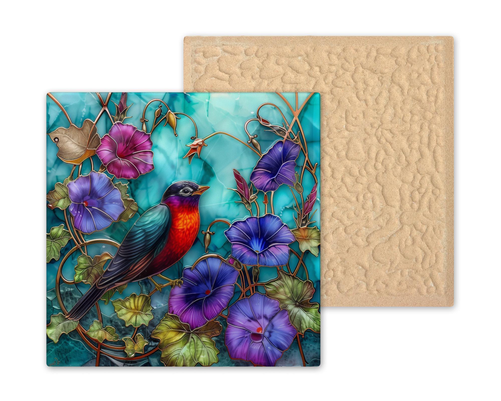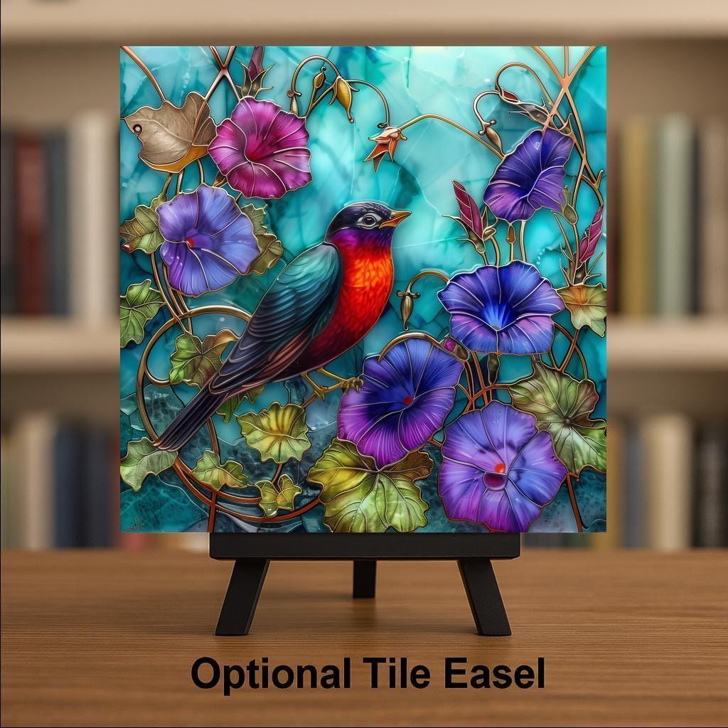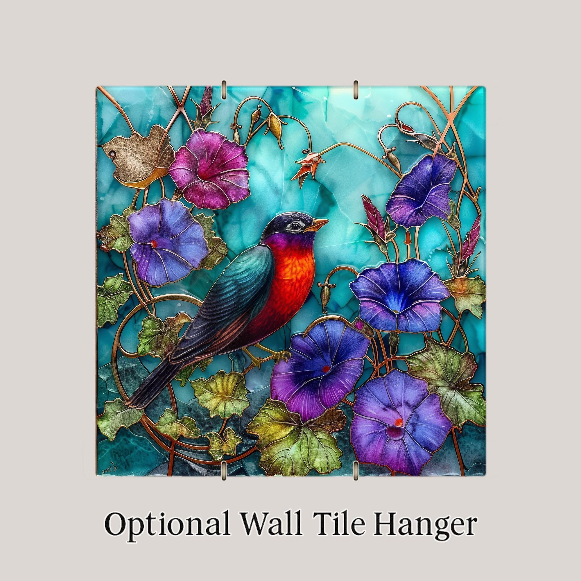 Each tile is resistant to fading over time and is available with optional add-ons like cork backing, a tile wall hanger, or a display easel tile stand for easy showcasing. Whether for your own home or as a meaningful gift, this robin tile brings elegance and joy.