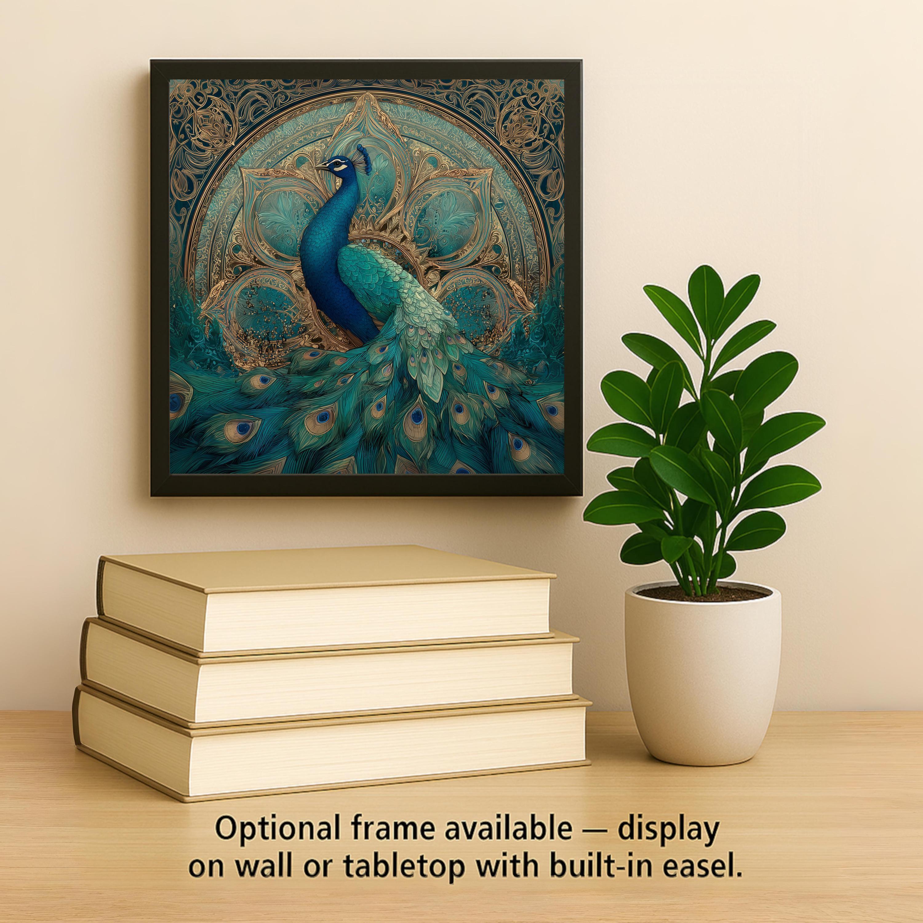 Though it may look gilded or hand-painted, this is actually a permanent high-resolution print on ceramic—easy to clean, resistant to fading, and designed to last. Whether used in a gallery wall or as a unique gift for someone special, it captures the timeless beauty of the peacock in vibrant, earthy elegance.