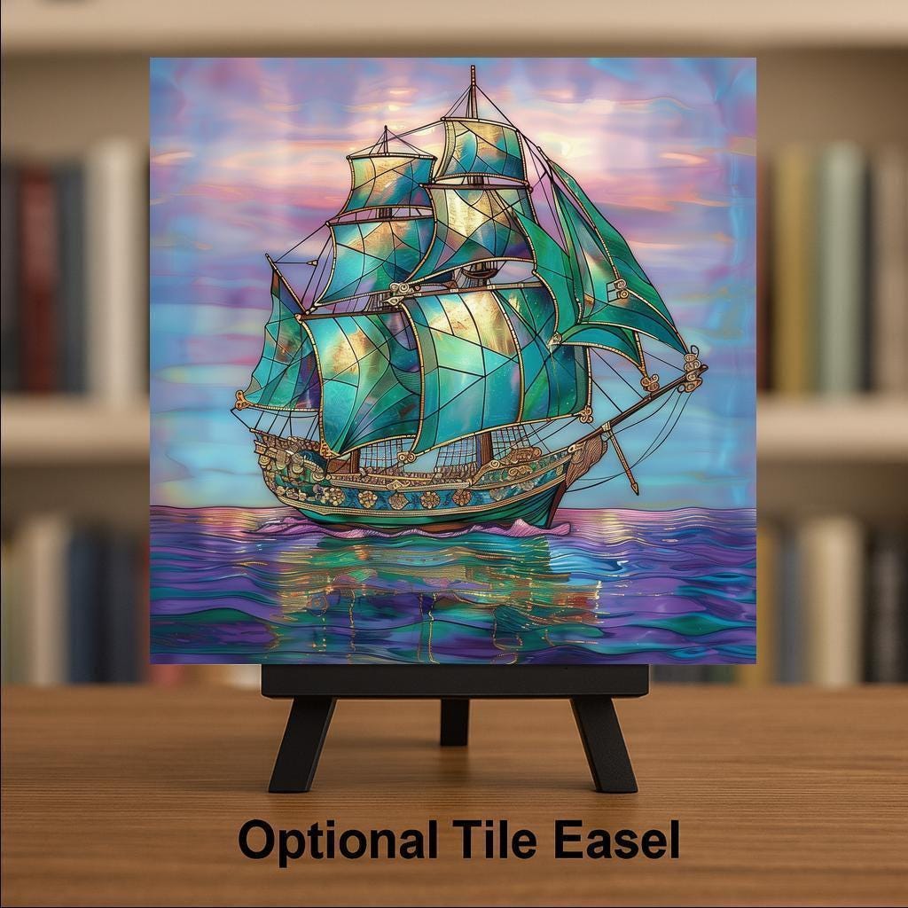 Capture the romance of the sea and the beauty of stained glass design with a tile that’s perfect for coastal homes, nautical collections, or as a unique seafaring gift.