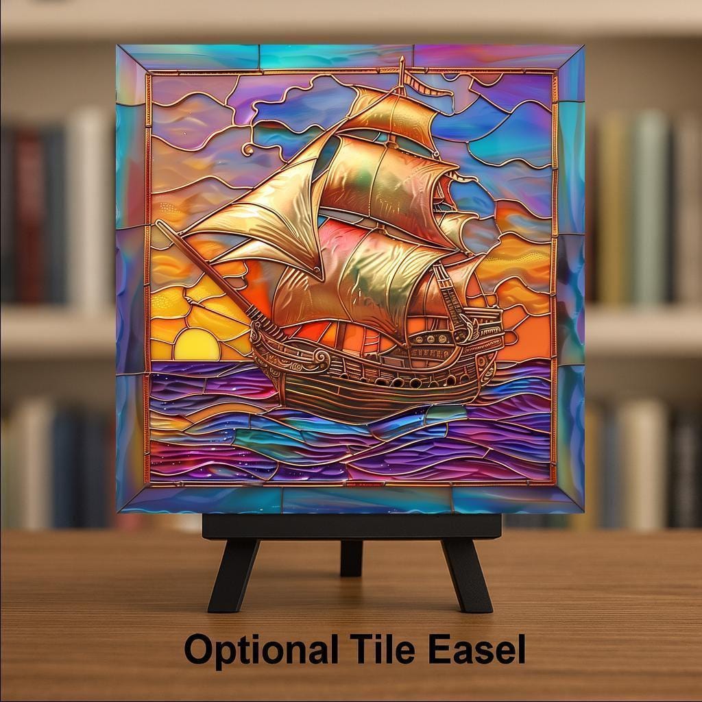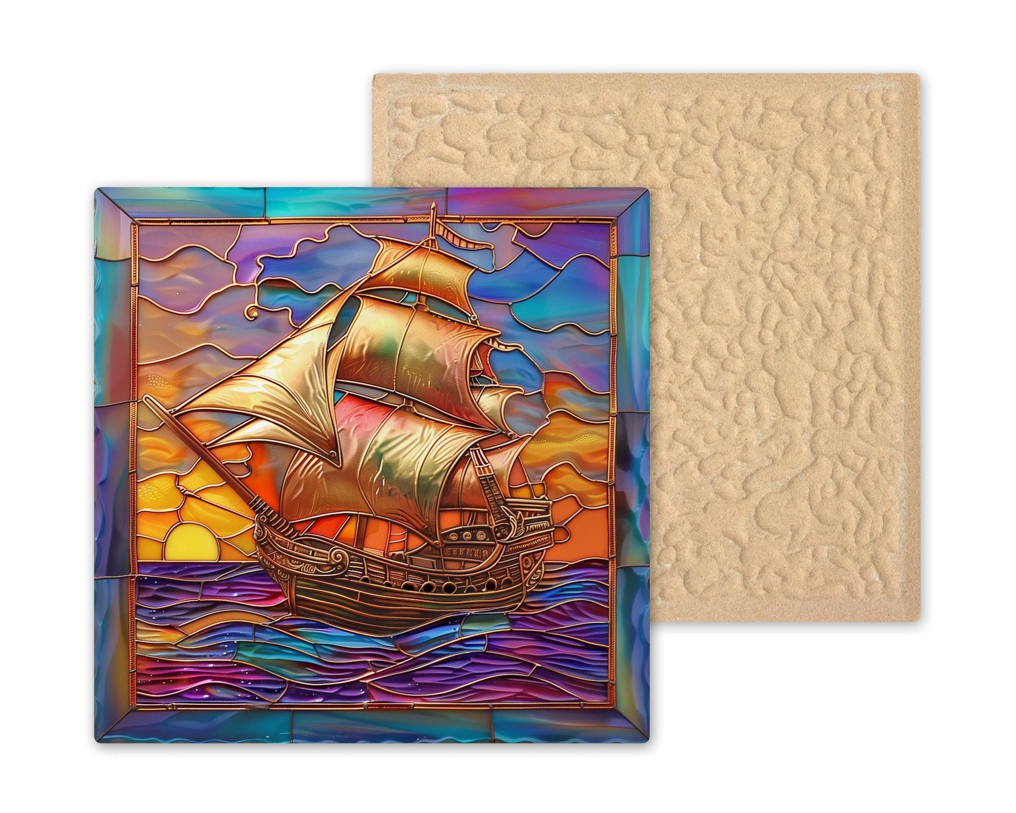 Celebrate your love of the sea with a ceramic tile that combines the brilliance of stained glass artistry with the enduring spirit of maritime adventure.