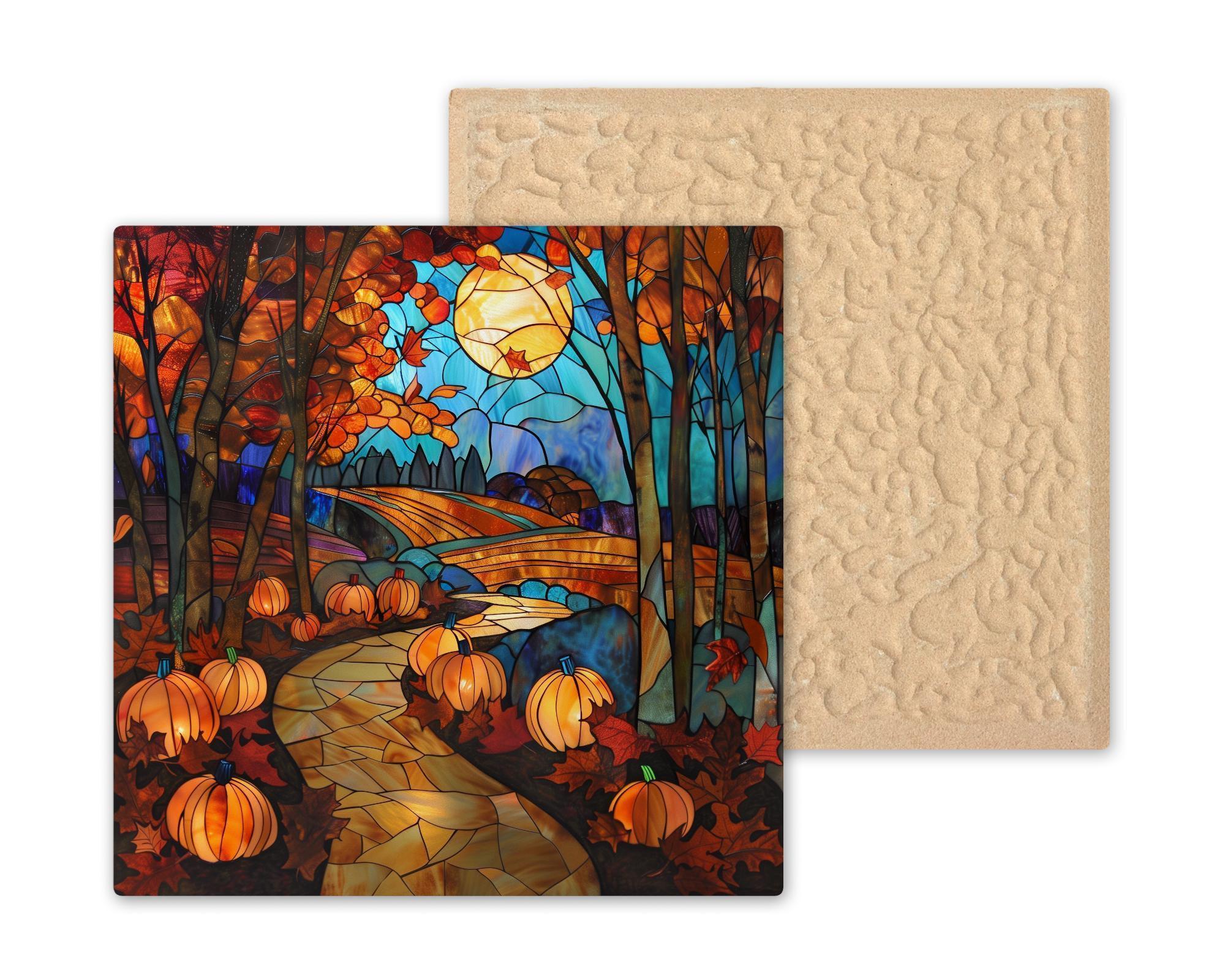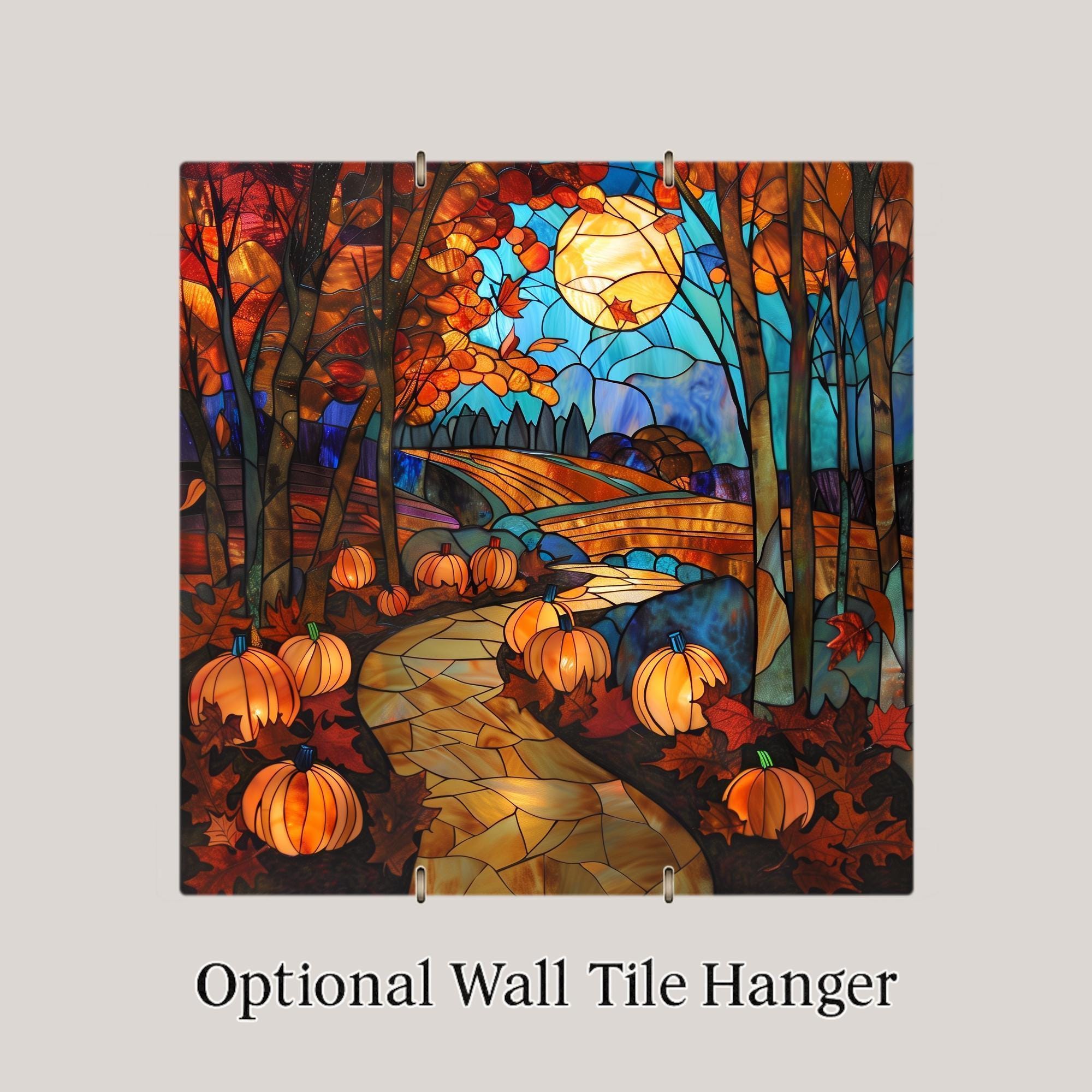 Whether you are looking for a unique Thanksgiving gift, fall farmhouse décor, or a seasonal accent for your own home, this tile is the perfect choice. The stained glass–style glow makes it a standout piece that celebrates the best of autumn.