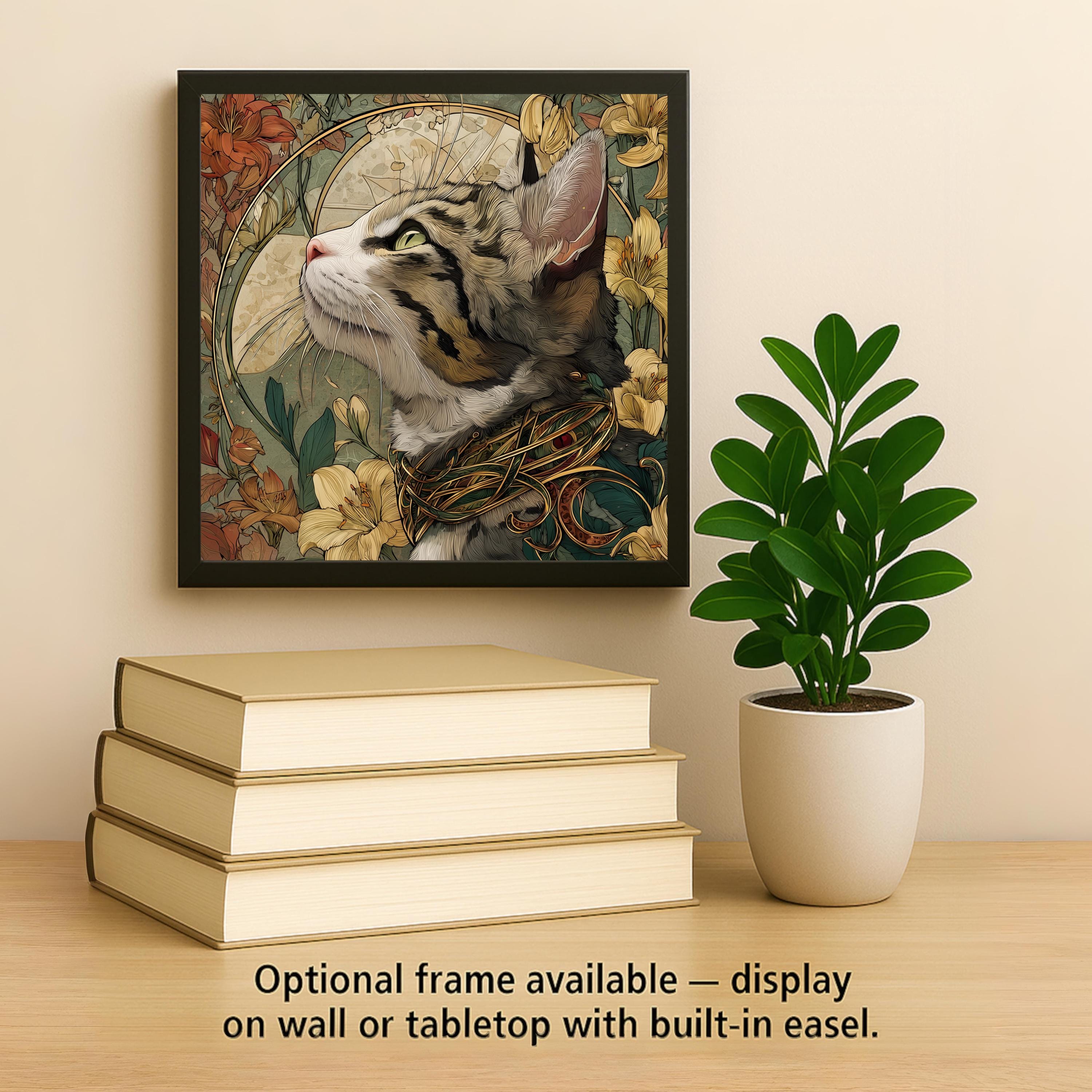 This artwork also makes a unique and meaningful gift. Perfect for cat lovers, floral enthusiasts, or fans of vintage design, it captures the beauty of Art Nouveau while celebrating feline grace. The glowing tones and intricate details make it a piece to admire for years to come.