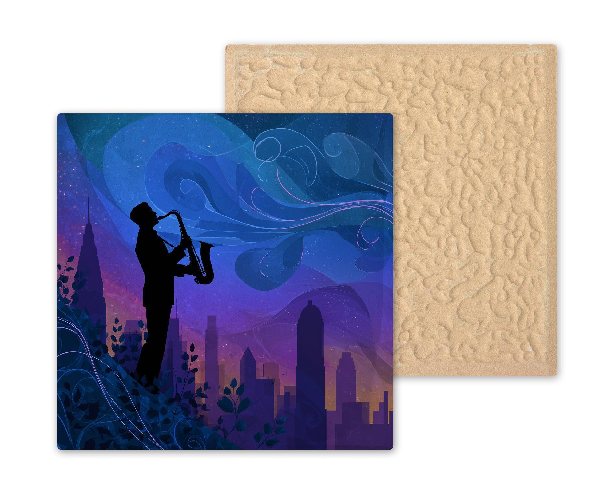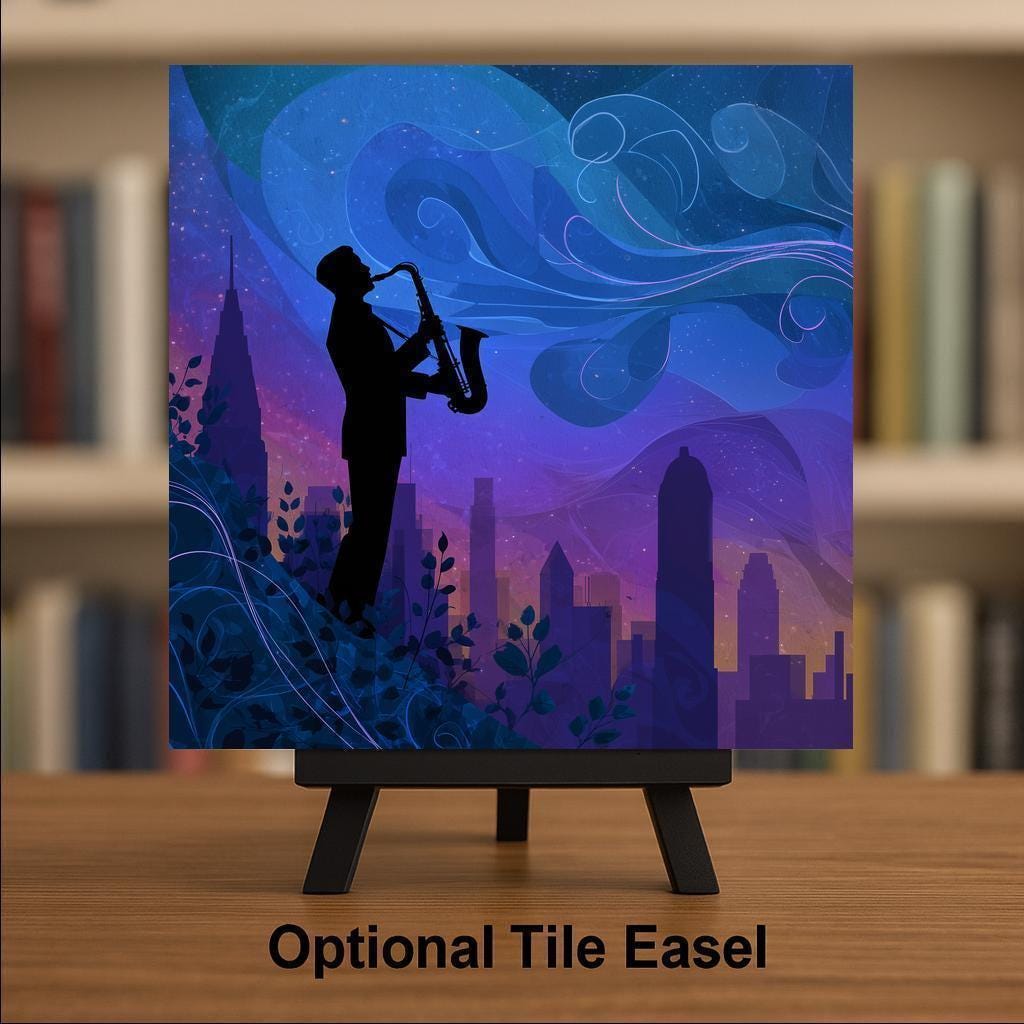 It also makes a meaningful gift for jazz lovers, musicians, and anyone who enjoys unique art. Perfect for birthdays, anniversaries, or music-themed celebrations, this piece adds rhythm and soul to any home. Optional tile wall hanger, easel tile stand, or cork backing are available for flexible display.