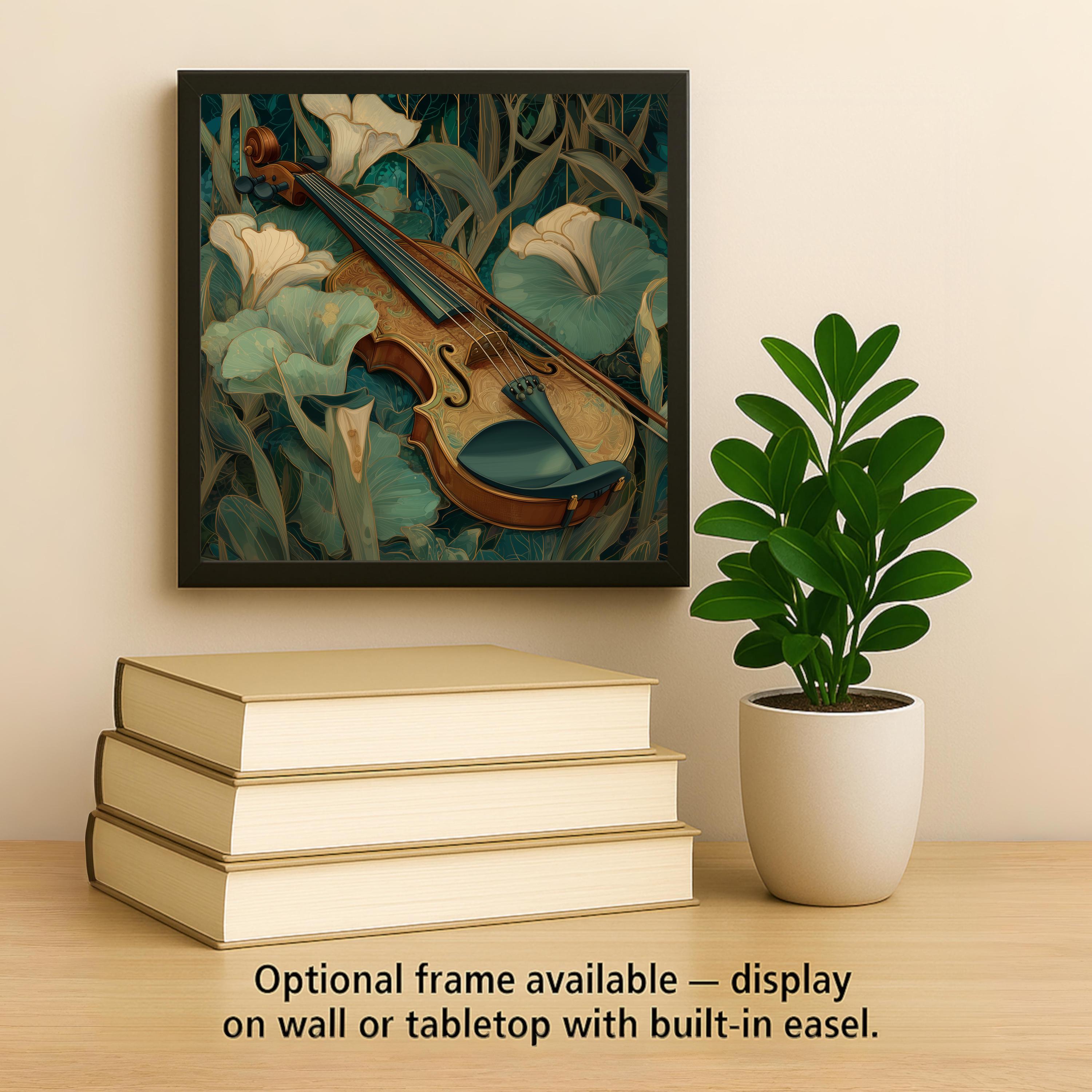 This tile also makes a thoughtful gift for violin players, music lovers, or anyone who enjoys romantic decor. Its glowing finish ensures it remains timeless and admired for years. Optional tile wall hanger, easel tile stand, or cork backing are available to suit your display needs.