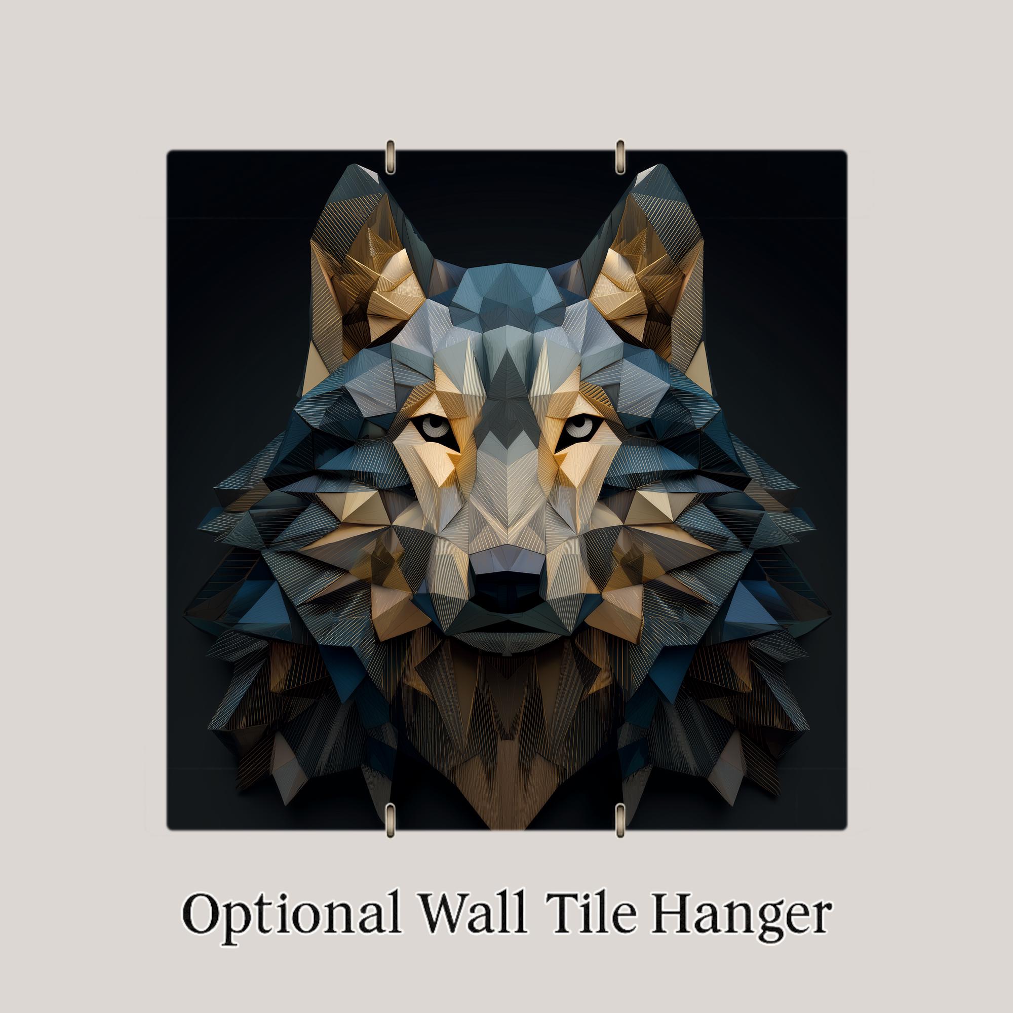 Transform your home with this stained glass style ceramic tile featuring a geometric wolf design. The artwork blends bold angular shapes with glowing highlights, creating a piece that feels both modern and primal. The wolf’s gaze is steady and powerful, embodying wisdom and strength.