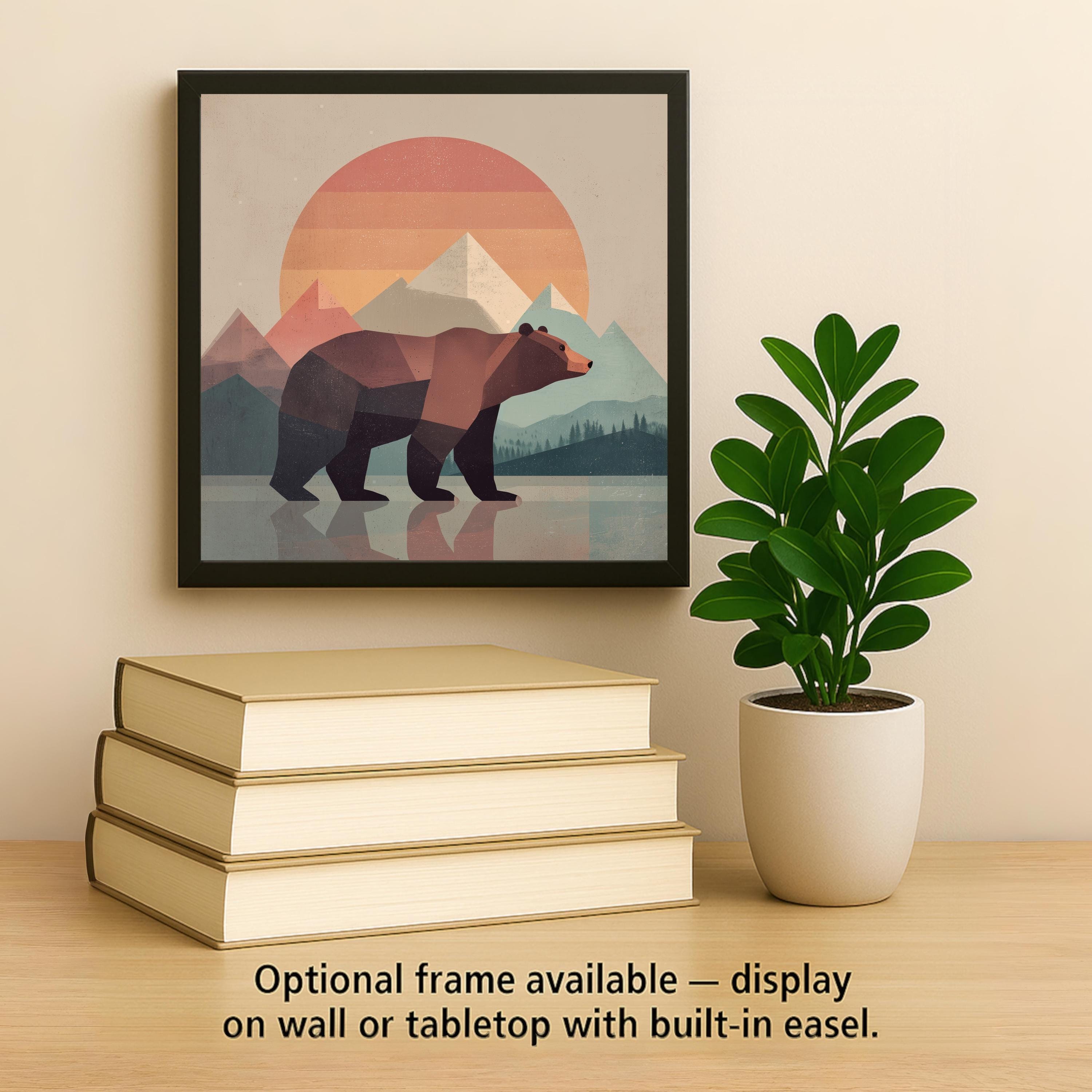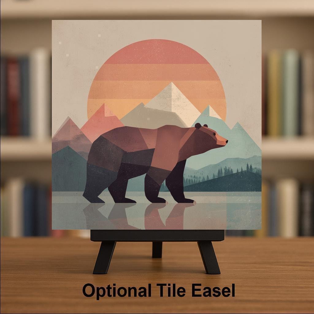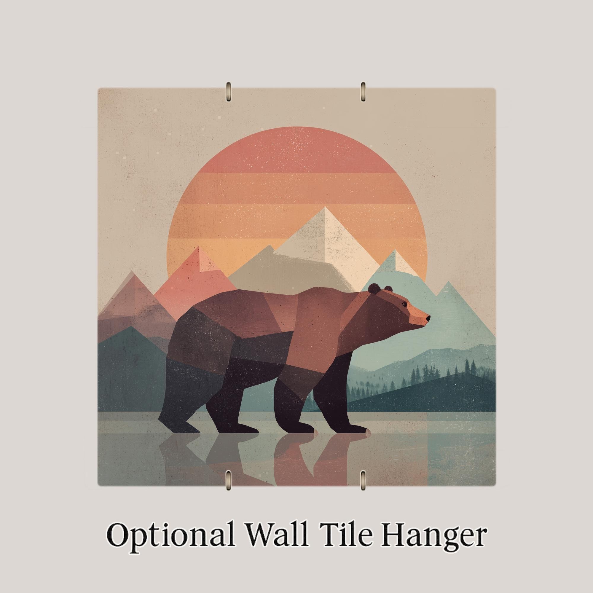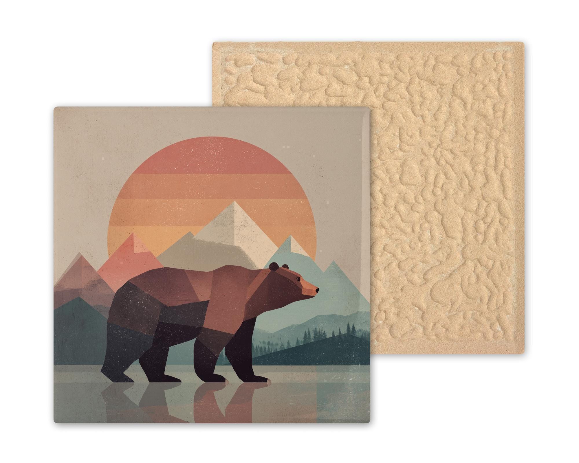 This geometric mountain bear ceramic tile was designed for the buyer who wants wildlife art with a contemporary edge — the cabin owner who appreciates both the subject and the design treatment, not just a photographic wildlife print. The geometric style gives the bear a bold graphic presence that works in modern mountain interiors as naturally as it does in rustic cabin spaces.