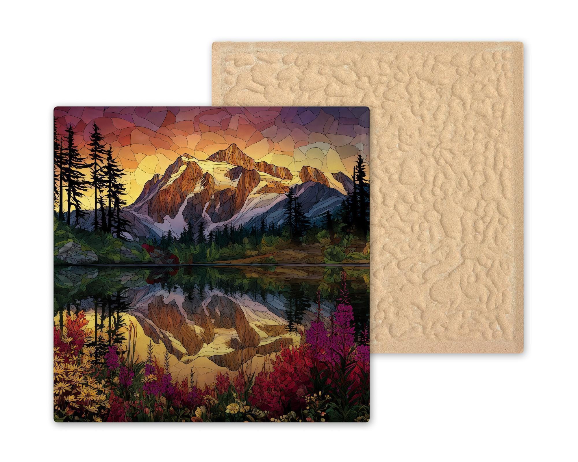 Created to celebrate both artistry and nature, this ceramic tile is perfect for outdoor enthusiasts, mountain adventurers, or anyone looking for a vibrant yet elegant piece of home décor. The stained glass-inspired design ensures glowing depth and dimension, making it look luminous in any light. Its handcrafted quality ensures that it can be treasured for years to come, whether as a personal keepsake or as a thoughtful gift for a nature lover.