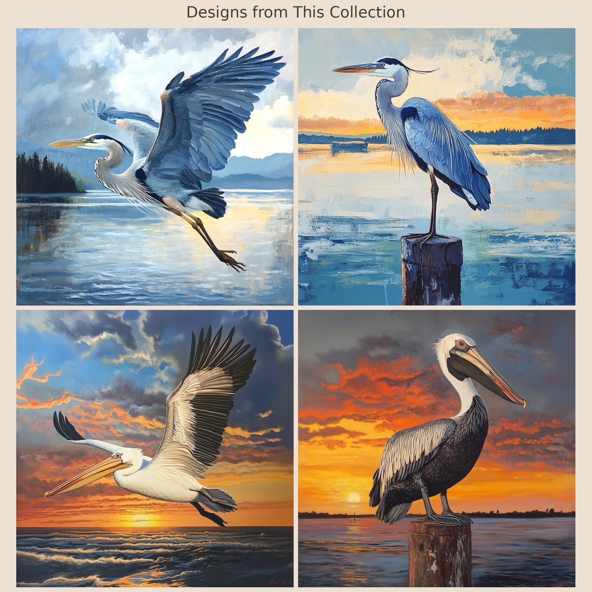 Bring the beauty of coastal wildlife indoors with this Great Blue Heron stained-glass inspired tile, a peaceful composition of sunset hues and ocean tones. The warm amber light of the setting sun contrasts beautifully with the heron’s cool blue feathers, creating a glowing piece of beach-style wall decor that radiates serenity.