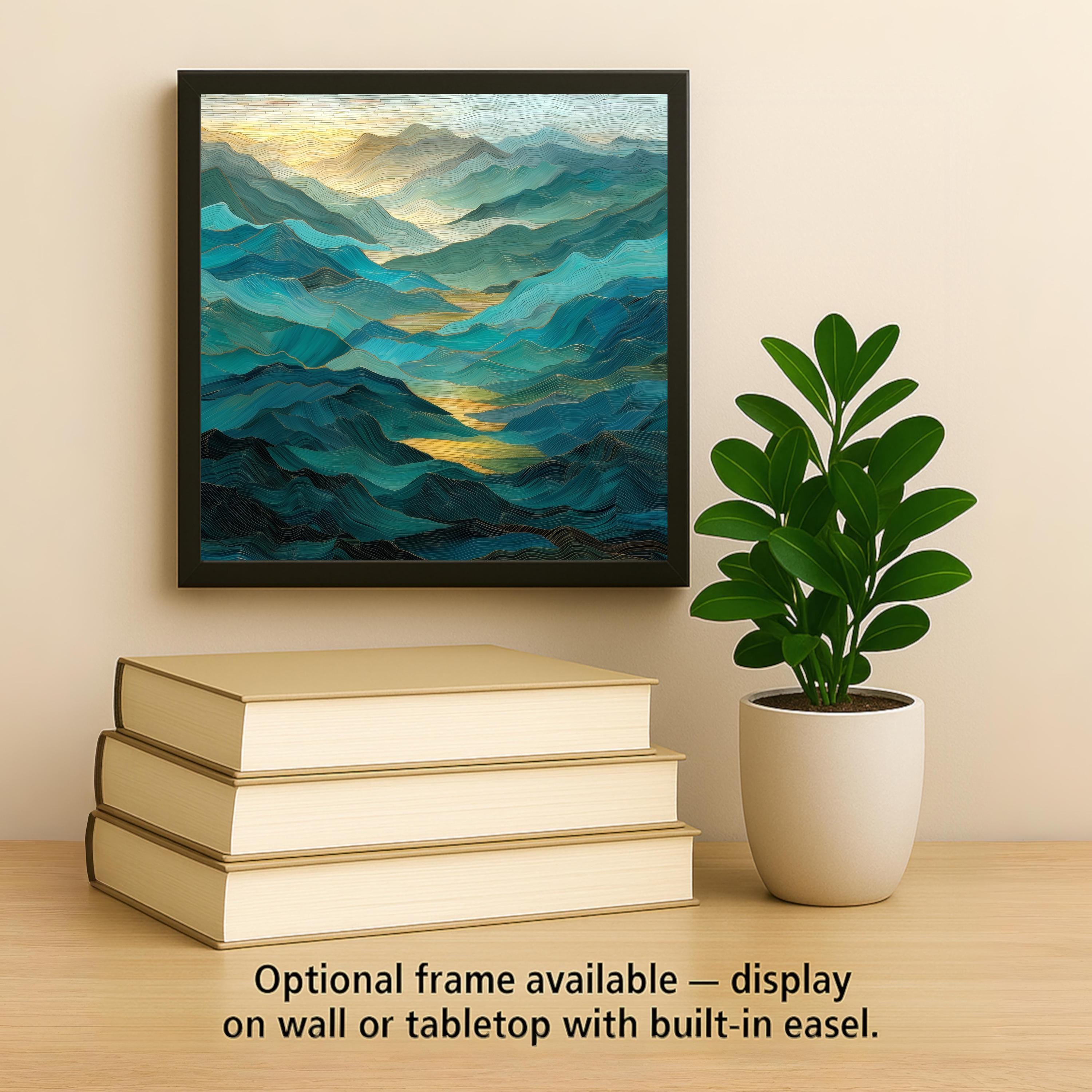 Display options include an easel tile stand, a tile wall hanger, or cork backing for flat display. For a finished, gallery-ready look, select the premium frame option — perfect for both wall and tabletop use.