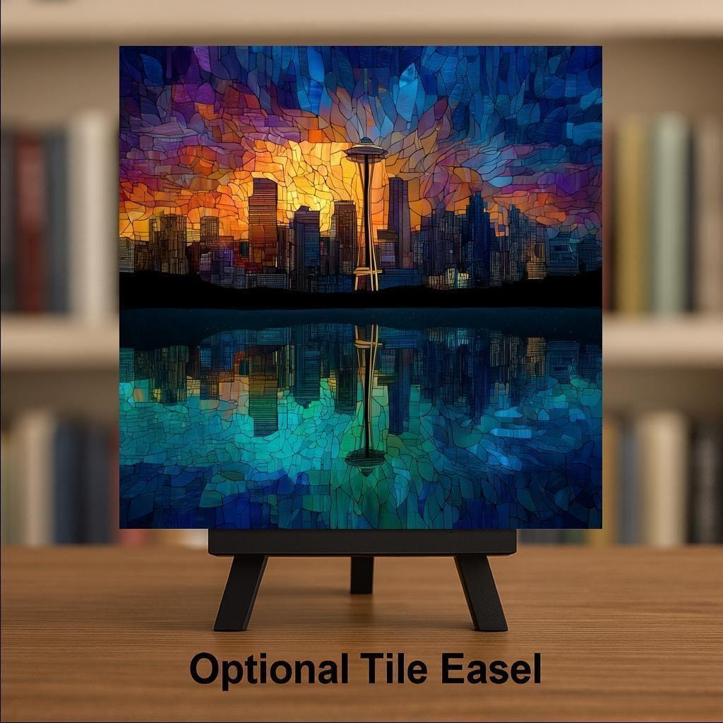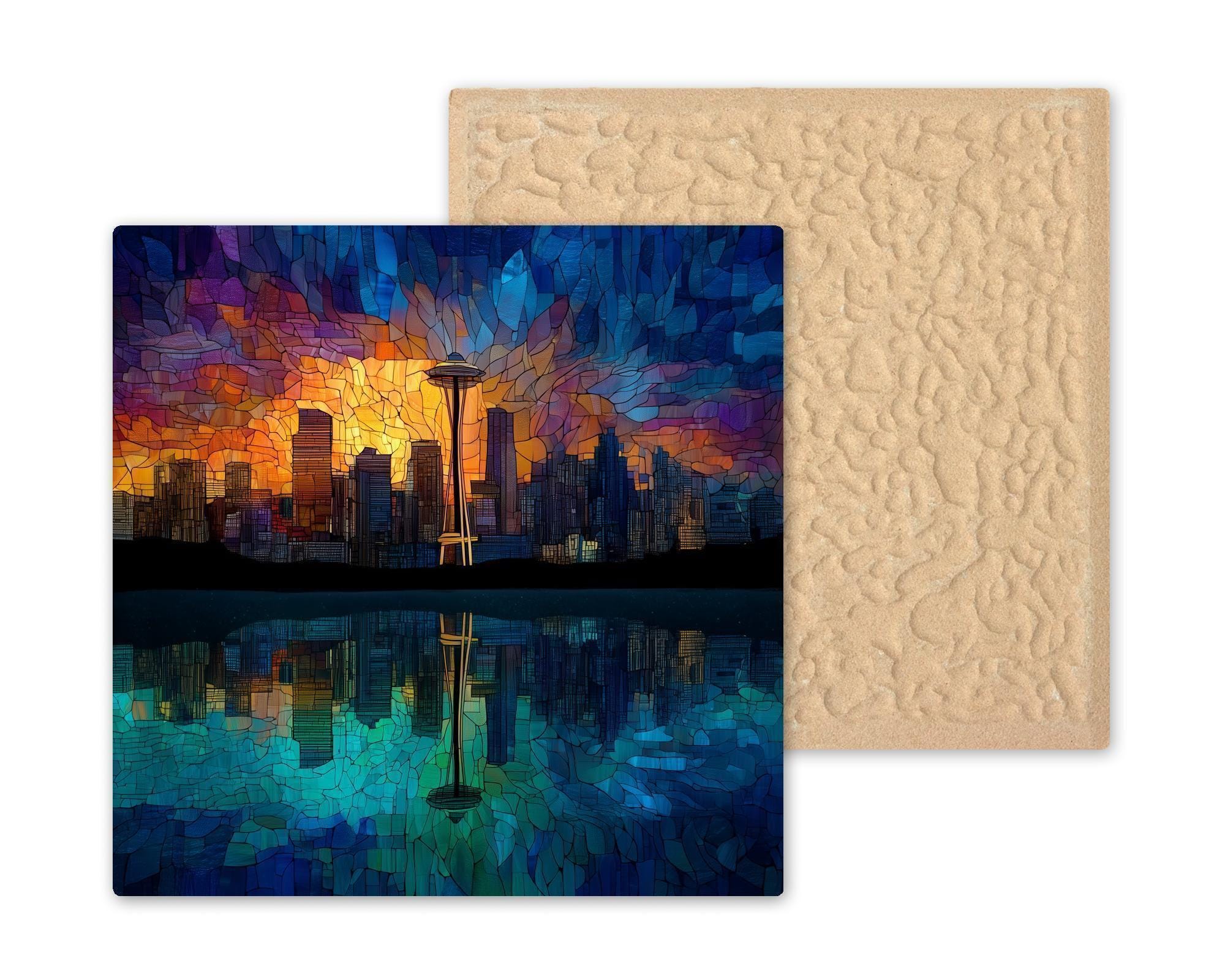 A thoughtful gift for city lovers, travelers, or anyone who appreciates skyline artwork, this Seattle stained glass-style tile captures the essence of the Pacific Northwest in every detail.