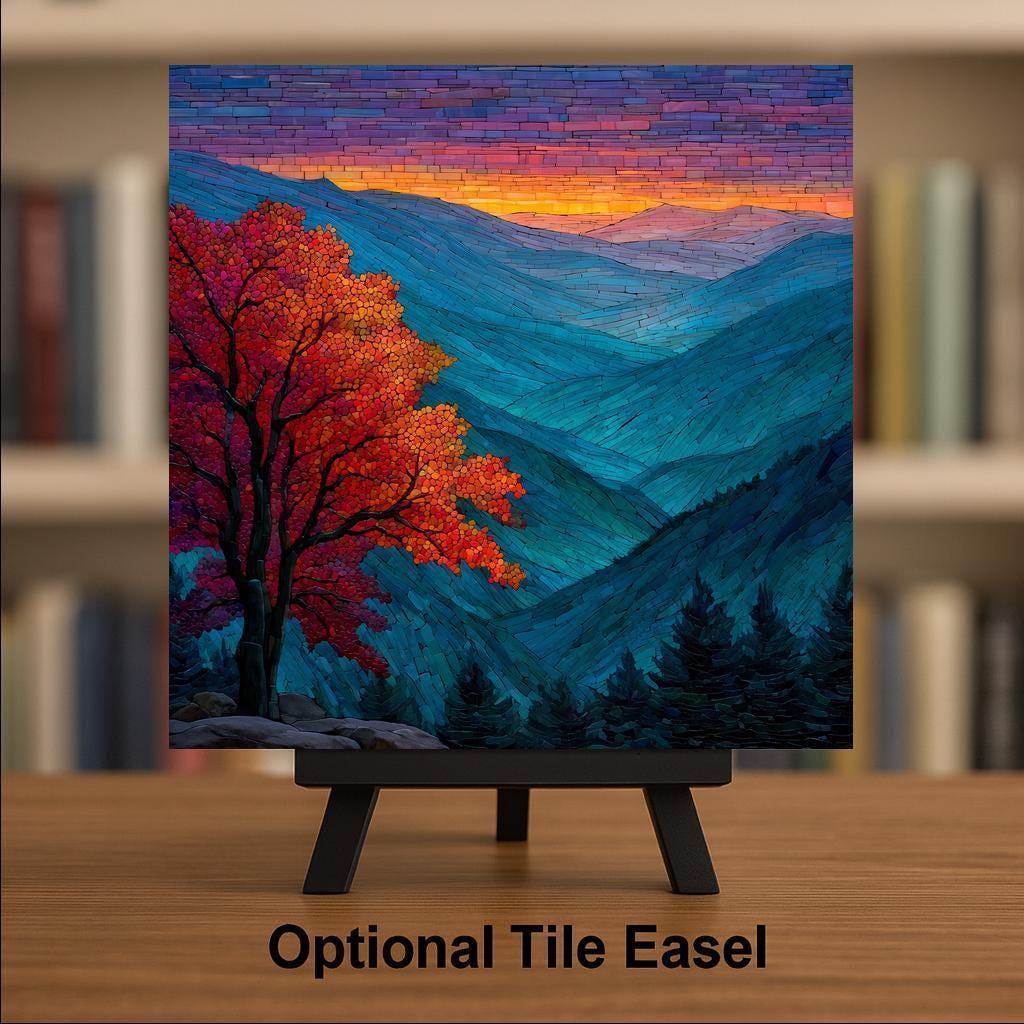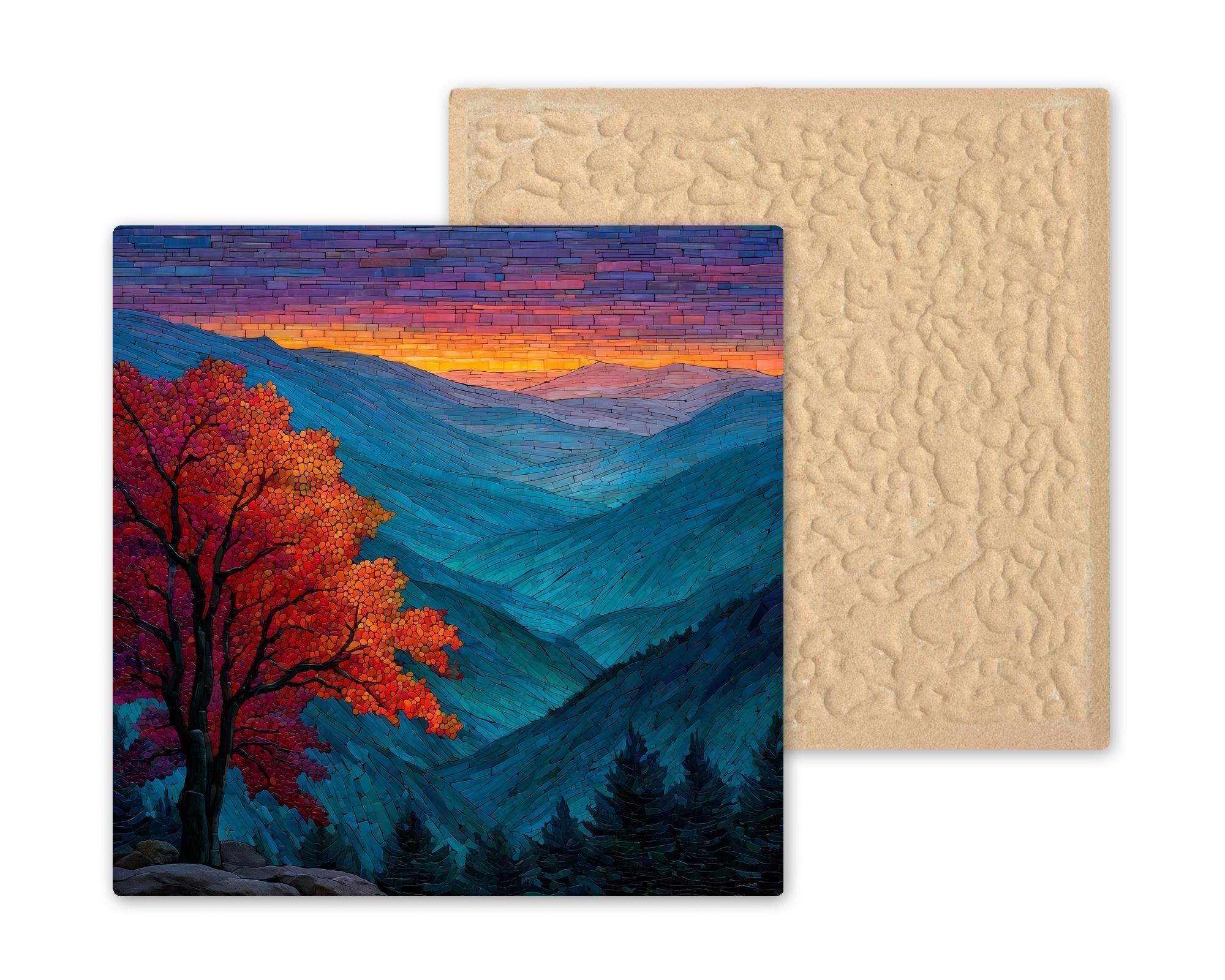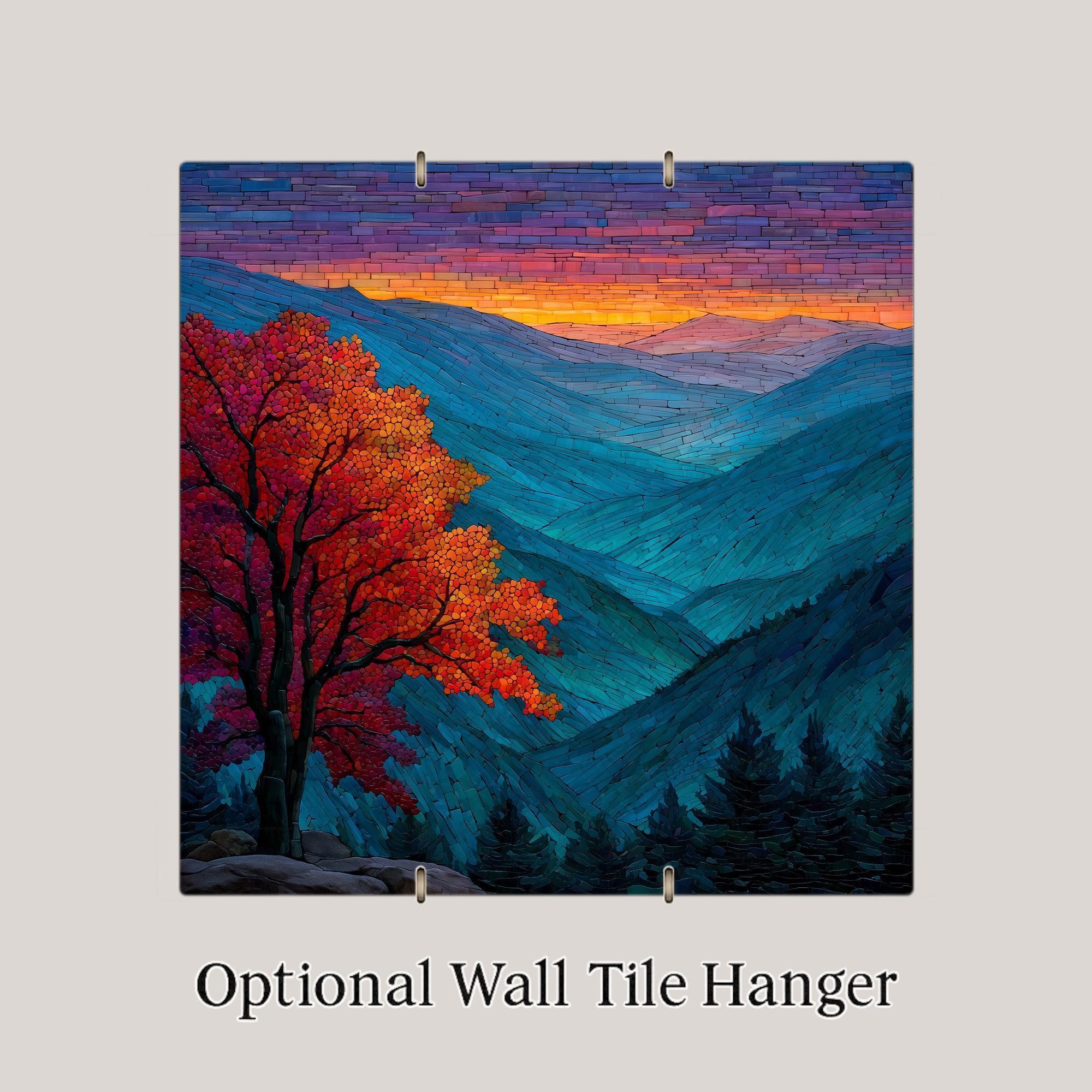 This Smoky Mountains autumn sunset tile art is a captivating home decor gift for those who cherish the outdoors and the peaceful grandeur of mountain life.