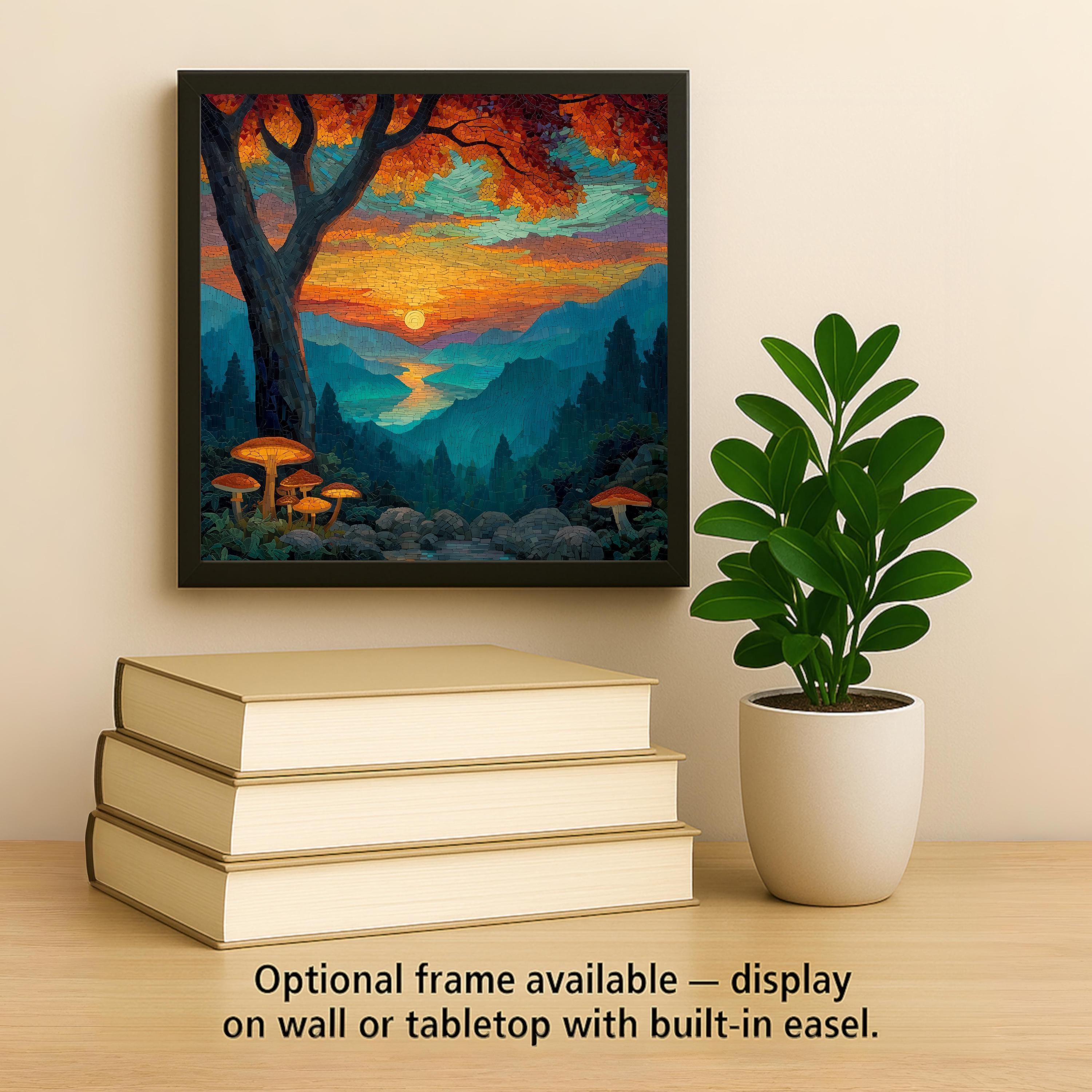 Display your piece your way — use a tile wall hanger, easel stand, or cork backing. The premium frame option provides a refined, gallery-quality look for wall or tabletop use.