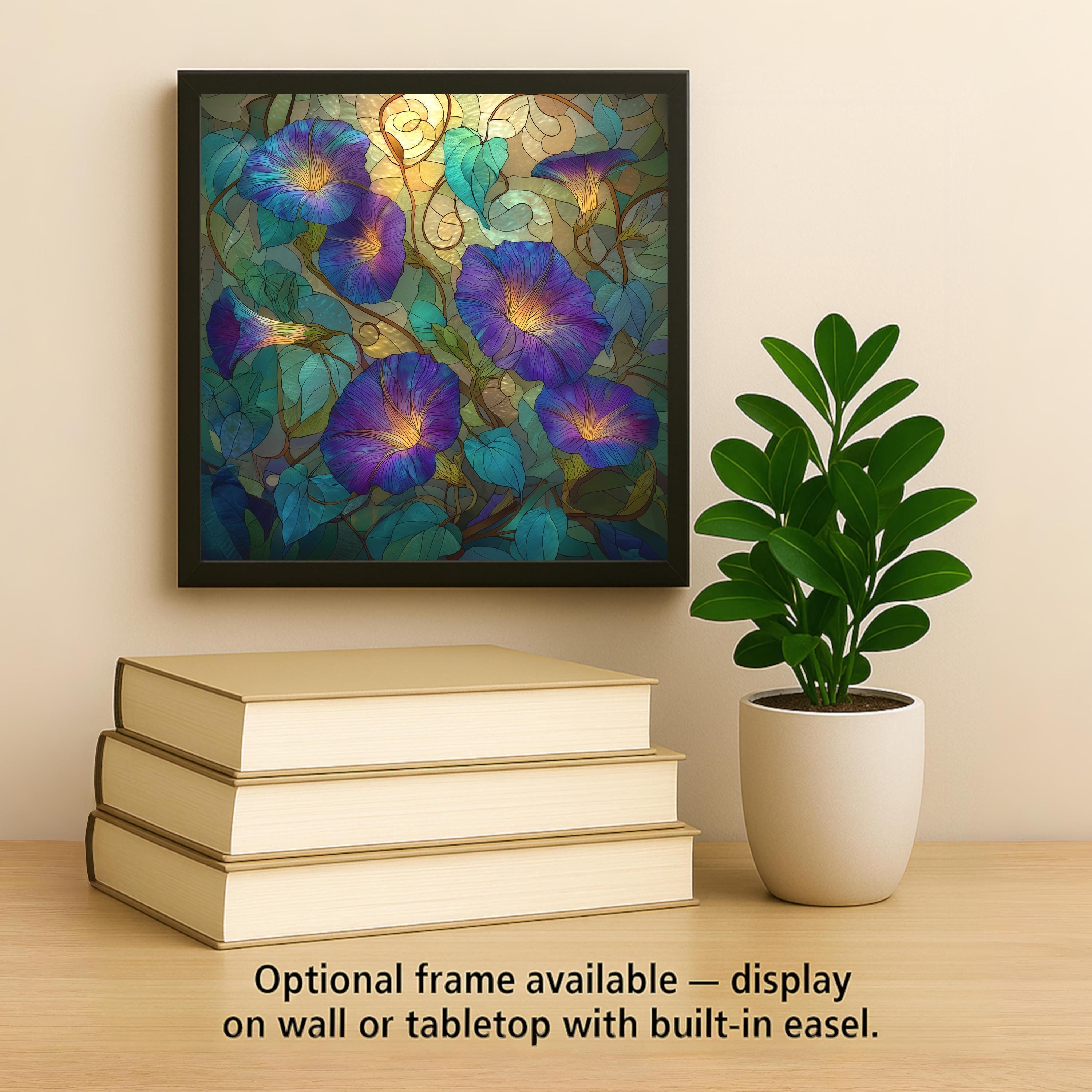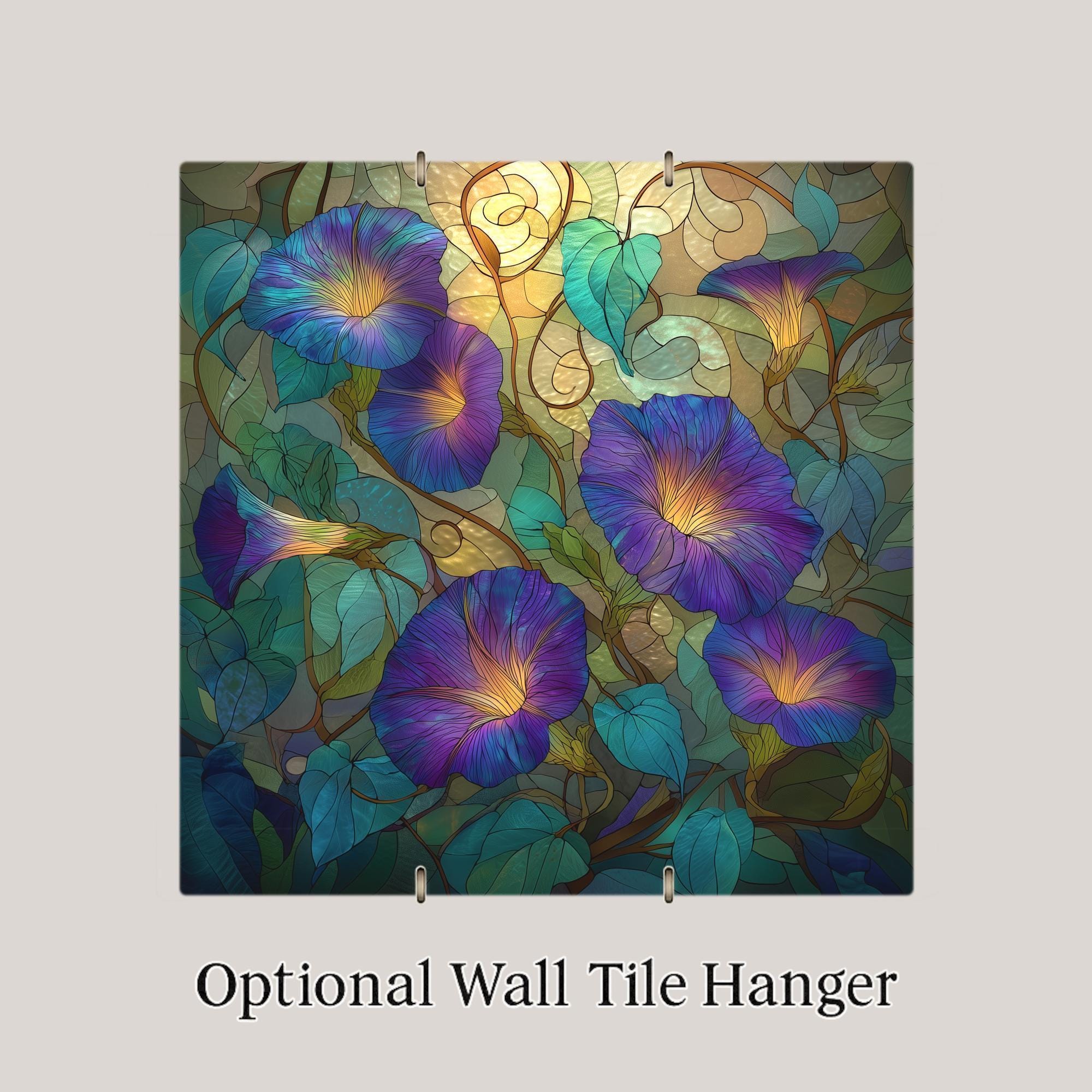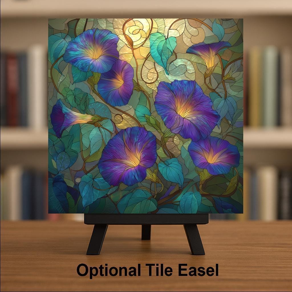 Customize your display with an optional tile wall hanger, tile stand, or cork backing, or upgrade to our premium frame for an elegant, ready-to-display presentation. Whether used as a wall accent or centerpiece, this Morning Glory tile adds both artistry and serenity to your space.