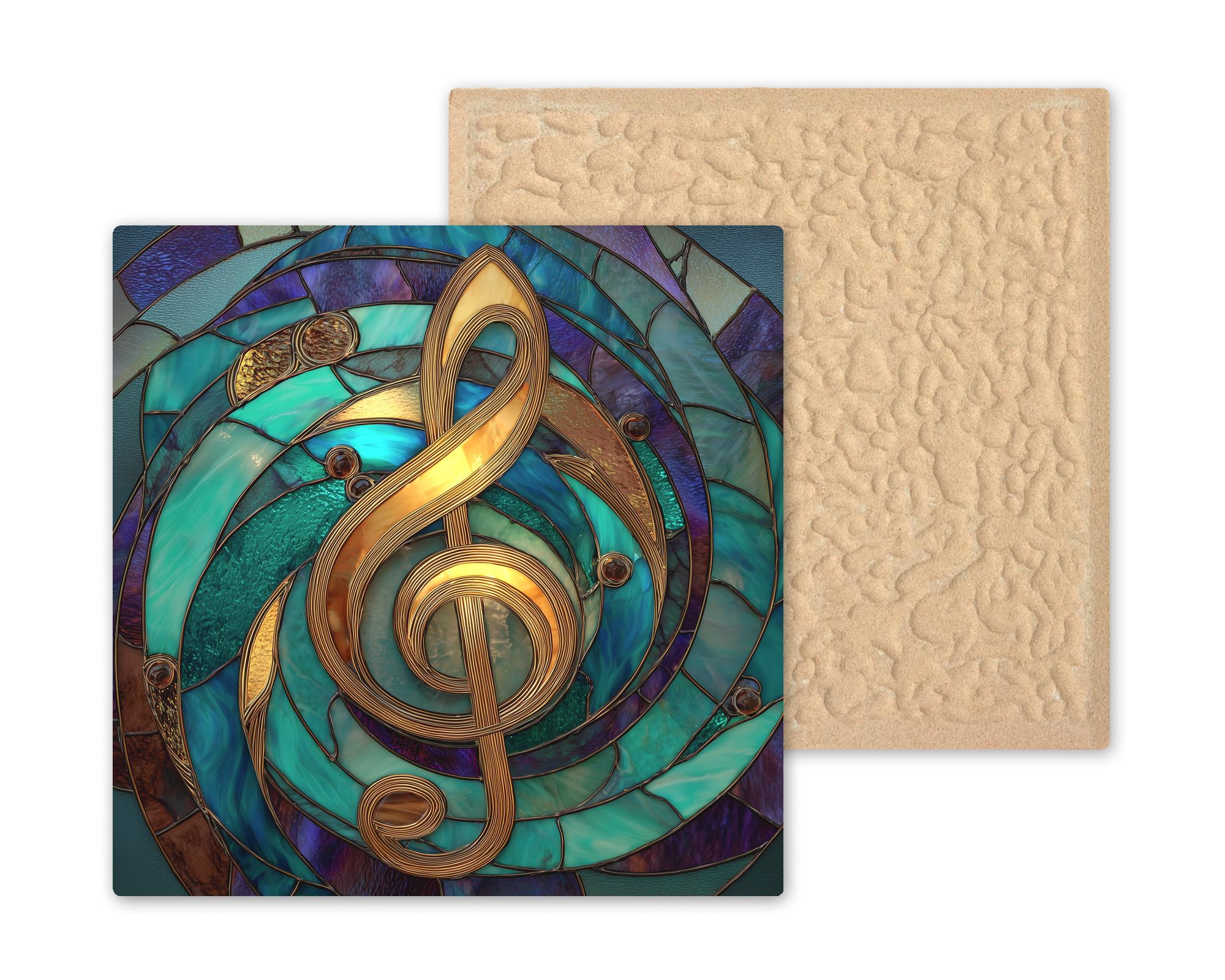 Add melody and sophistication to your home decor with this Treble Clef ceramic tile wall art in an Art Nouveau stained glass style. The design’s golden lines and jewel-toned blues swirl together like a symphony, reflecting the harmony of music and visual beauty. It’s a timeless accent that complements both modern and classical interiors.