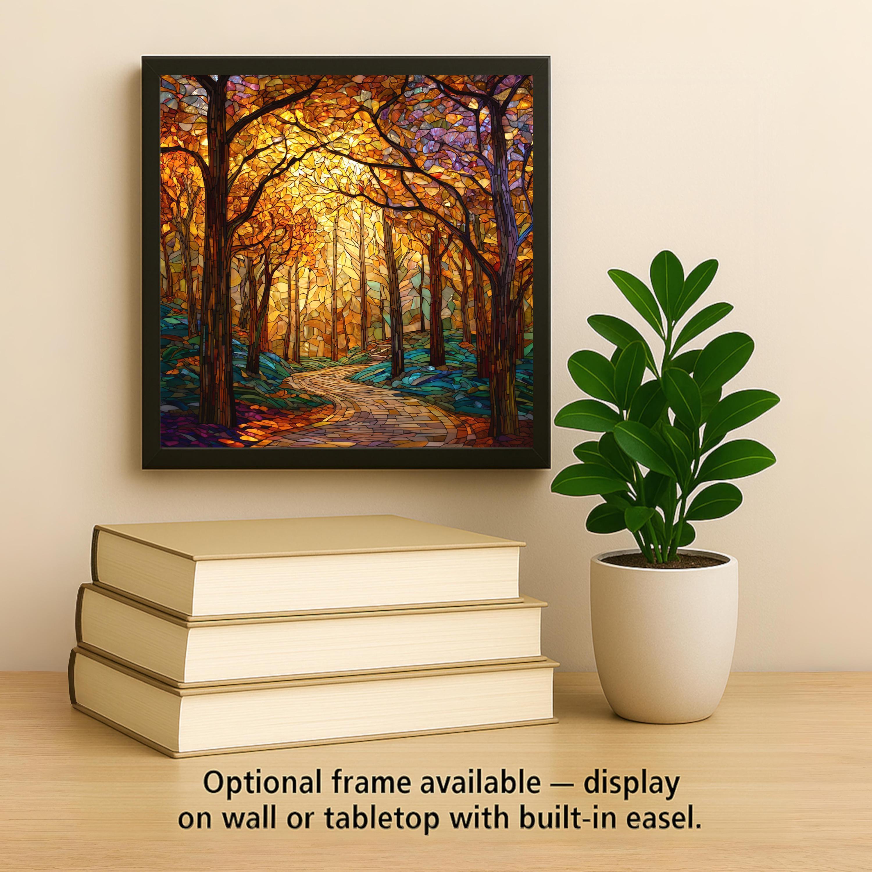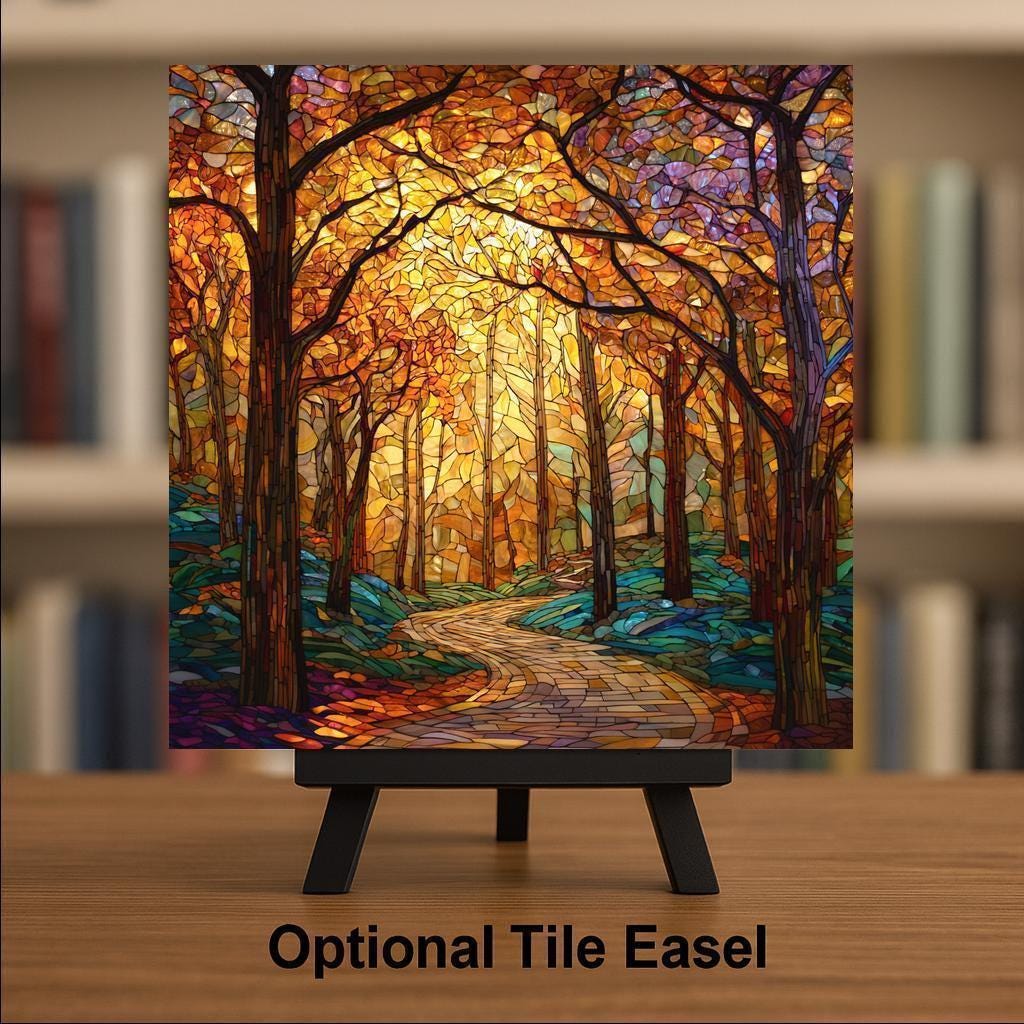 Display it using a tile wall hanger, easel tile stand, cork backing, or a premium frame for wall or tabletop display. Whether given as a fall gift or displayed as part of your seasonal collection, this forest wall art captures the essence of autumn’s calm and creativity.