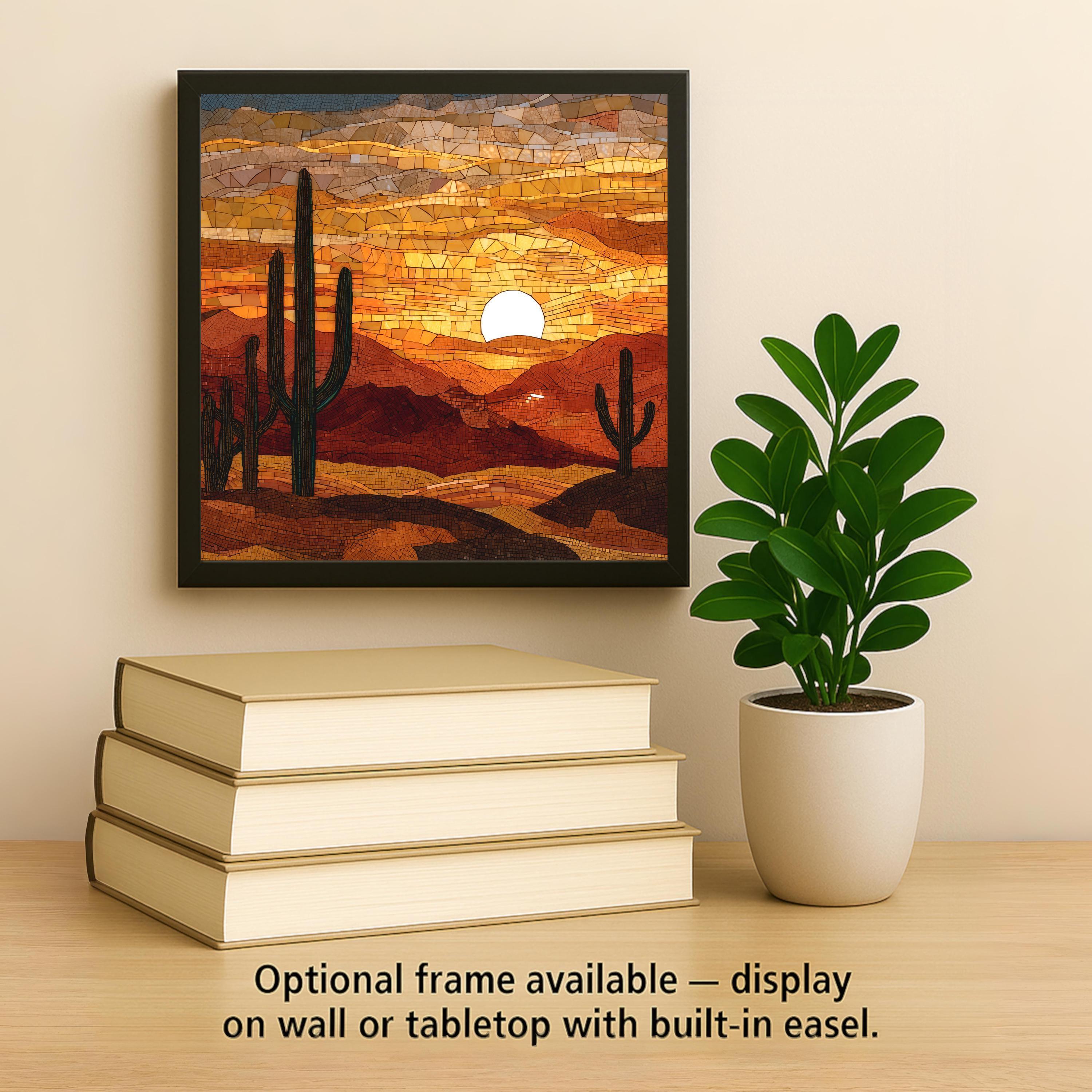 Display options include a tile wall hanger, easel tile stand, cork backing, or premium frame for both wall and tabletop use. A thoughtful gift for hikers, travelers, or desert enthusiasts, this sunset wall art transforms any room into a serene retreat inspired by nature’s glow.