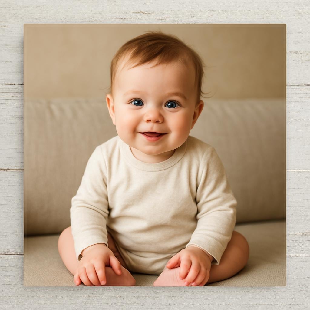 Upload a clear, high-resolution image — family photos, pets, babies, wedding portraits, or even cherished travel memories all print wonderfully. If your image isn’t a perfect square, we’ll crop it for you and include a small border bleed (extra space around the edges) so nothing important is trimmed off.