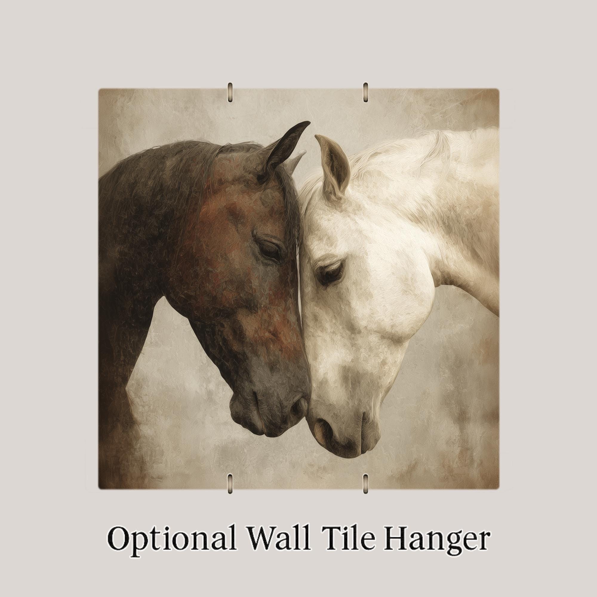 Whether adorning a rustic lodge, cozy farmhouse, or modern country home, this Brown and White Horses art tile adds a meaningful touch of love and harmony to your decor.