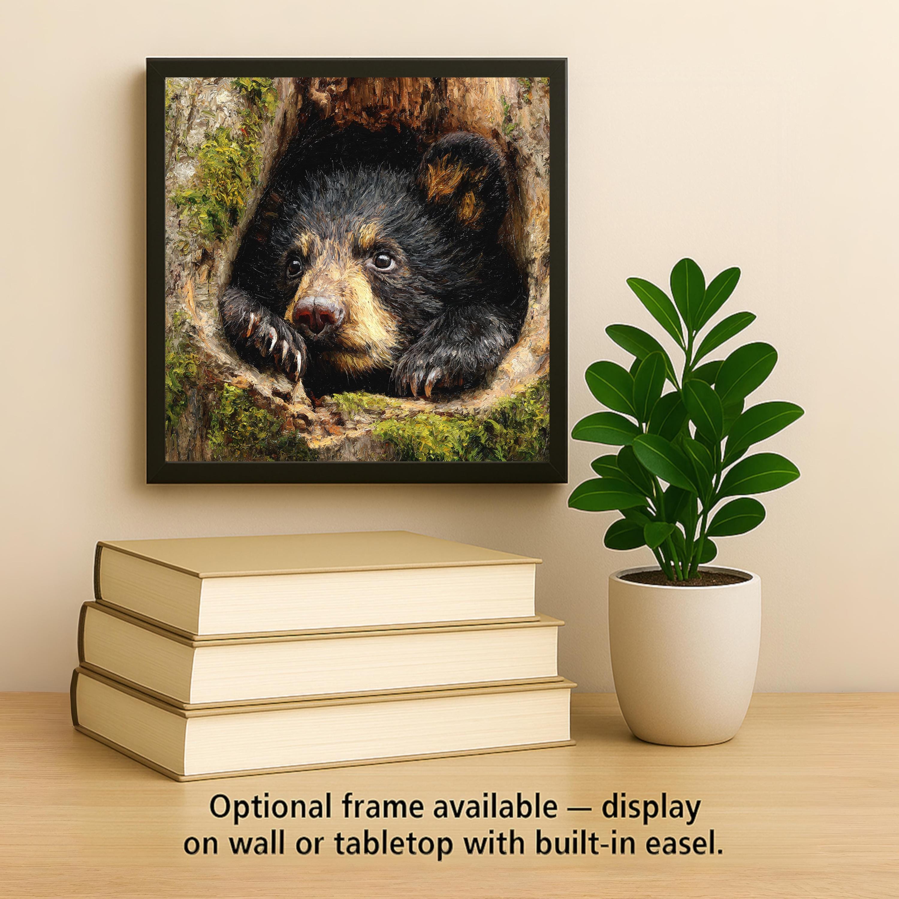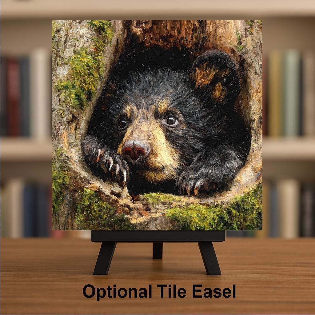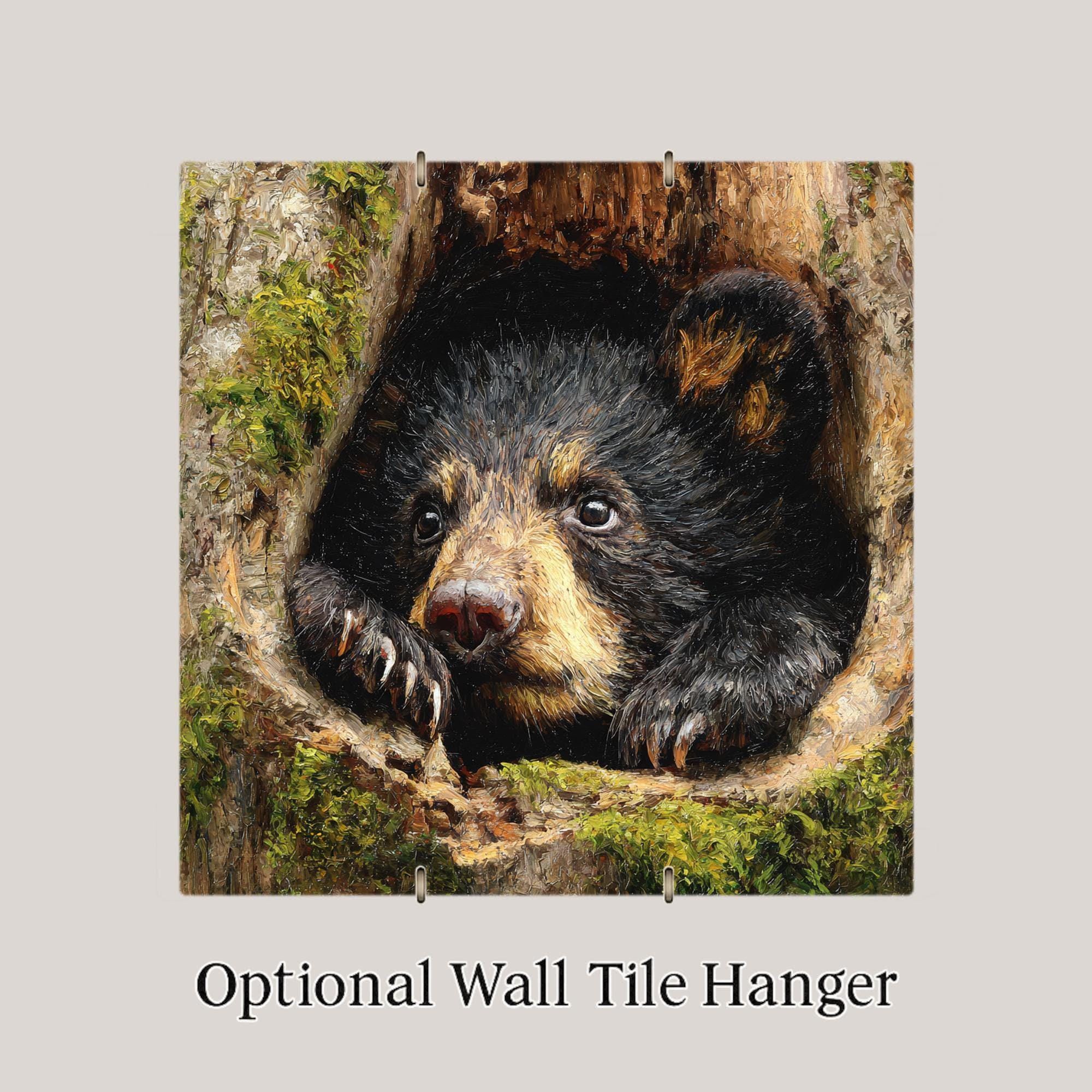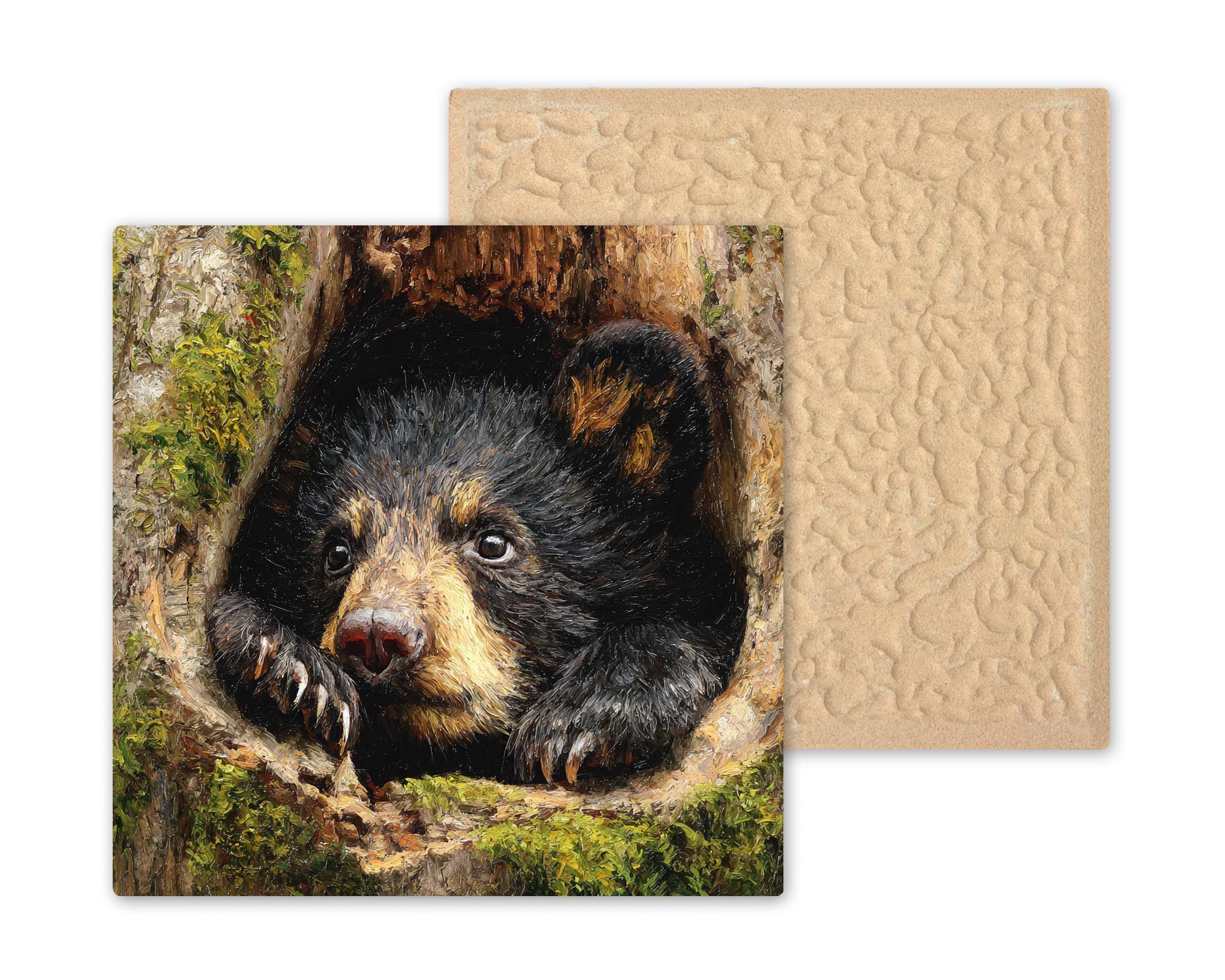 This ceramic tile features a precious black bear cub peeking out from a hollow tree, making it a perfect choice for rustic home decor and woodland wall art. The design captures soft details, warm textures, and natural light, creating a relaxing and inviting atmosphere. It works well in cabin decor, farmhouse settings, and nature-inspired rooms. The gentle expression of the baby bear adds a sense of peace and curiosity that draws attention. The tile fits beautifully in bedrooms, hallways, kitchens, bathrooms, and small cozy corners. The earthy tones blend well with wood, greenery, and outdoor-themed decorations. Because the artwork is permanently printed onto ceramic, it will not fade and remains vivid over time. It is durable, low-maintenance, and simple to clean, making it ideal for everyday use. This tile also makes a meaningful gift for animal enthusiasts, hikers, campers, and nature lovers.