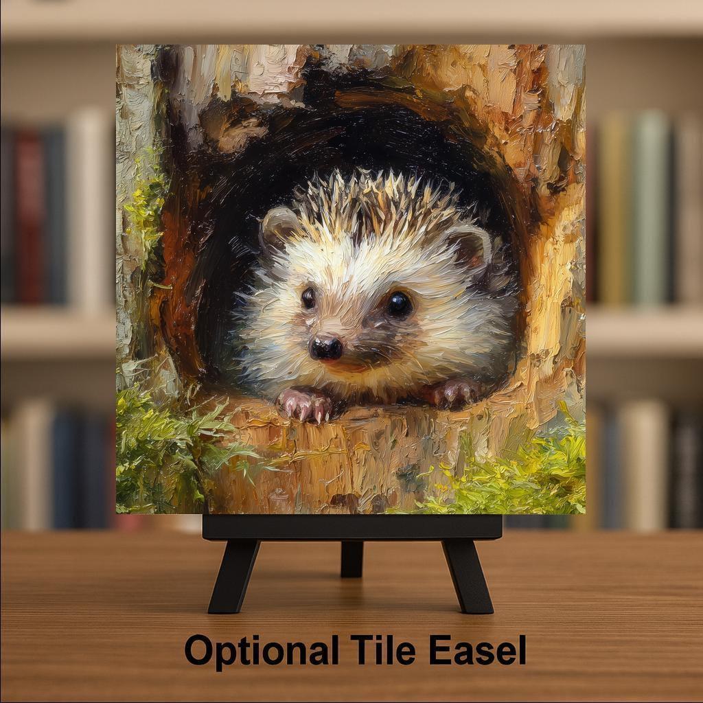 The tile is easy to display, and you can select optional upgrades like a tile wall hanger, easel tile stand, cork backing, or our premium frame. The premium frame works for wall decor or tabletop display, giving you flexibility to match your space. This tile also makes a thoughtful gift for birthdays, anniversaries, holidays, or as a surprise for an animal lover. Hedgehogs are symbolic of protection and curiosity, making this piece especially meaningful. It’s a charming accent tile that stands out whether placed alone or as part of a larger gallery wall.