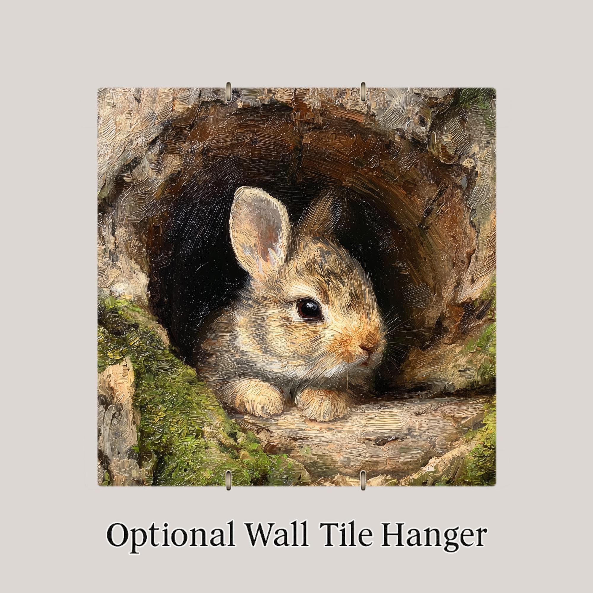 This tile is a great fit for bedrooms, living rooms, hallways, entryways, nursery spaces, offices, and seasonal displays. It also makes a thoughtful gift for rabbit lovers, wildlife fans, cottagecore collectors, or anyone who enjoys calm and nature-themed home decor. Because of its warm and comforting appearance, it works well as an accent piece or part of a larger nature-themed gallery wall.