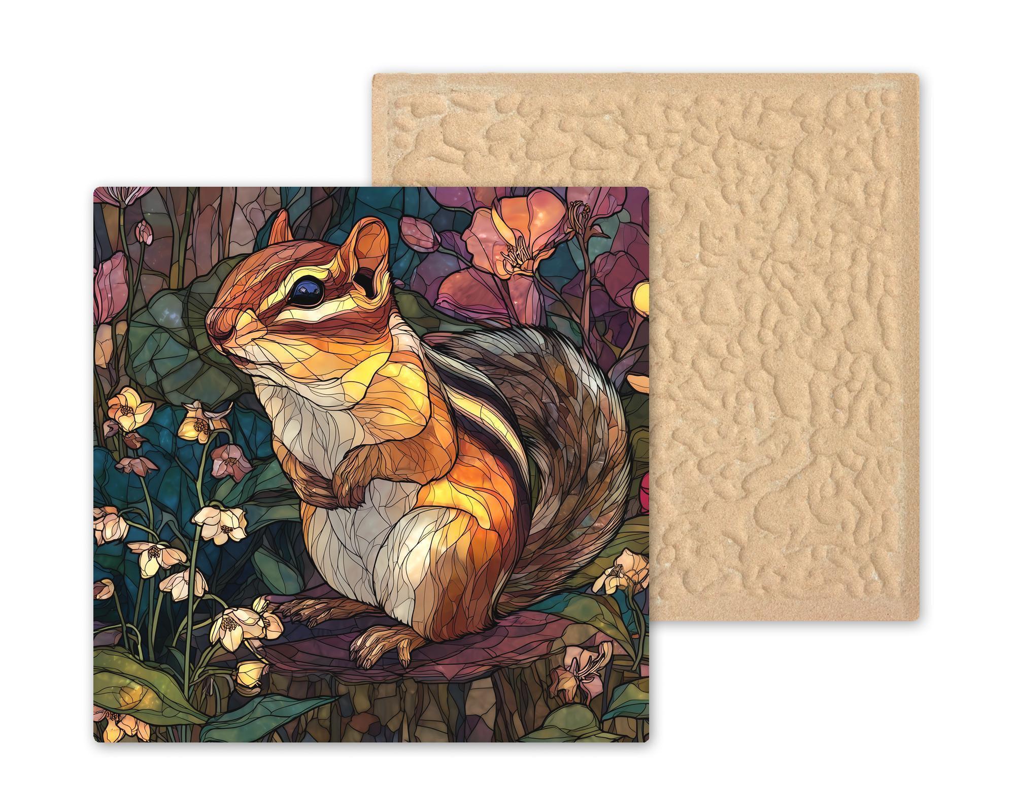 This chipmunk tile is an excellent gift for wildlife enthusiasts, nature lovers, collectors of forest animal art, cabin owners, or anyone who enjoys warm, decorative woodland scenes. Its glowing stained-glass effect adds depth and charm to any home.