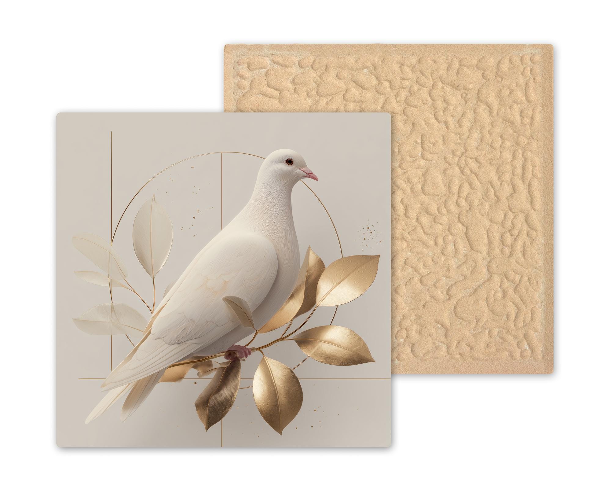 This White Dove Ceramic Tile Wall Art is designed for those who appreciate quiet beauty, modern styling, and meaningful symbolism. The gentle tones and gold-leaf details give the artwork an elevated feel, creating the perfect blend of contemporary design and spiritual symbolism. Doves represent peace, hope, new beginnings, and comfort, making this tile a thoughtful choice for memorial spaces, prayer rooms, meditation corners, or any place where you want a sense of calm and clarity.