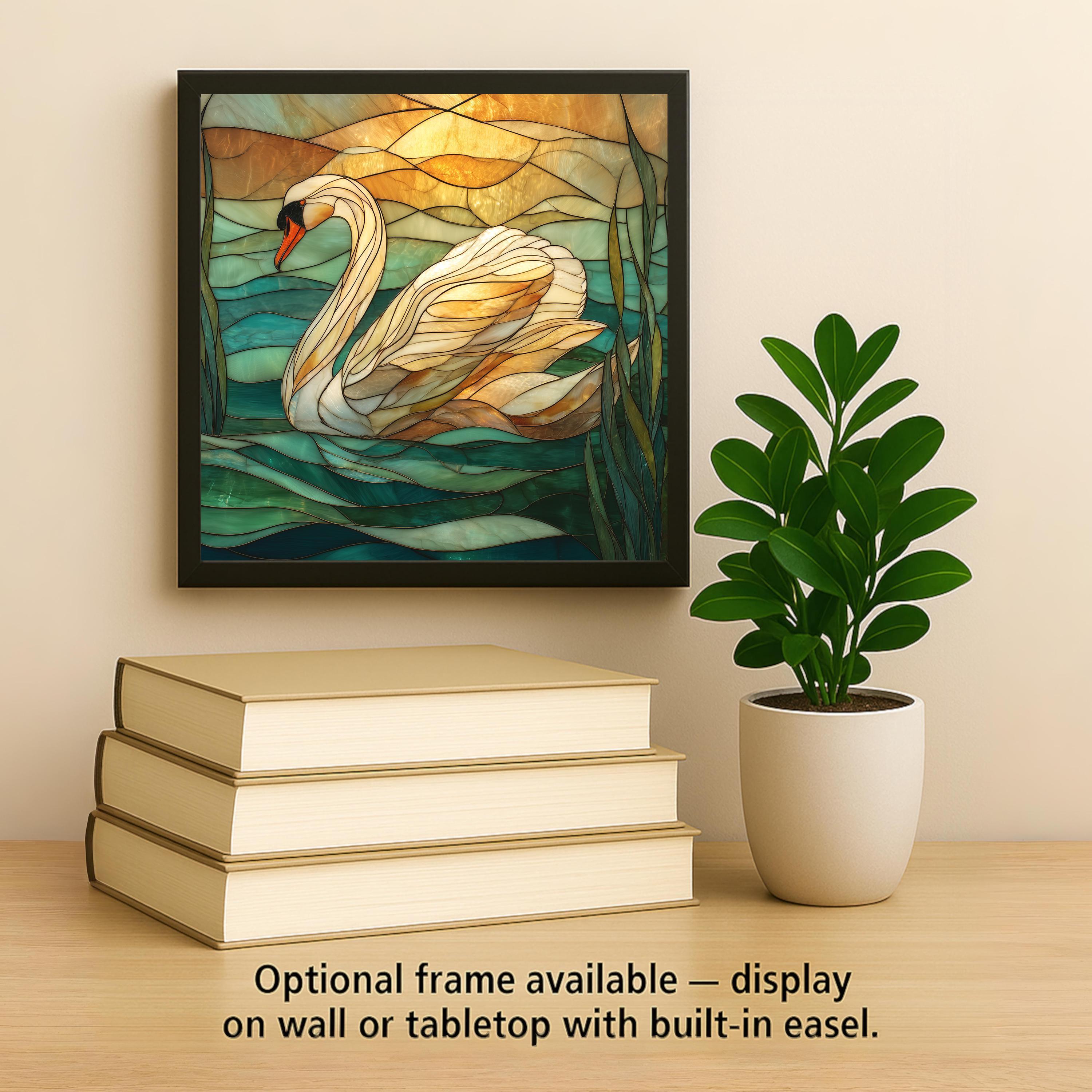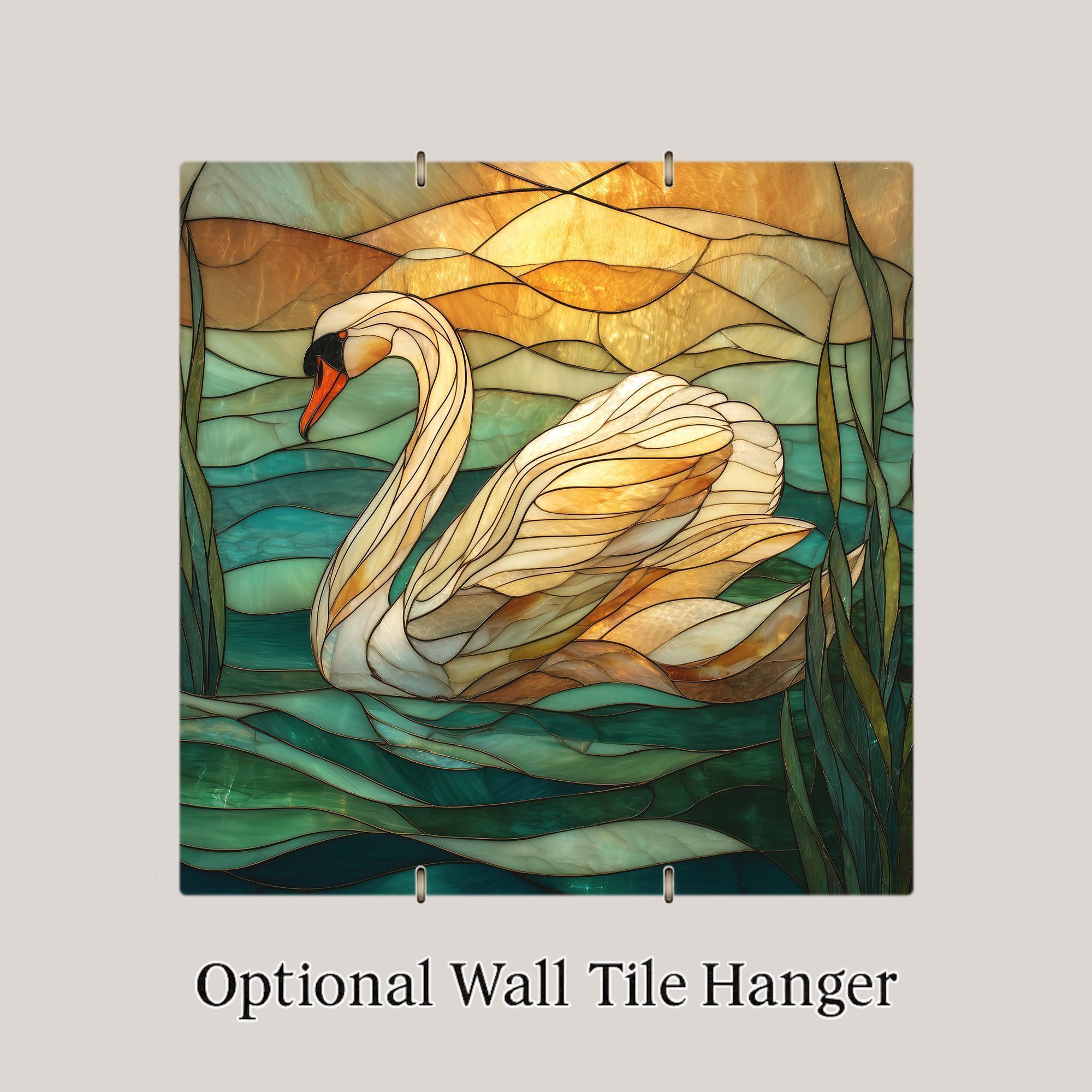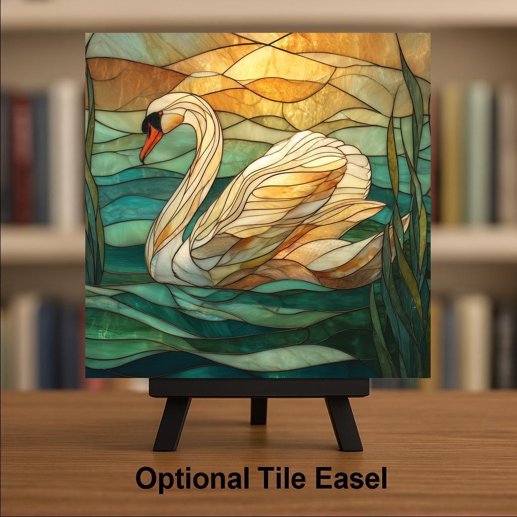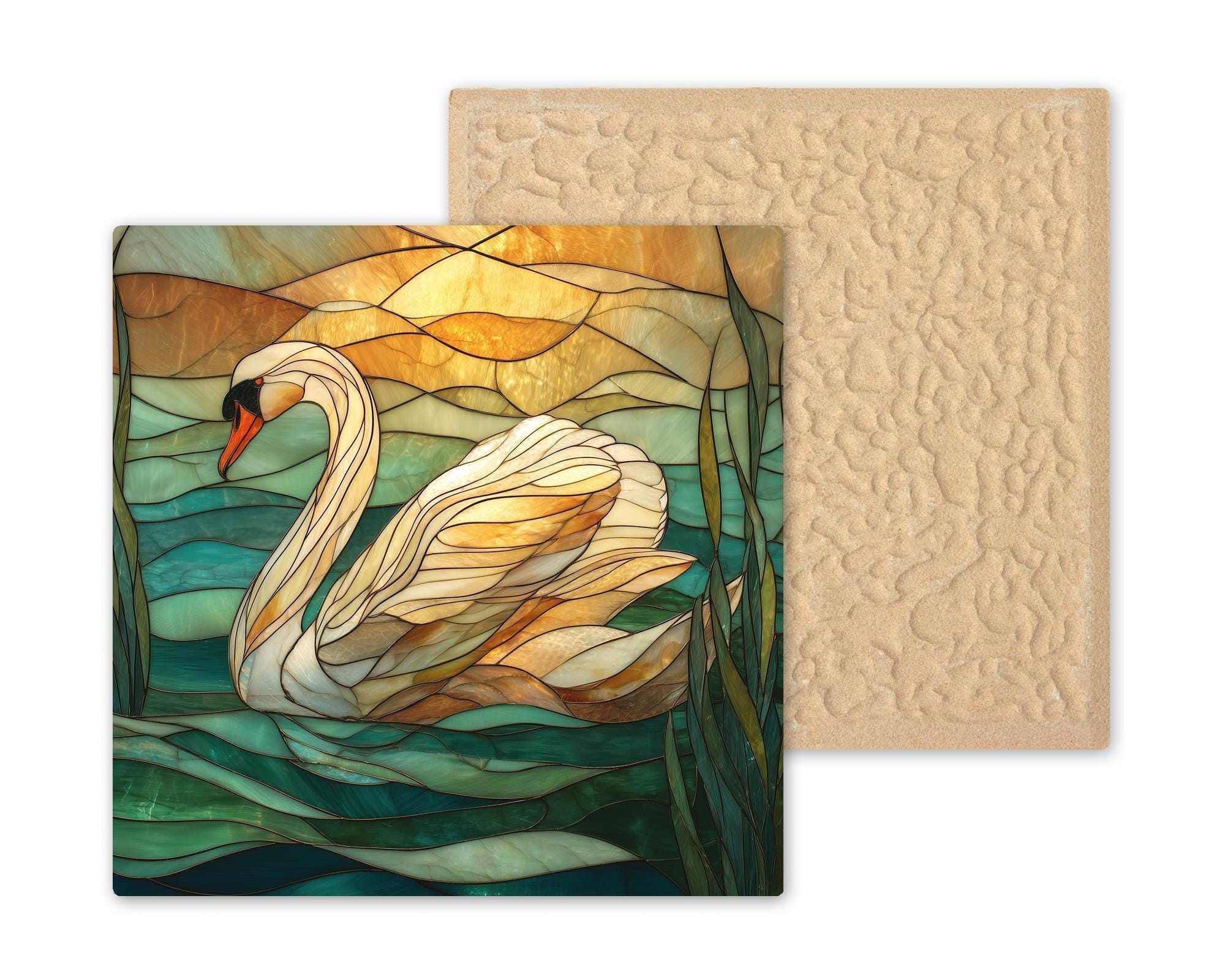 This swan tile pairs well with beach decor, sunset palettes, nature art, and serene home decor themes. It also makes a meaningful gift for anyone who enjoys peaceful artwork, elegant colors, and nature-inspired designs. Please note: although the artwork looks like stained glass or mosaic, it is a printed ceramic tile, not actual stained glass or sculpted material.