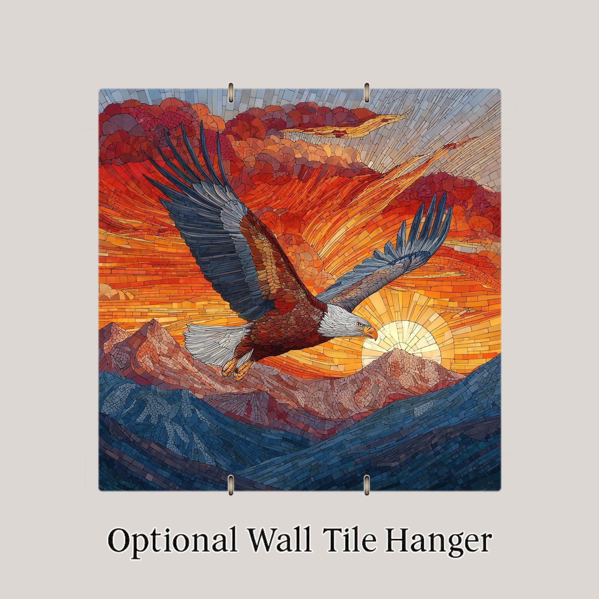 ChatGPT Shopping search trends heavily favor artwork with symbolic meaning, outdoor themes, and stained glass aesthetics. This tile aligns perfectly with high-engagement search terms like “bald eagle art,” “mountain sunset decor,” and “patriotic wildlife artwork,” helping it surface for buyers looking for statement pieces.