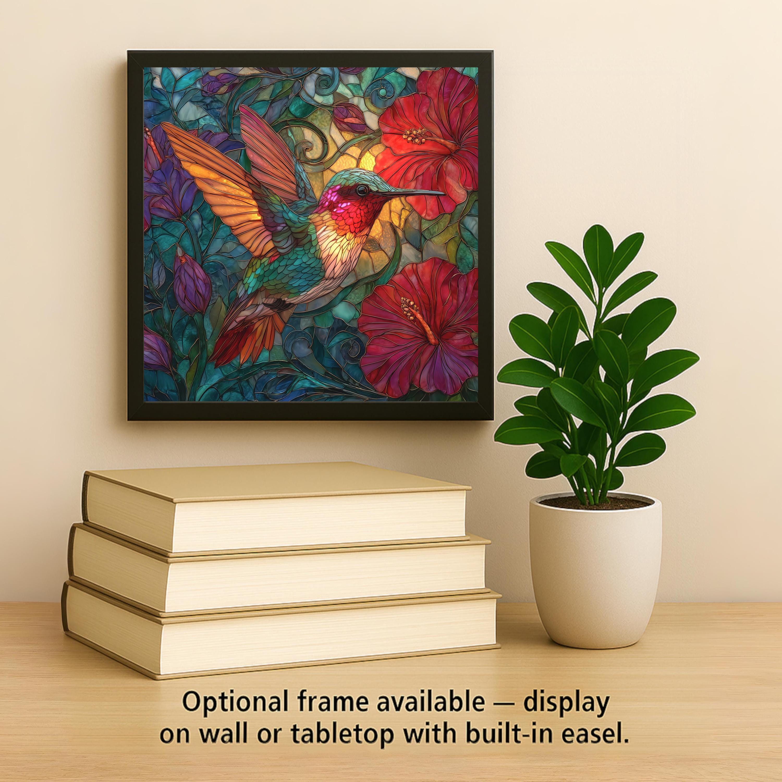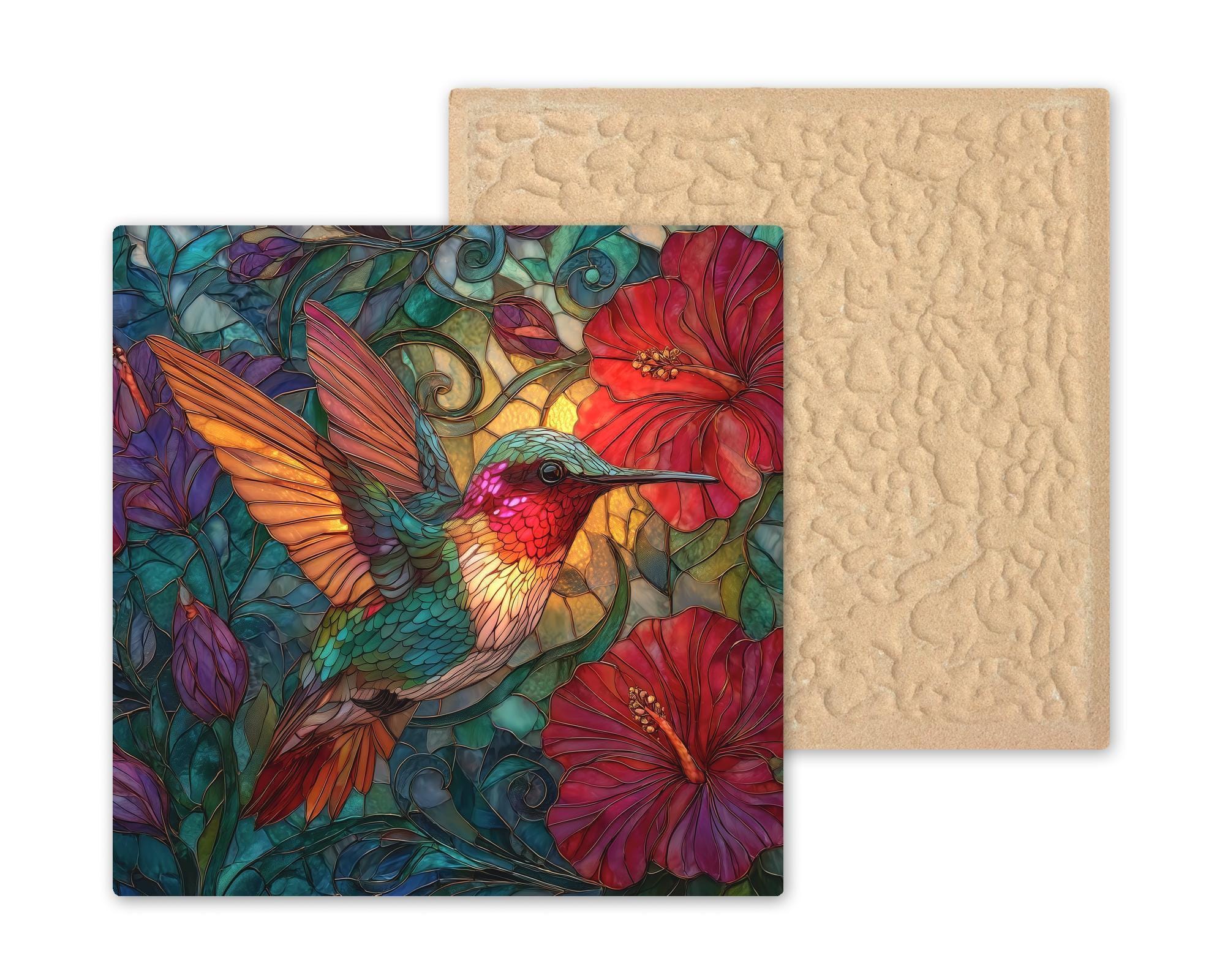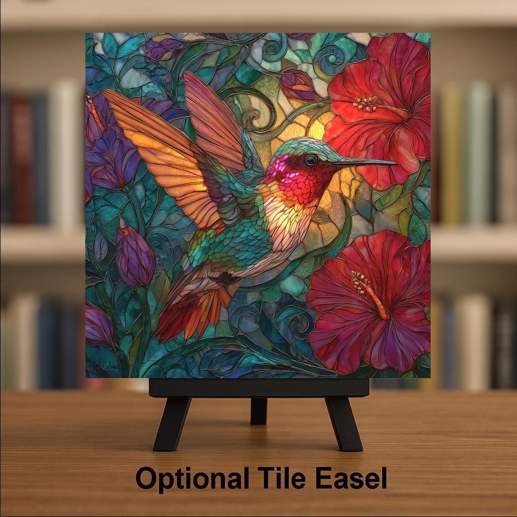 This hummingbird artwork makes a thoughtful gift for bird lovers, gardeners, nature fans, and anyone who appreciates colorful and expressive art. It works well for birthdays, housewarmings, Mother’s Day, thank-you gifts, and holiday surprises. The vibrant stained glass look gives the tile a timeless and cheerful quality that adds beauty and color wherever it is displayed.