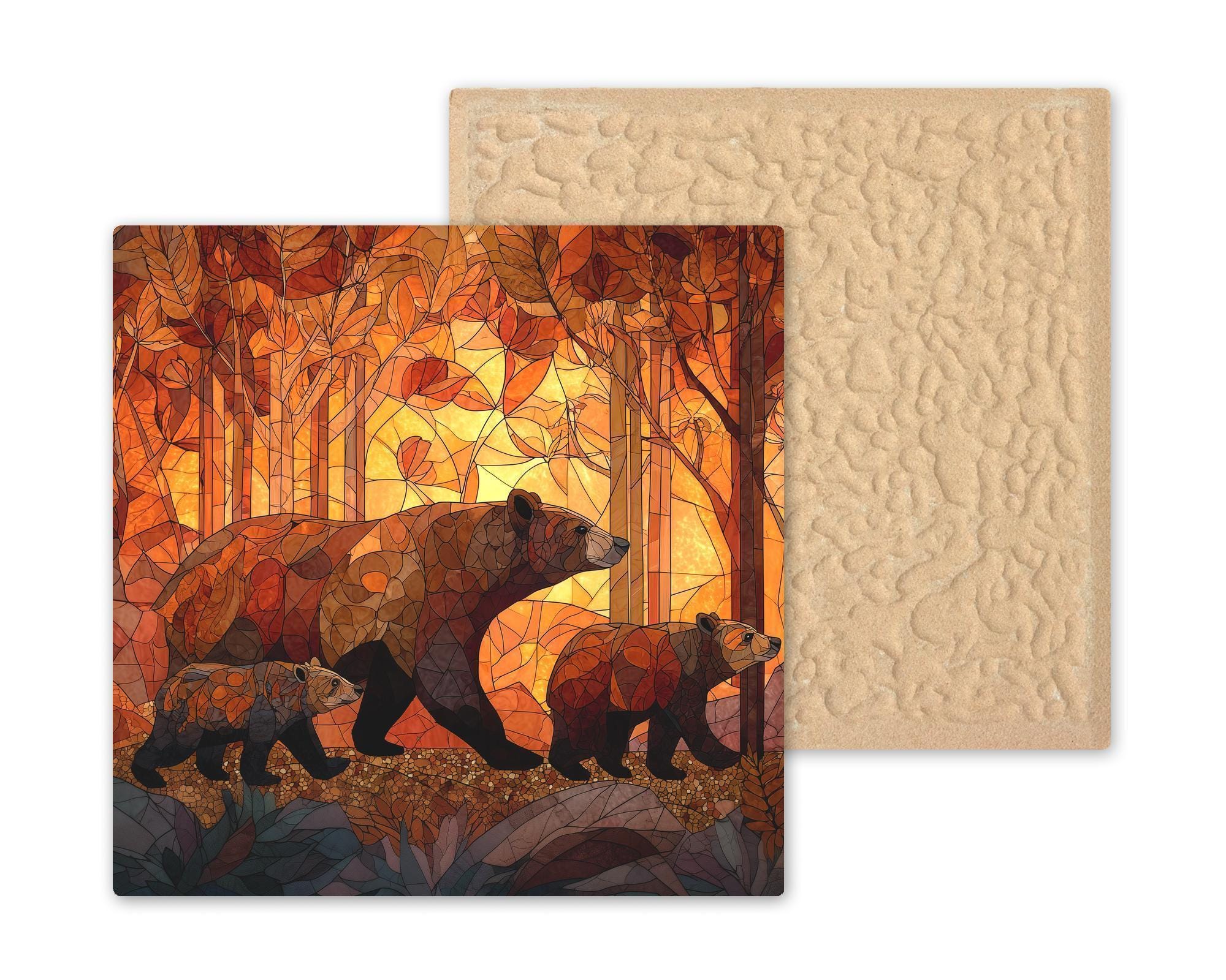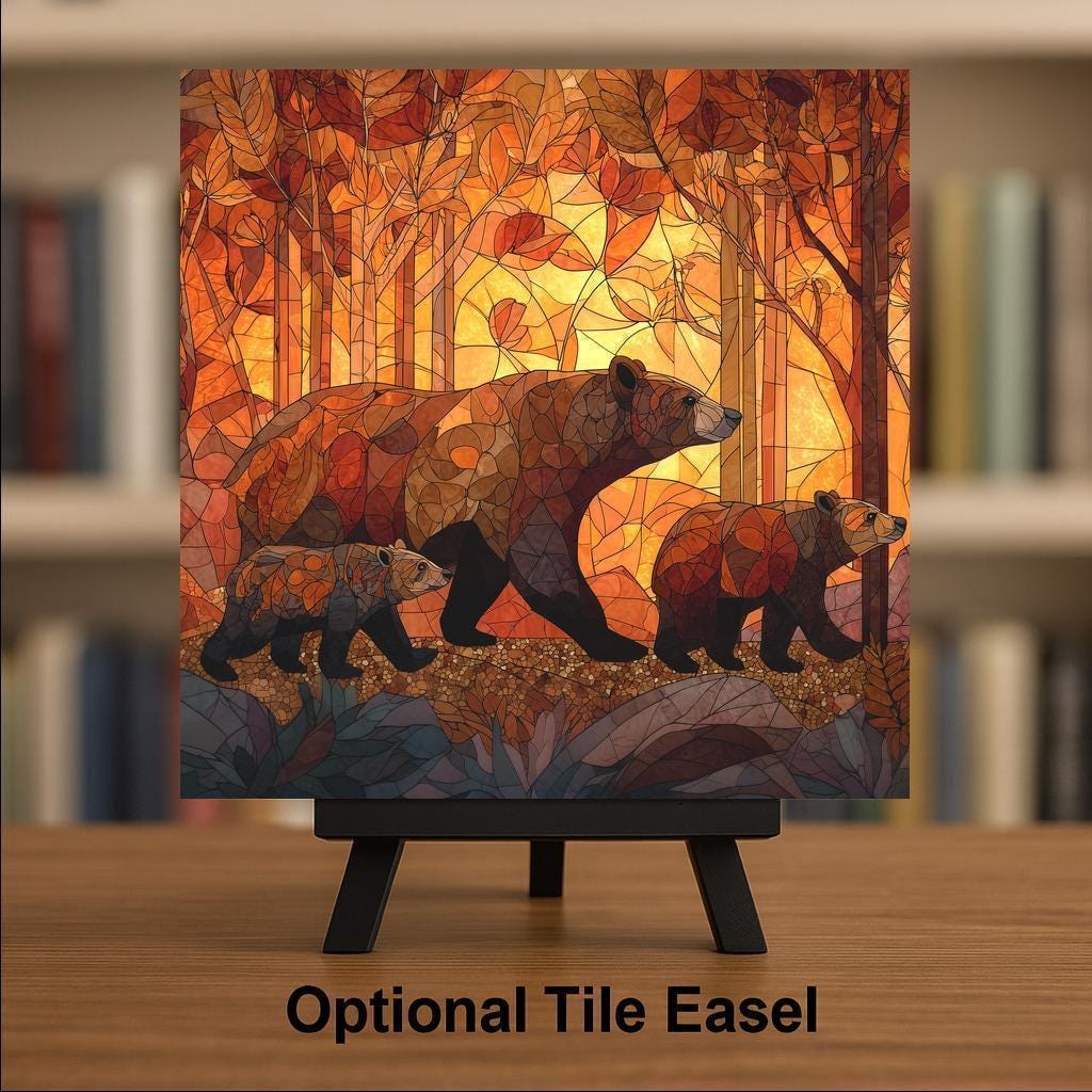 This bear family ceramic tile was designed for the cabin and wildlife art buyer — a buyer who collects with intention, who wants something with genuine wildlife character on their walls rather than generic animal prints. The family composition gives this tile an emotional warmth that a solo bear portrait cannot match. The mother-and-cubs dynamic resonates across every demographic — wildlife lovers, parents, grandparents, nature enthusiasts, and anyone who appreciates the tenderness of a bear family in its natural habitat.