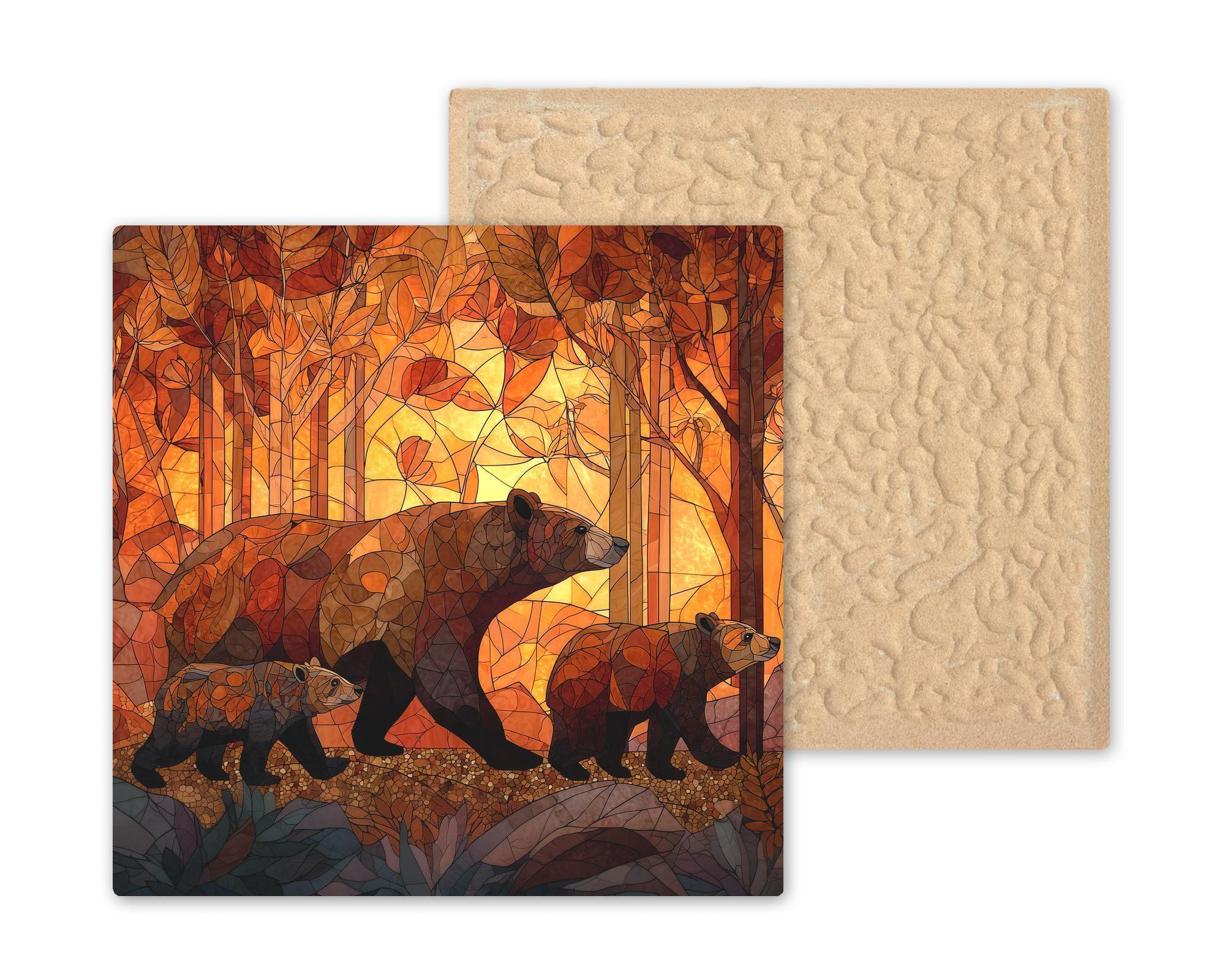 Celebrate the beauty of wildlife with this autumn bear family tile, crafted to give your home a warm, welcoming atmosphere. The softly glowing forest background makes the mother bear and cubs stand out with incredible color depth, giving the artwork a timeless and comforting feel. This piece makes a standout gift for cabin owners, outdoor enthusiasts, and collectors of nature-inspired art.