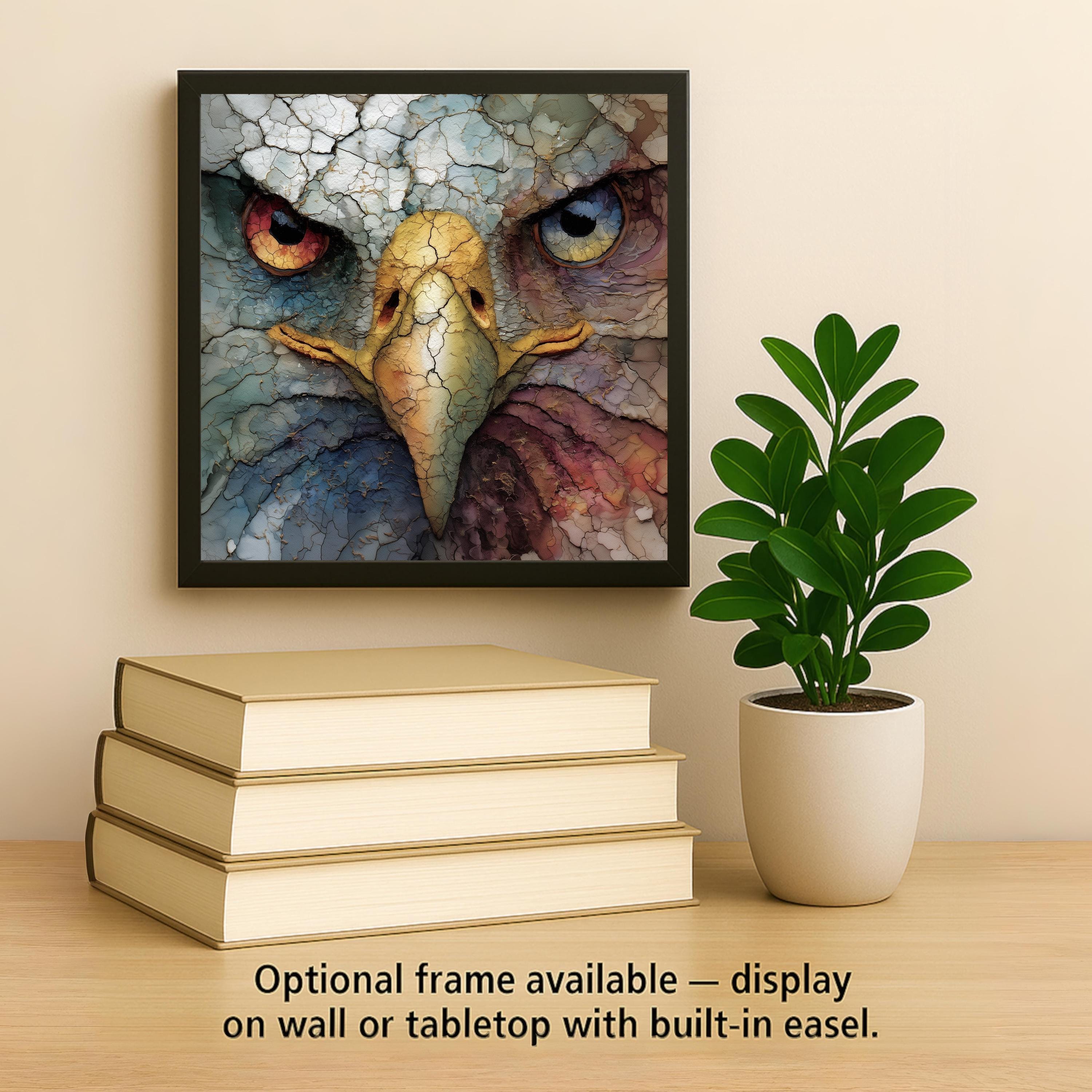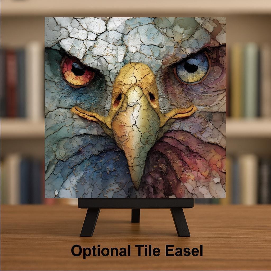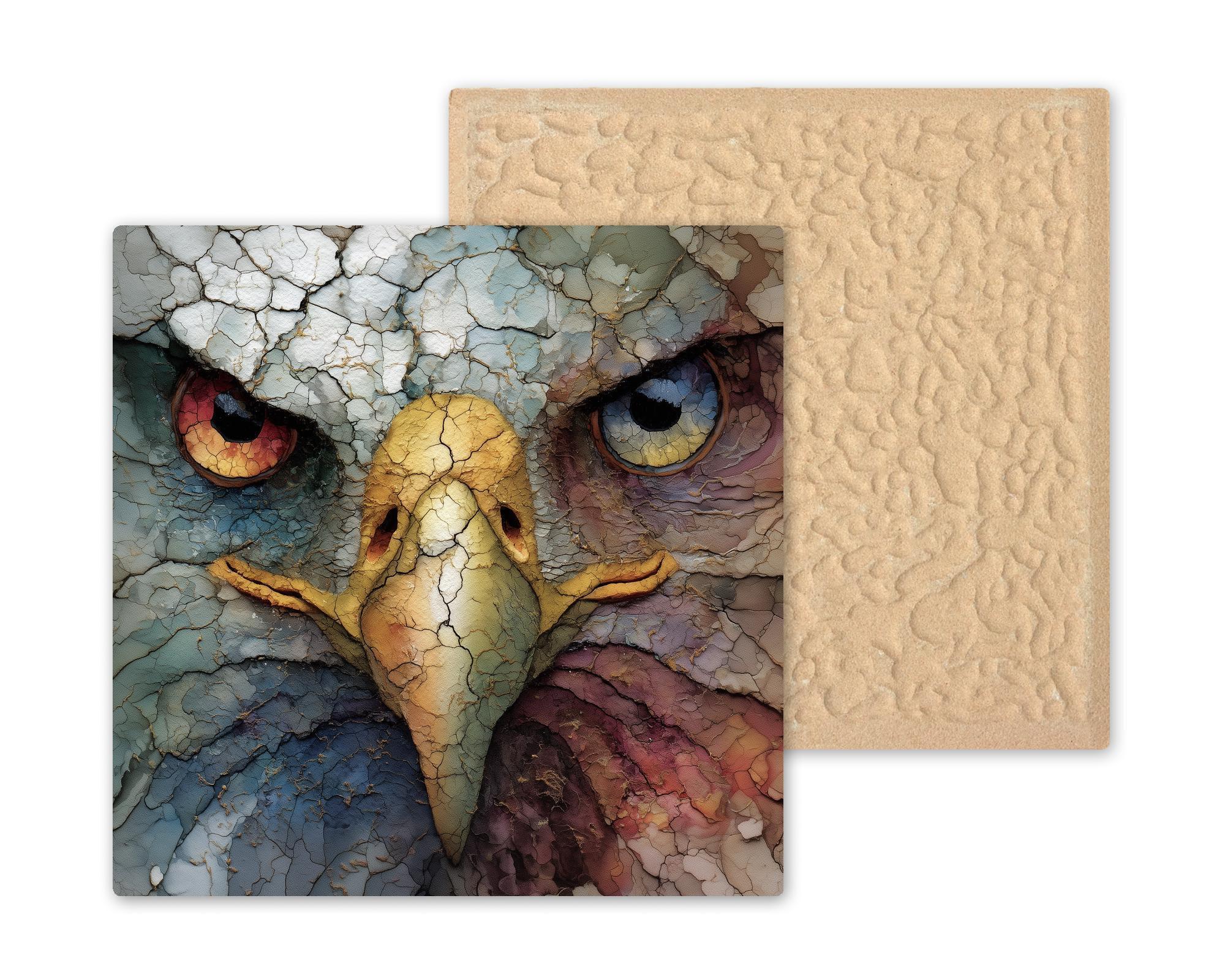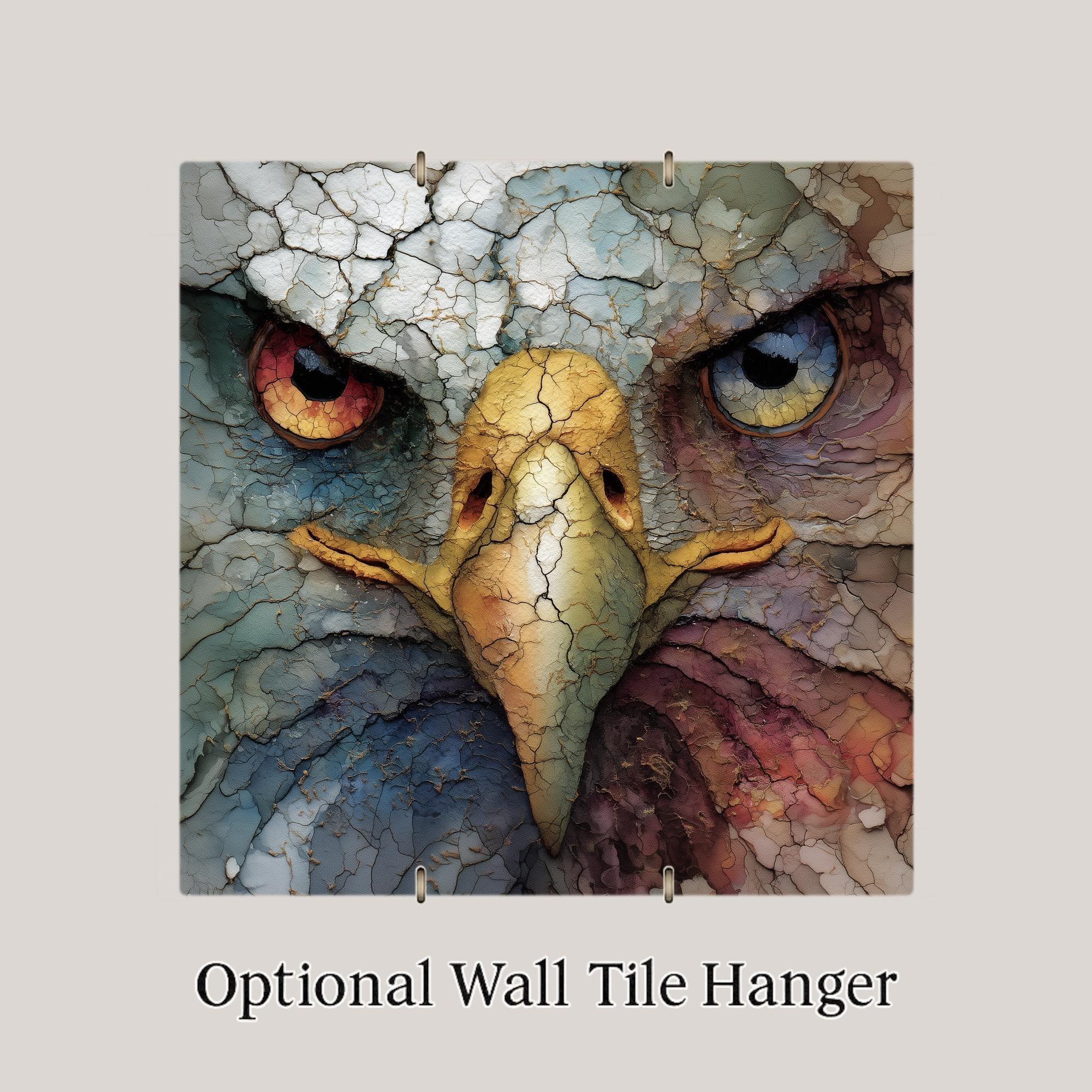 This bold Bald Eagle Wall Art Tile delivers powerful energy and texture in a way that demands attention. Featuring an intense close-up of the iconic American eagle, every feather and crackled detail evokes strength, freedom, and raw nature. The deep gaze, golden beak, and layered color give the illusion of aged mosaic or weathered stone—perfect for rustic spaces, Americana themes, or wildlife-inspired interiors.